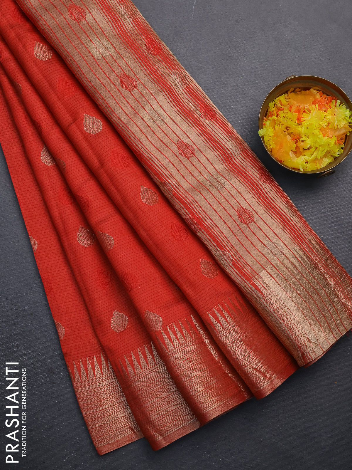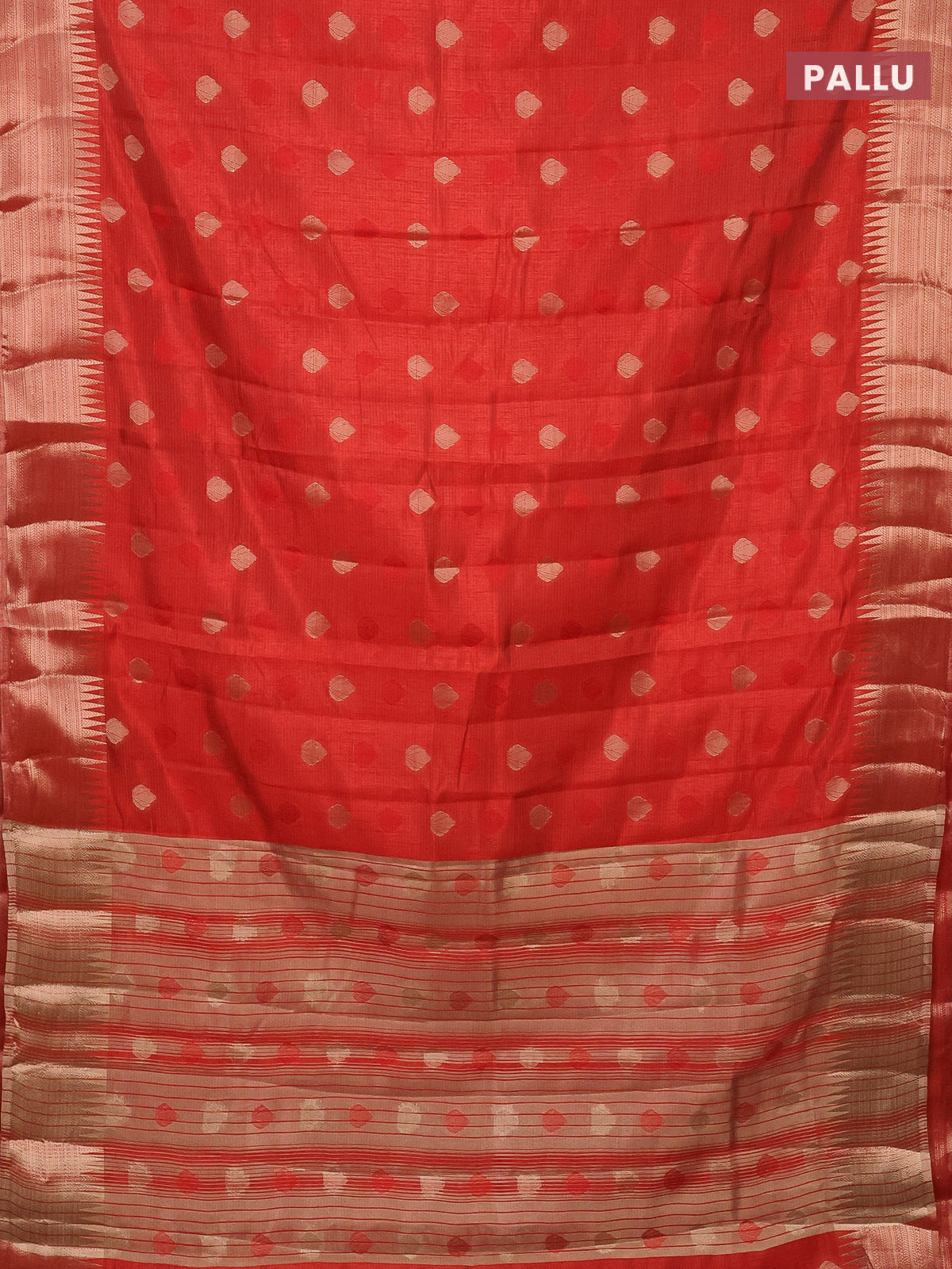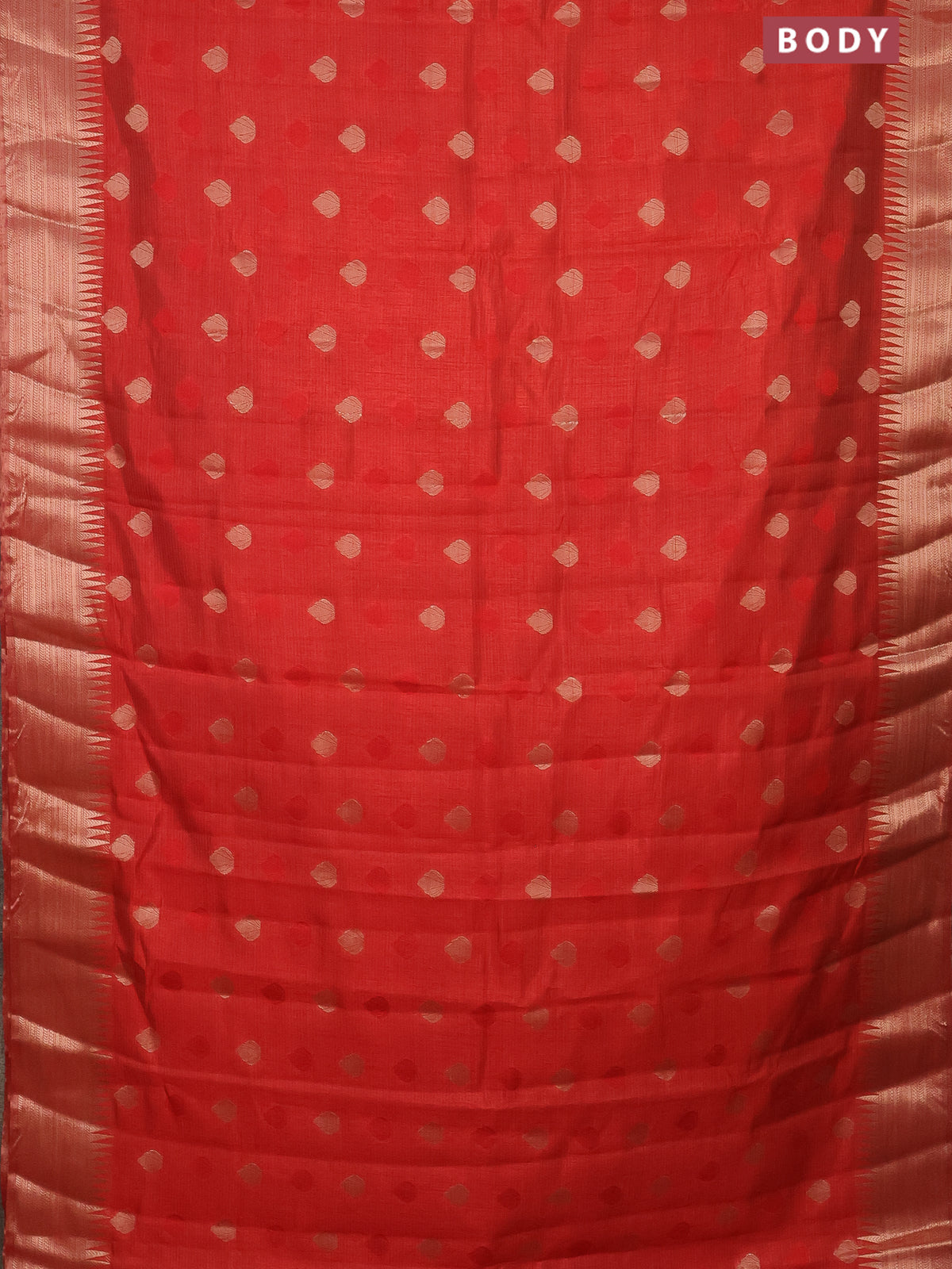 Semi raw silk saree red with thread & zari woven buttas and temple design zari woven border