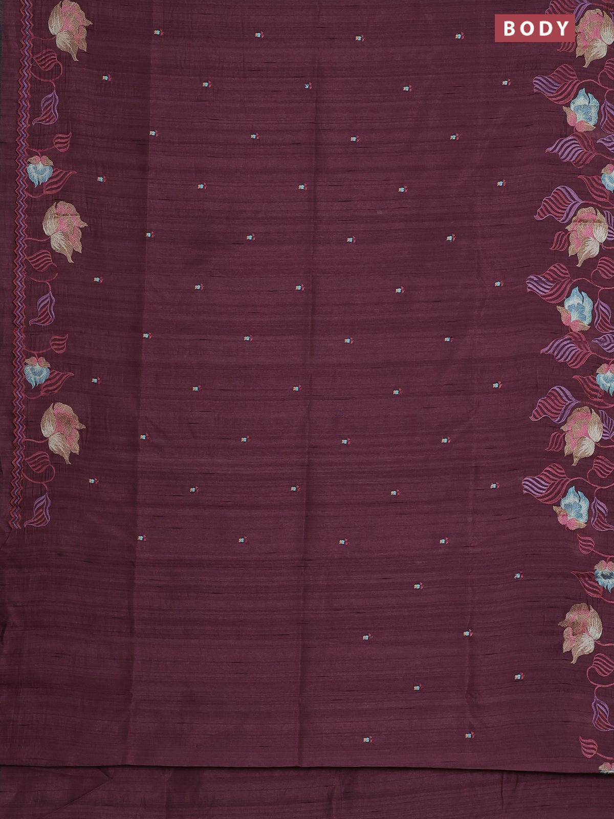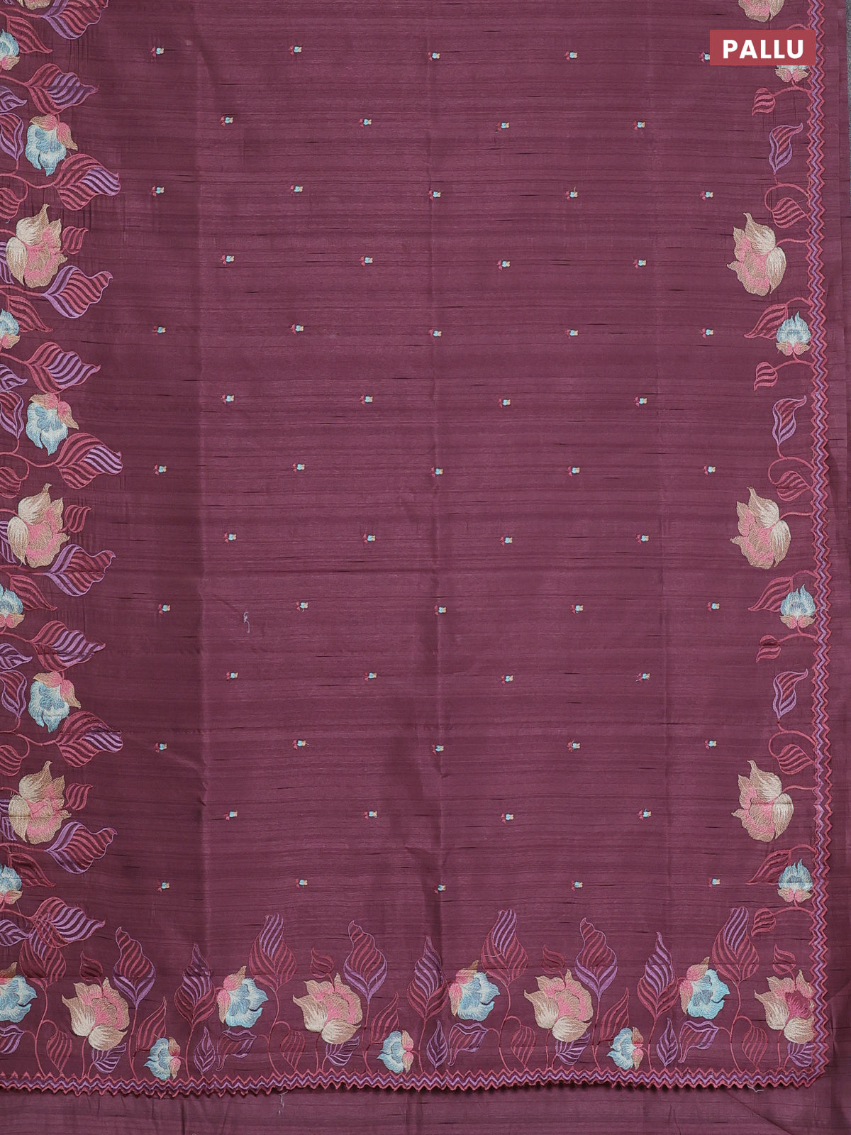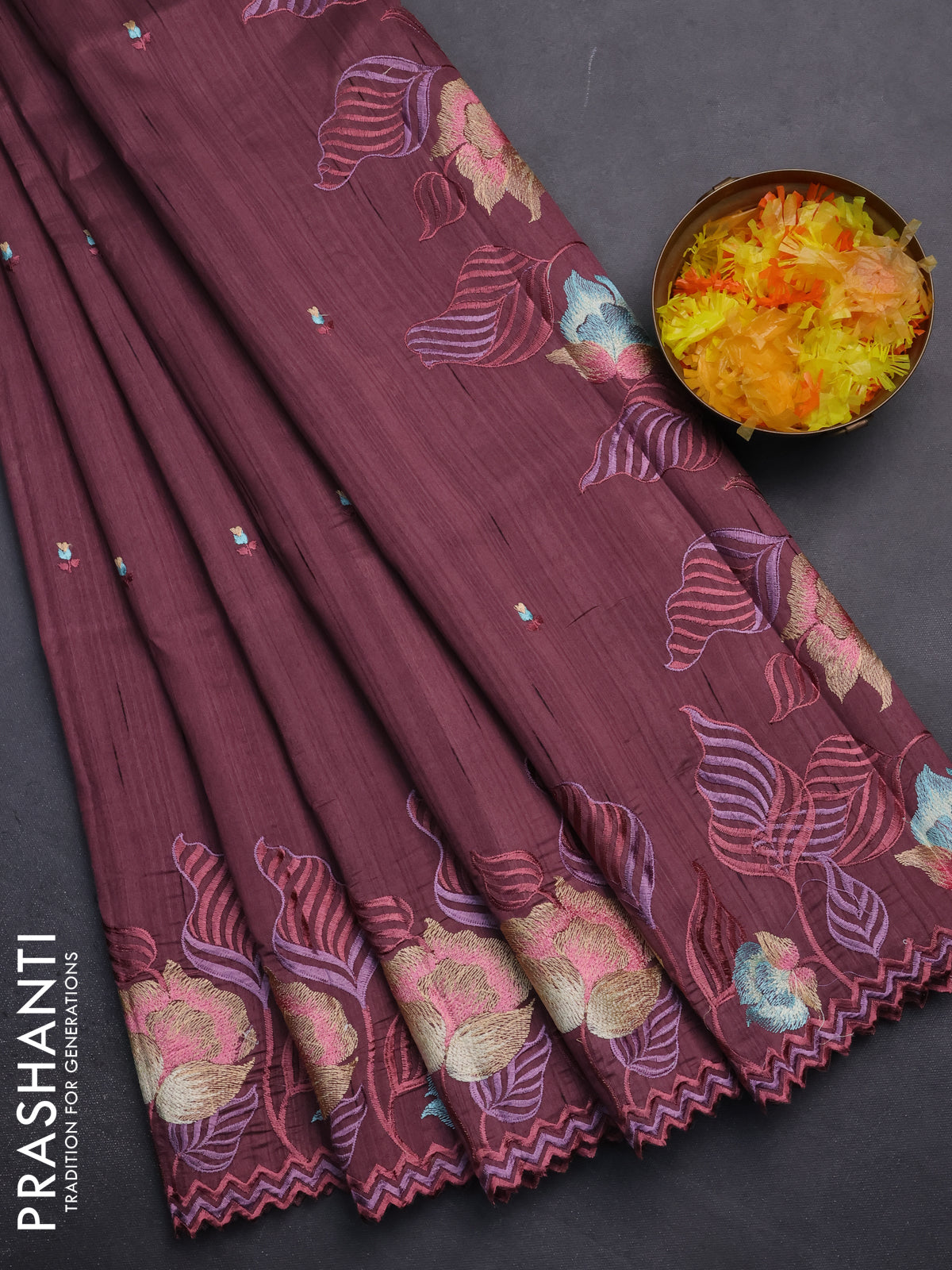 Semi raw silk saree rosy brown with embroidery work buttas and floral embroidery border