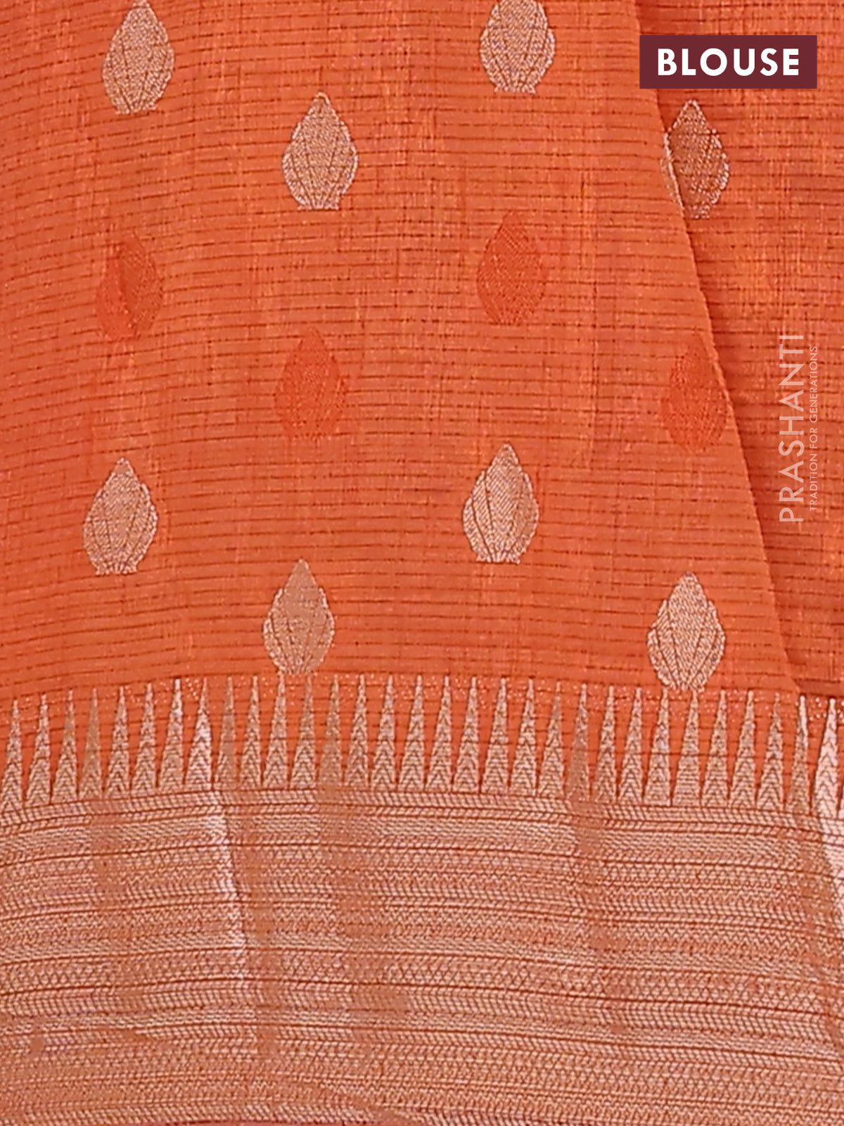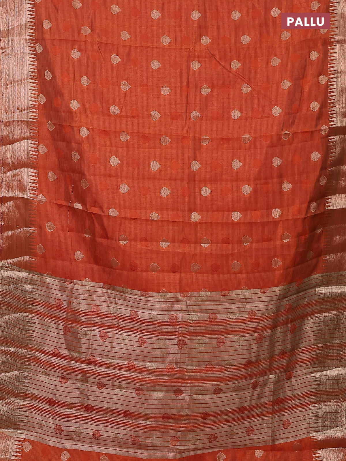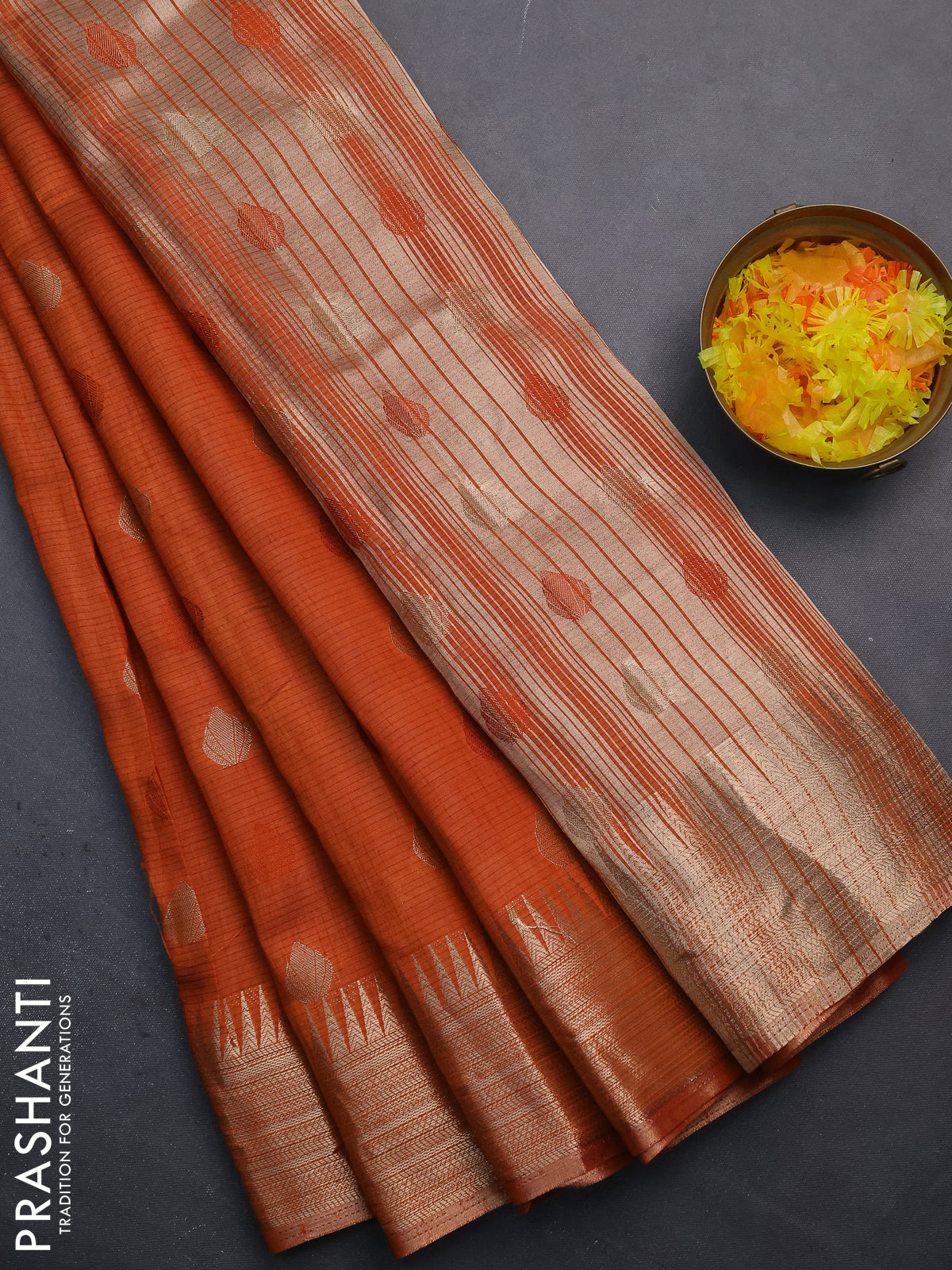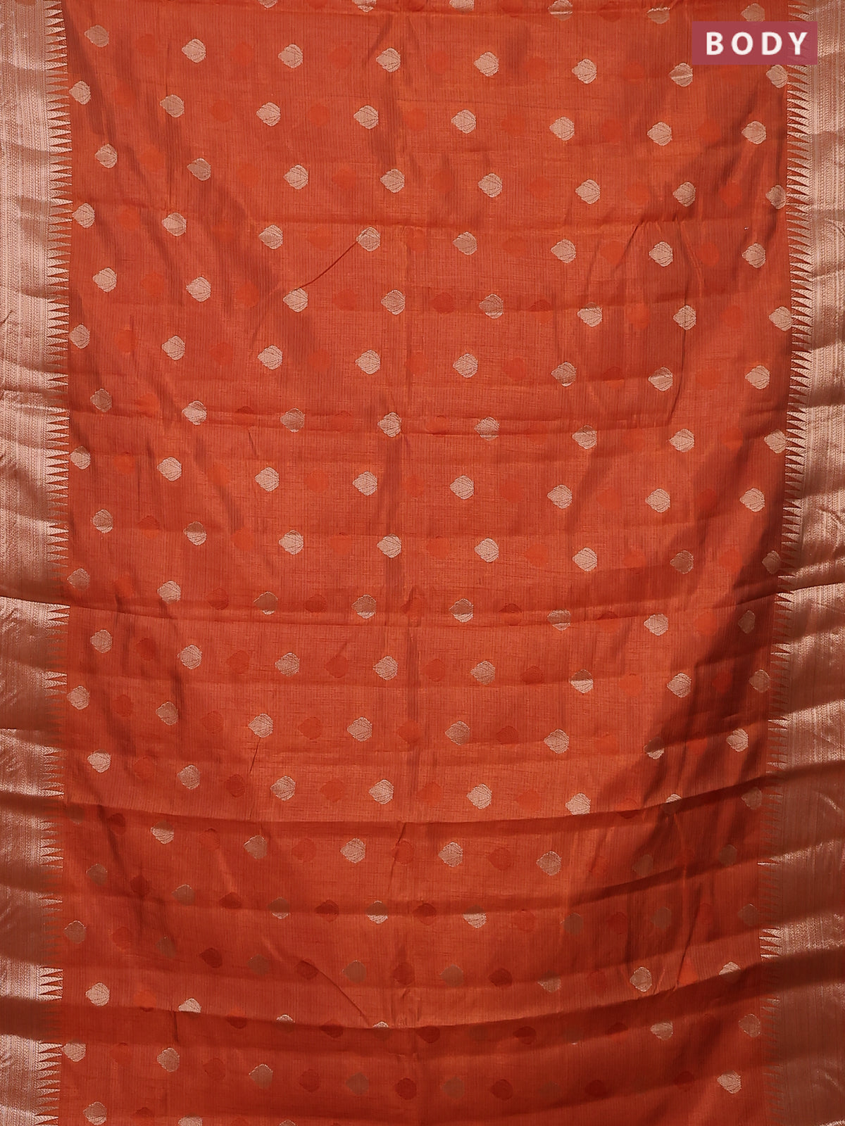 Semi raw silk saree rustic orange with thread & zari woven buttas and temple design zari woven border