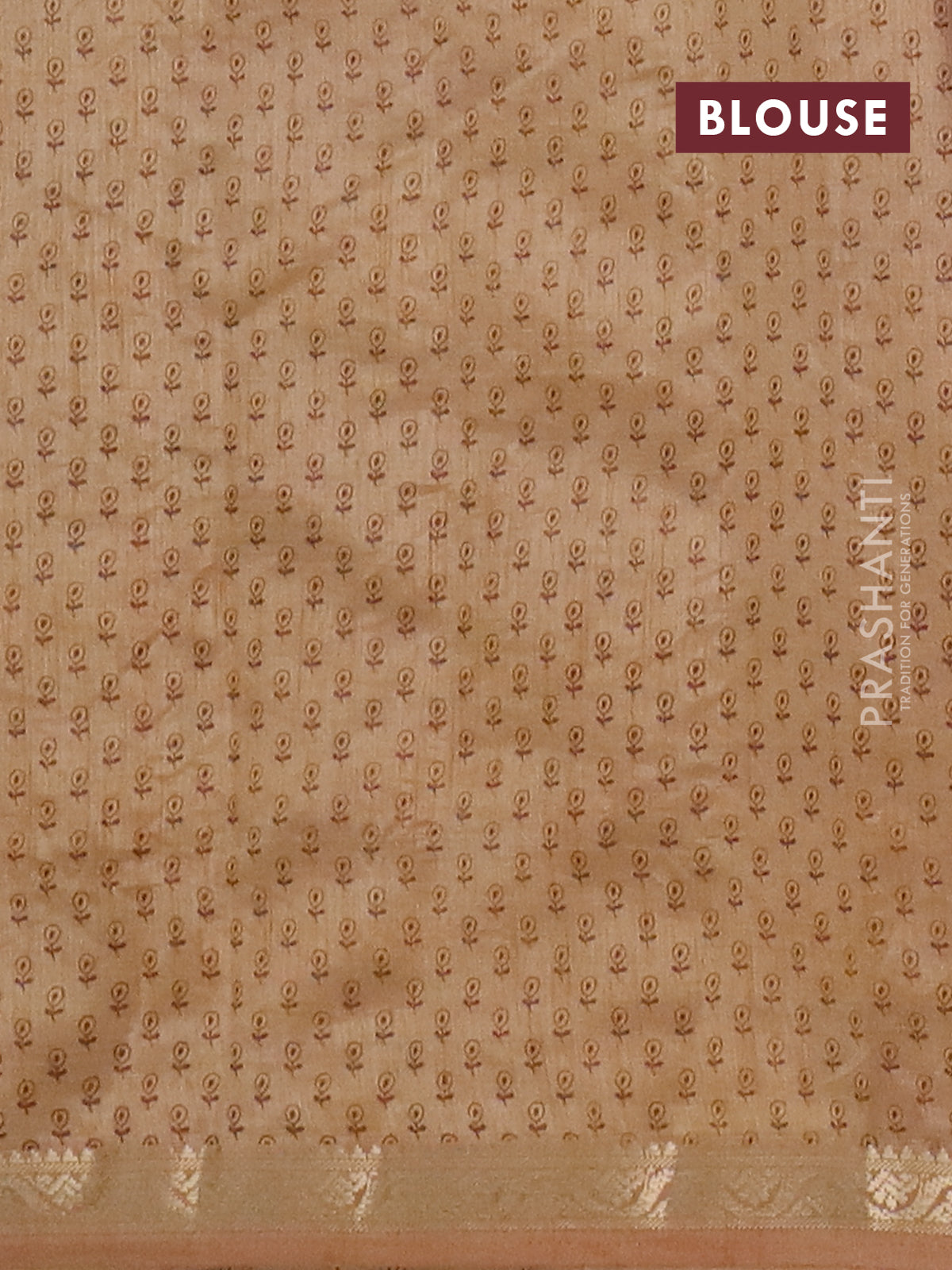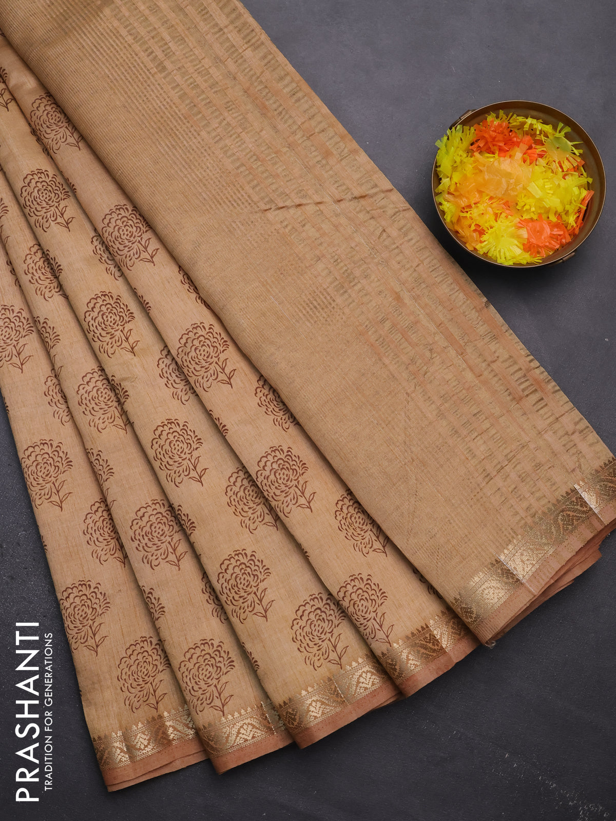 Semi raw silk saree sandal with floral butta prints and zari woven border