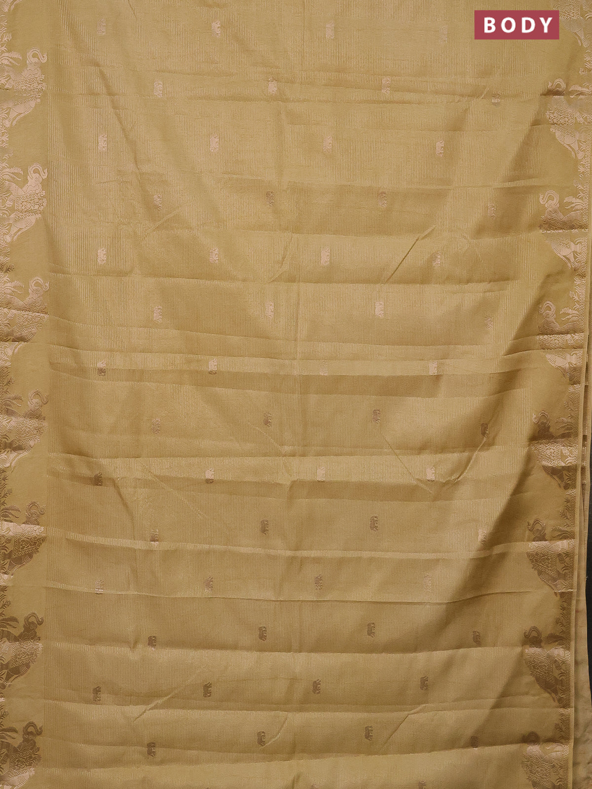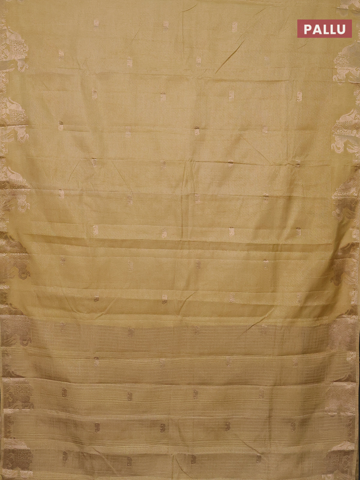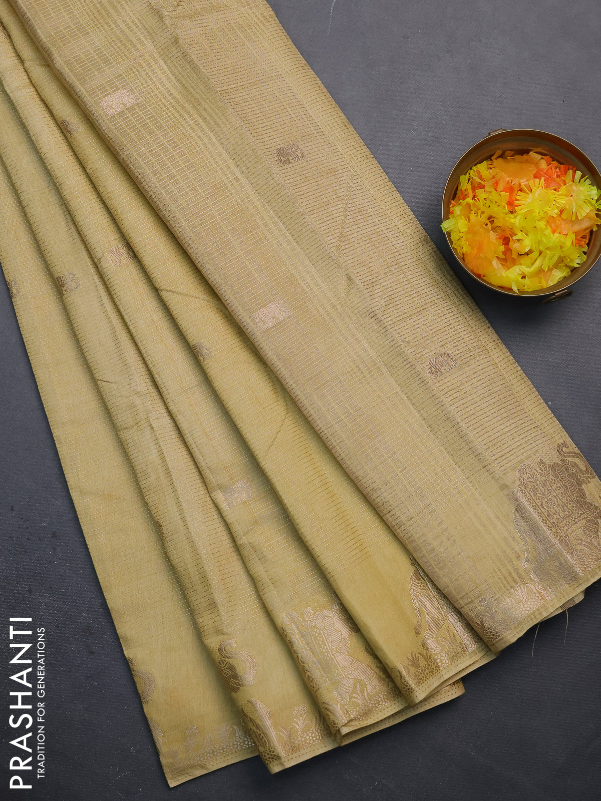 Semi raw silk saree sandal with zari weaves & elephant buttas and elephant design zari woven border