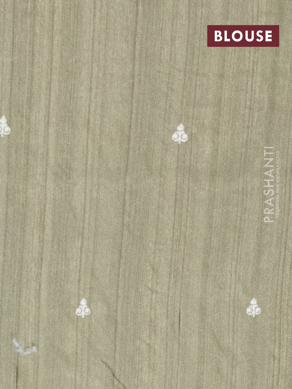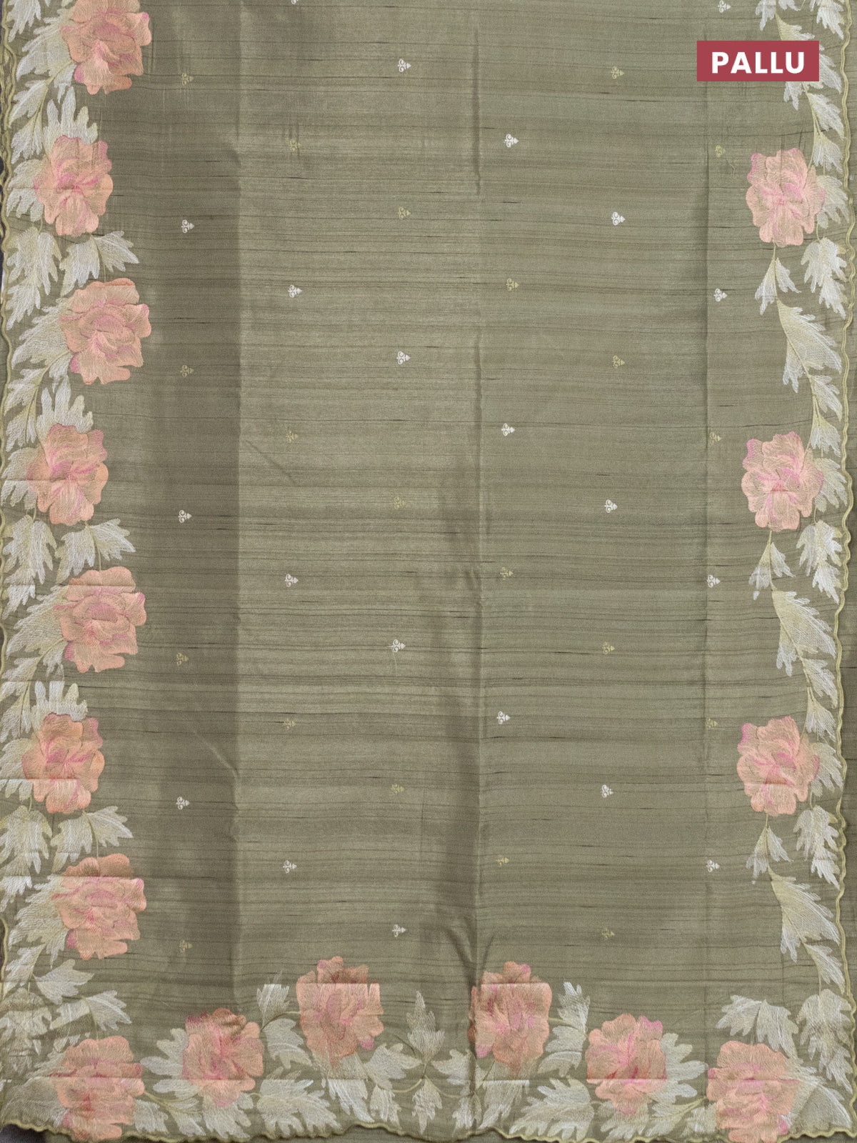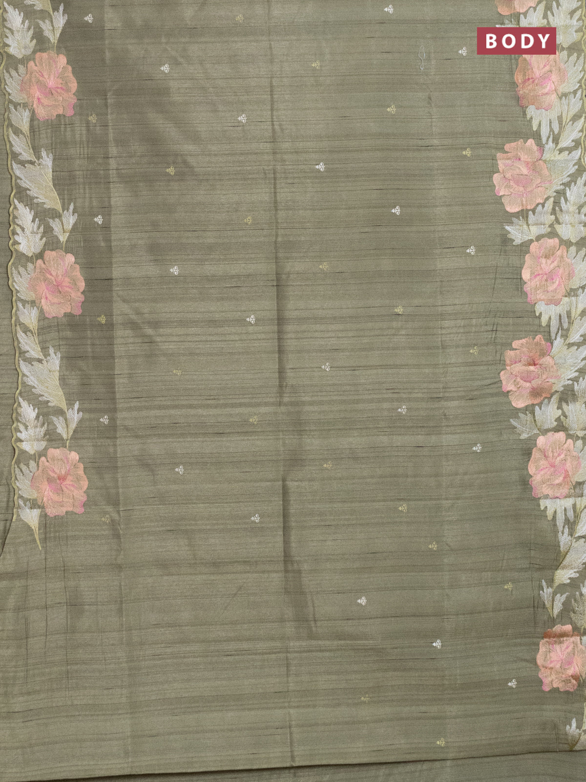 Semi raw silk saree sap green with embroidery work buttas and floral embroidery border