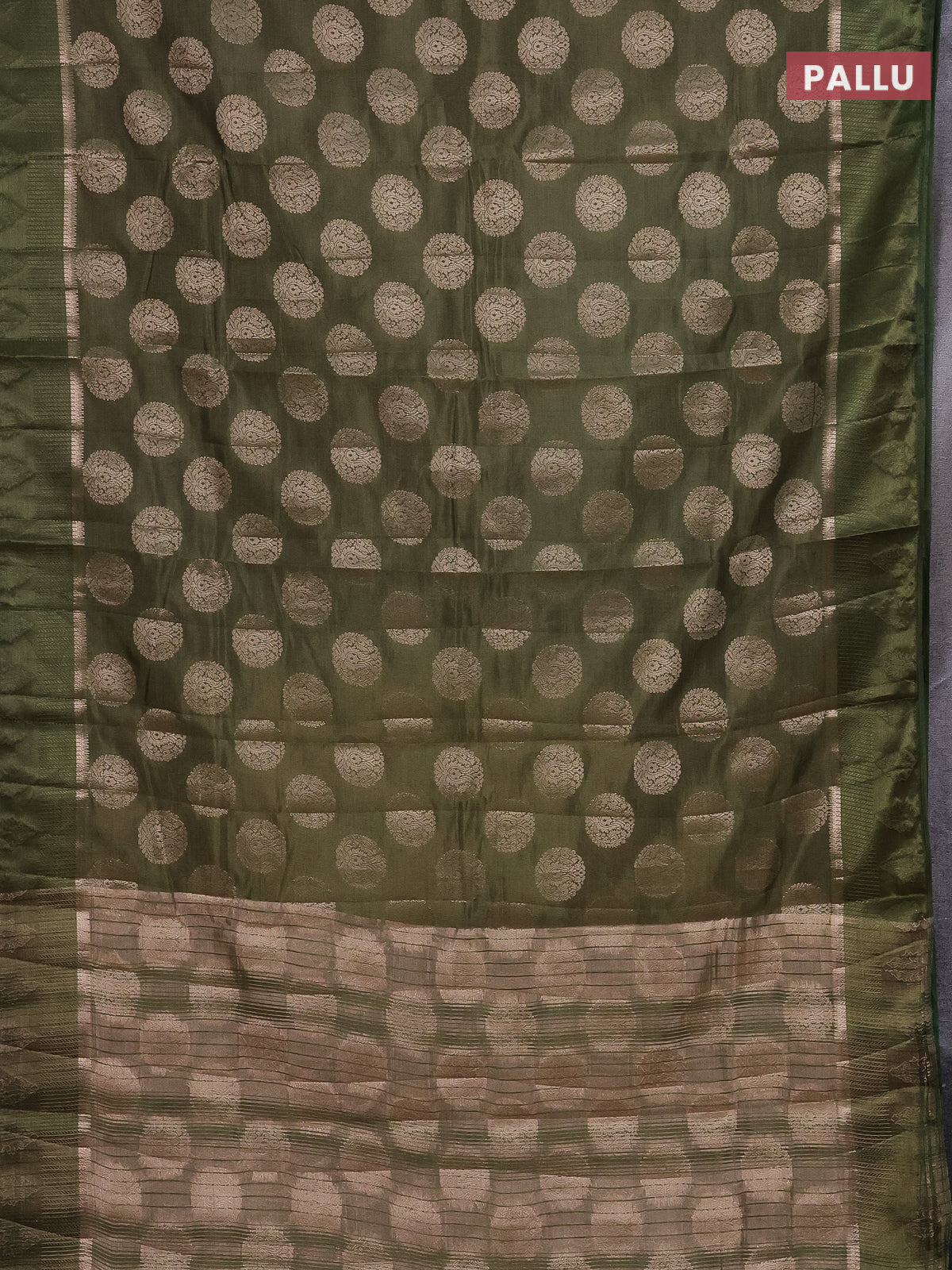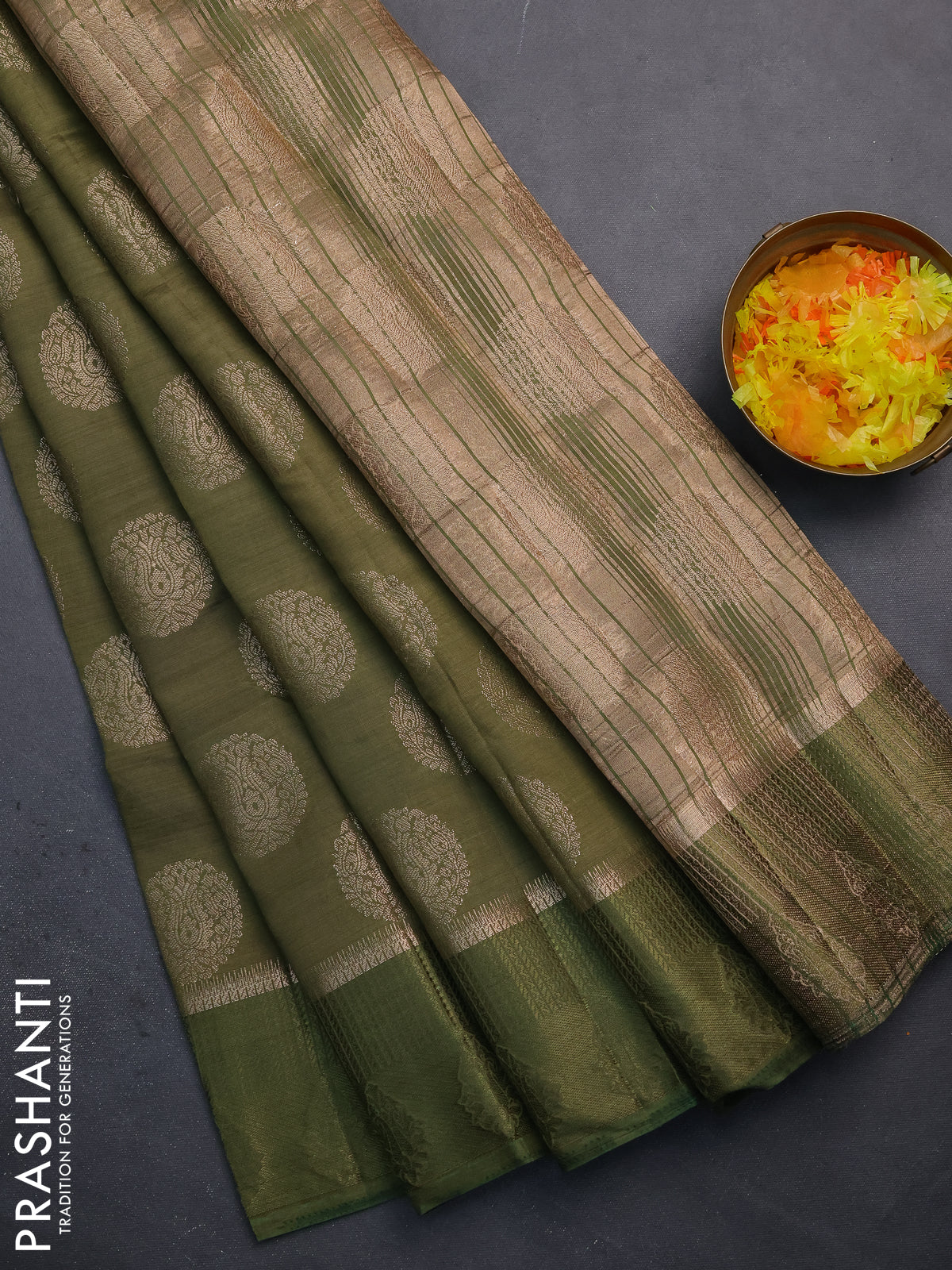 Semi raw silk saree sap green with zari woven buttas and zari woven simple border