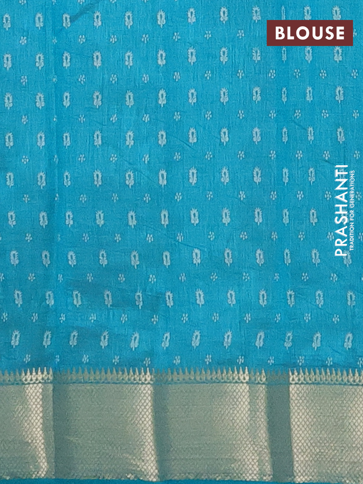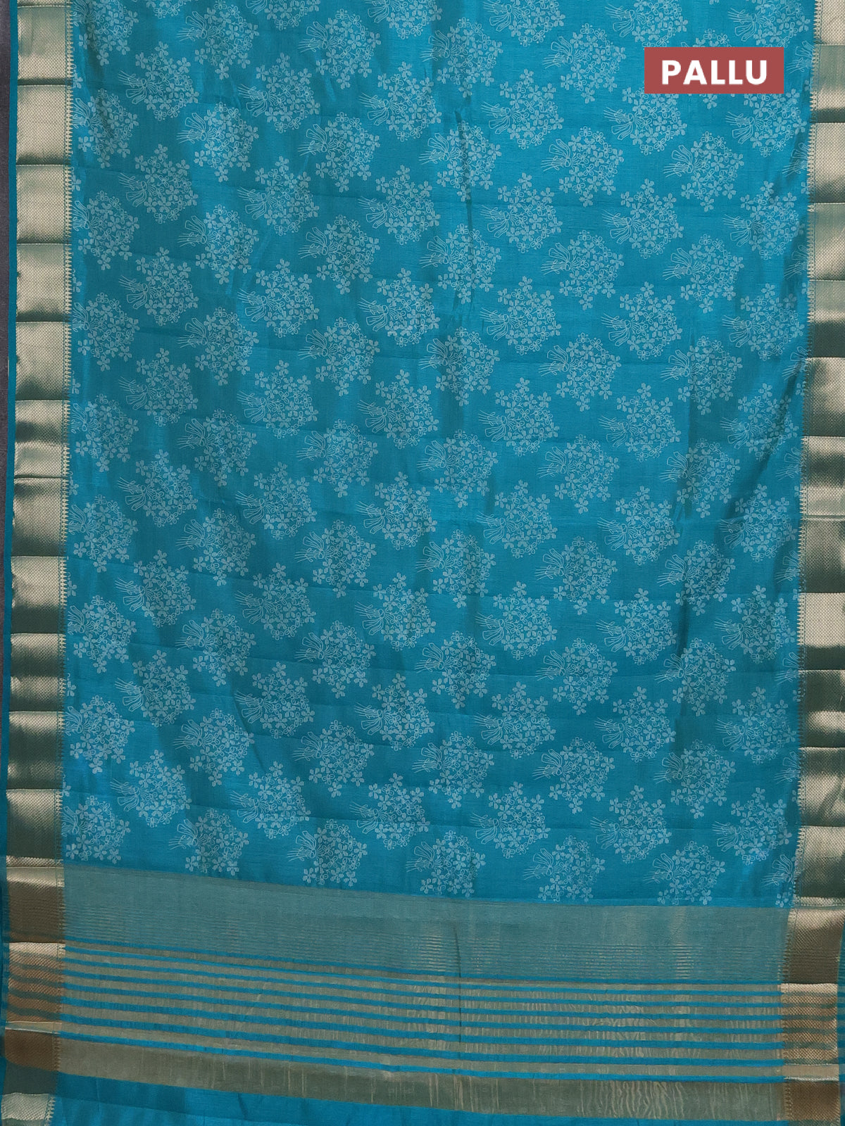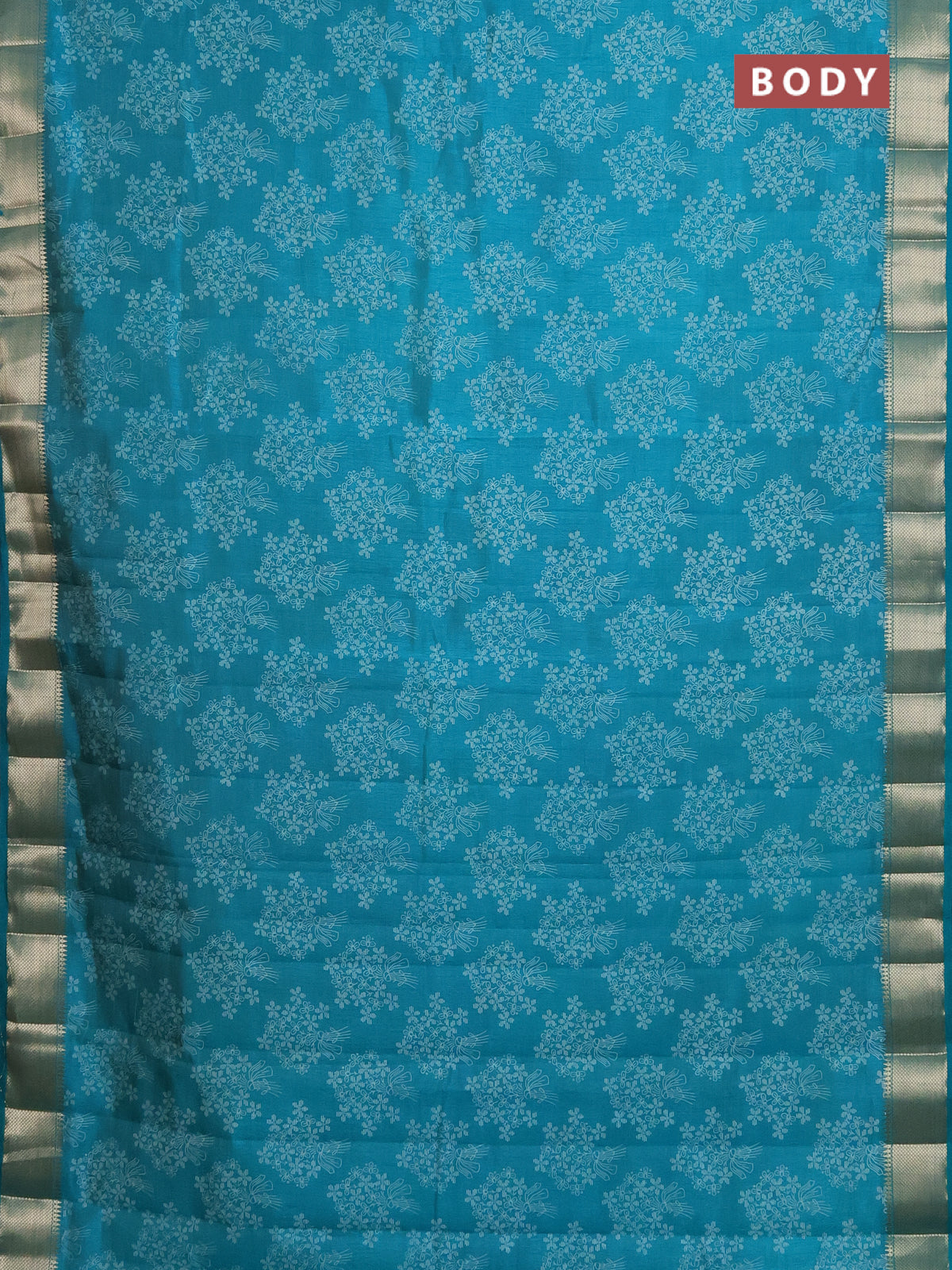 Semi raw silk saree teal blue with butta prints and zari woven border
