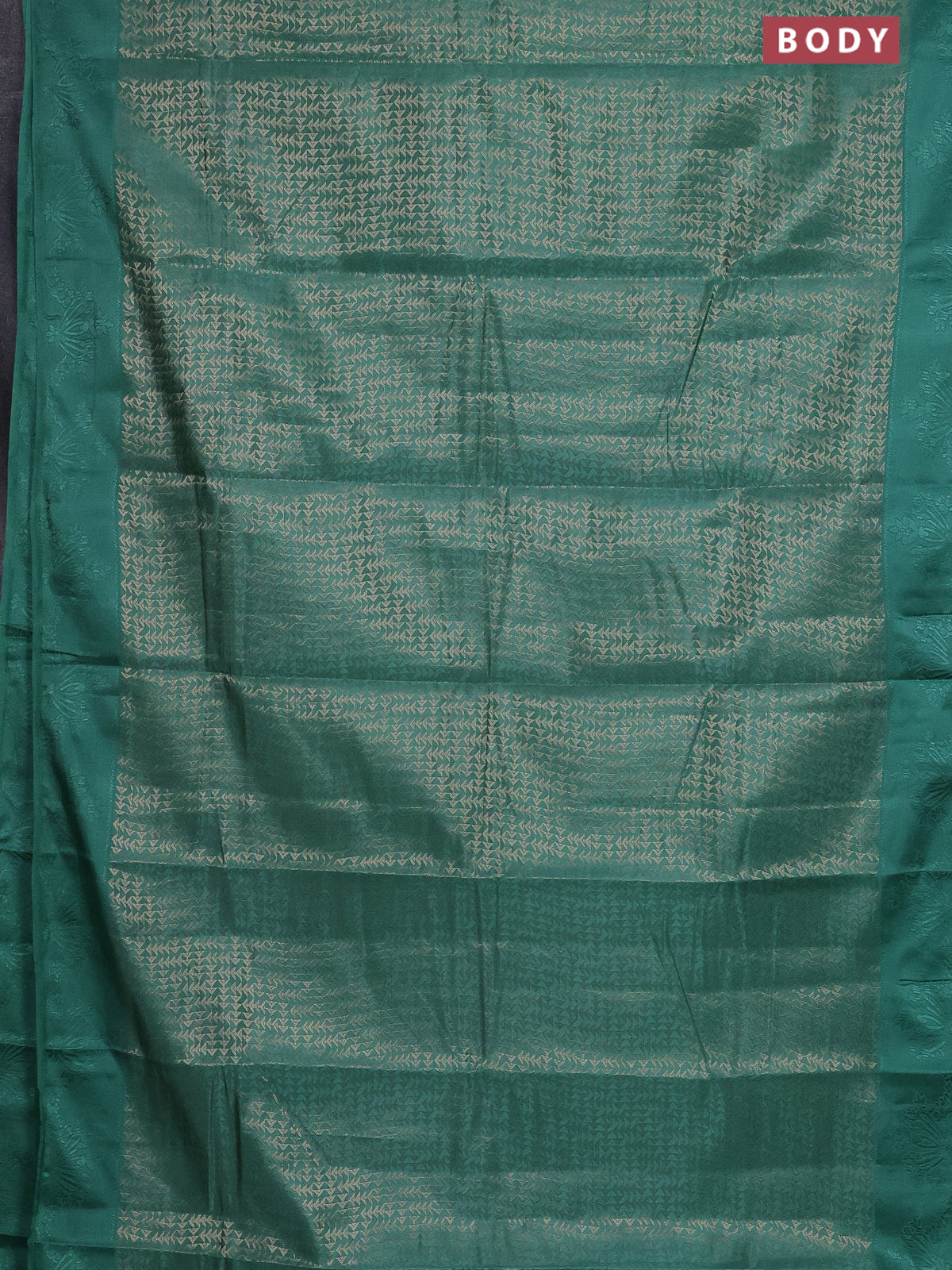 Semi raw silk saree teal green shade with allover zari weaves and simple border