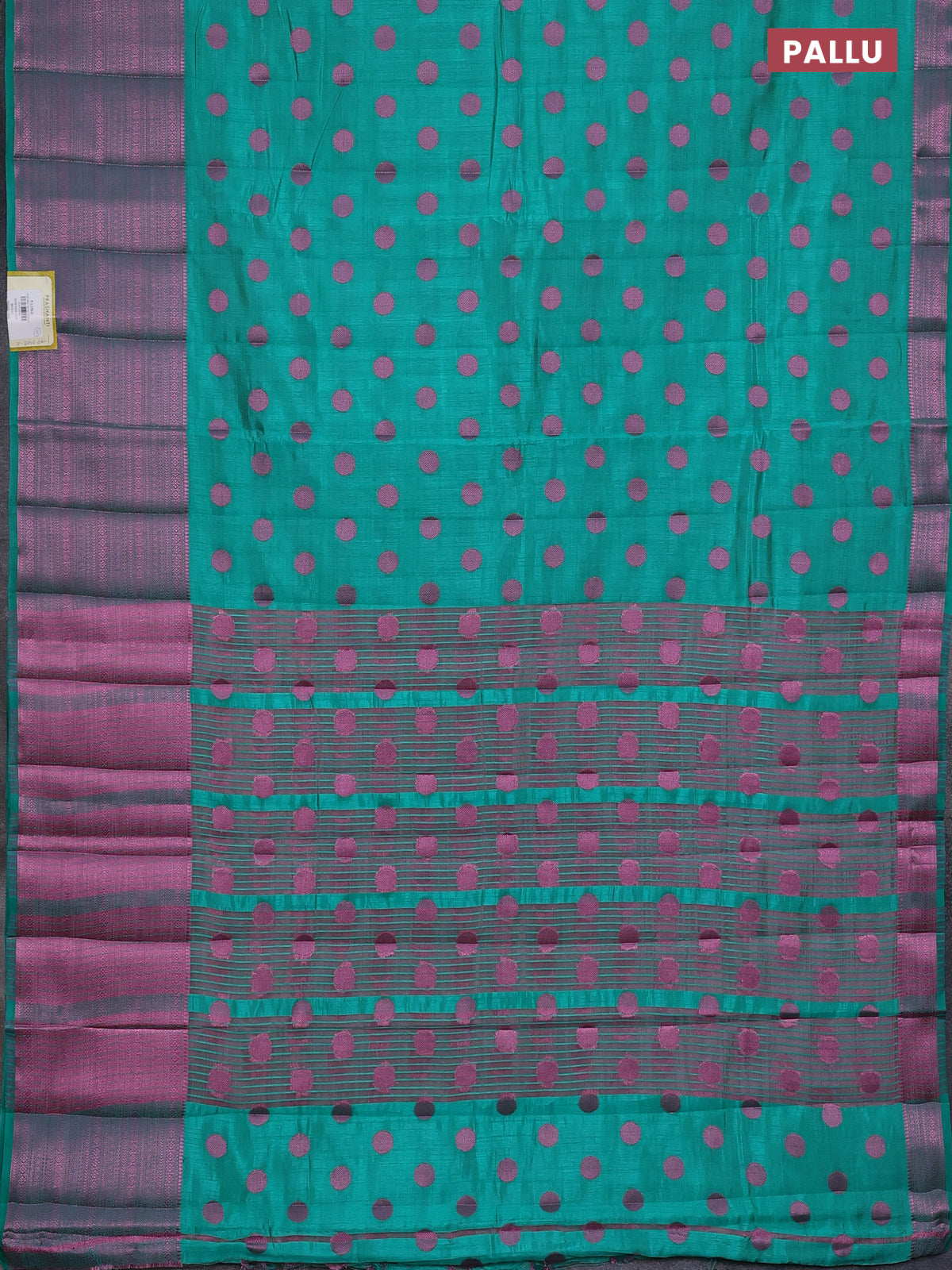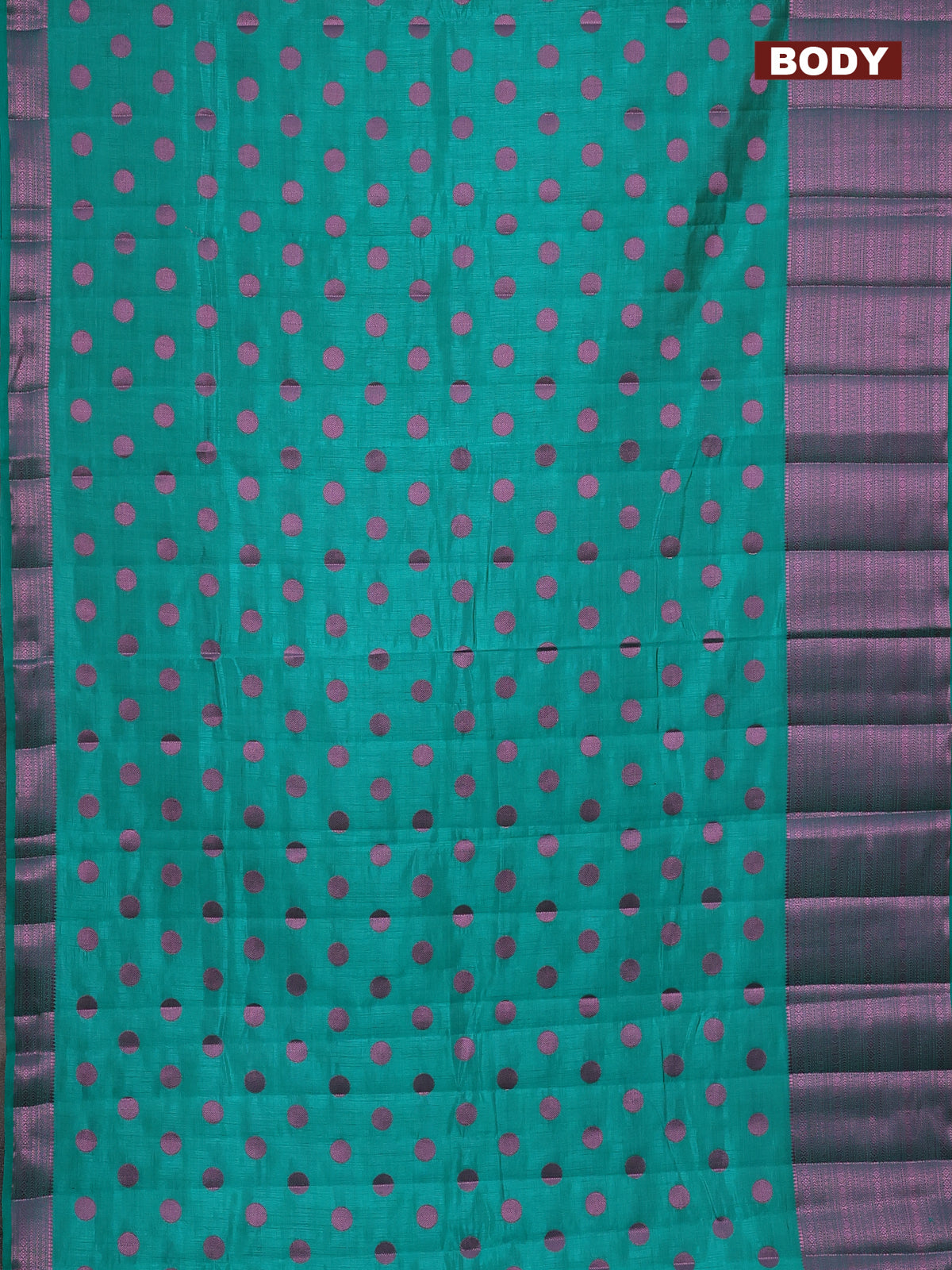Semi raw silk saree teal green with allover pink zari woven buttas and pink zari woven border