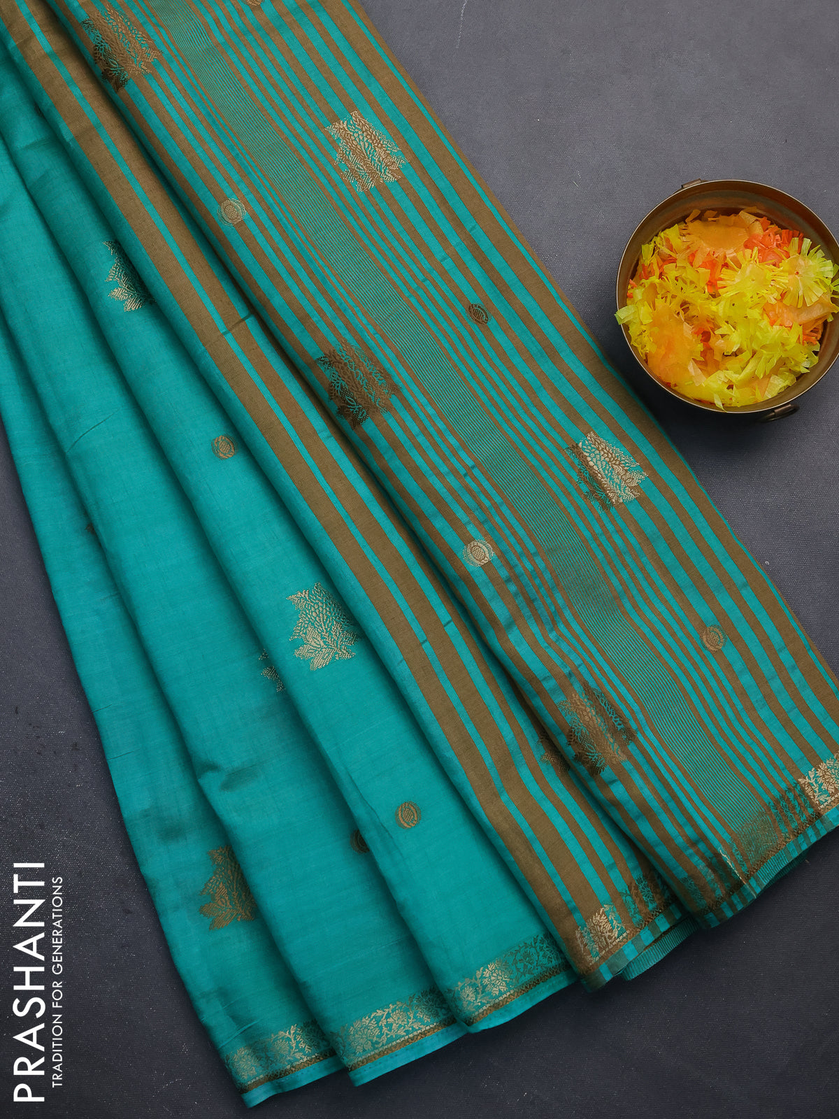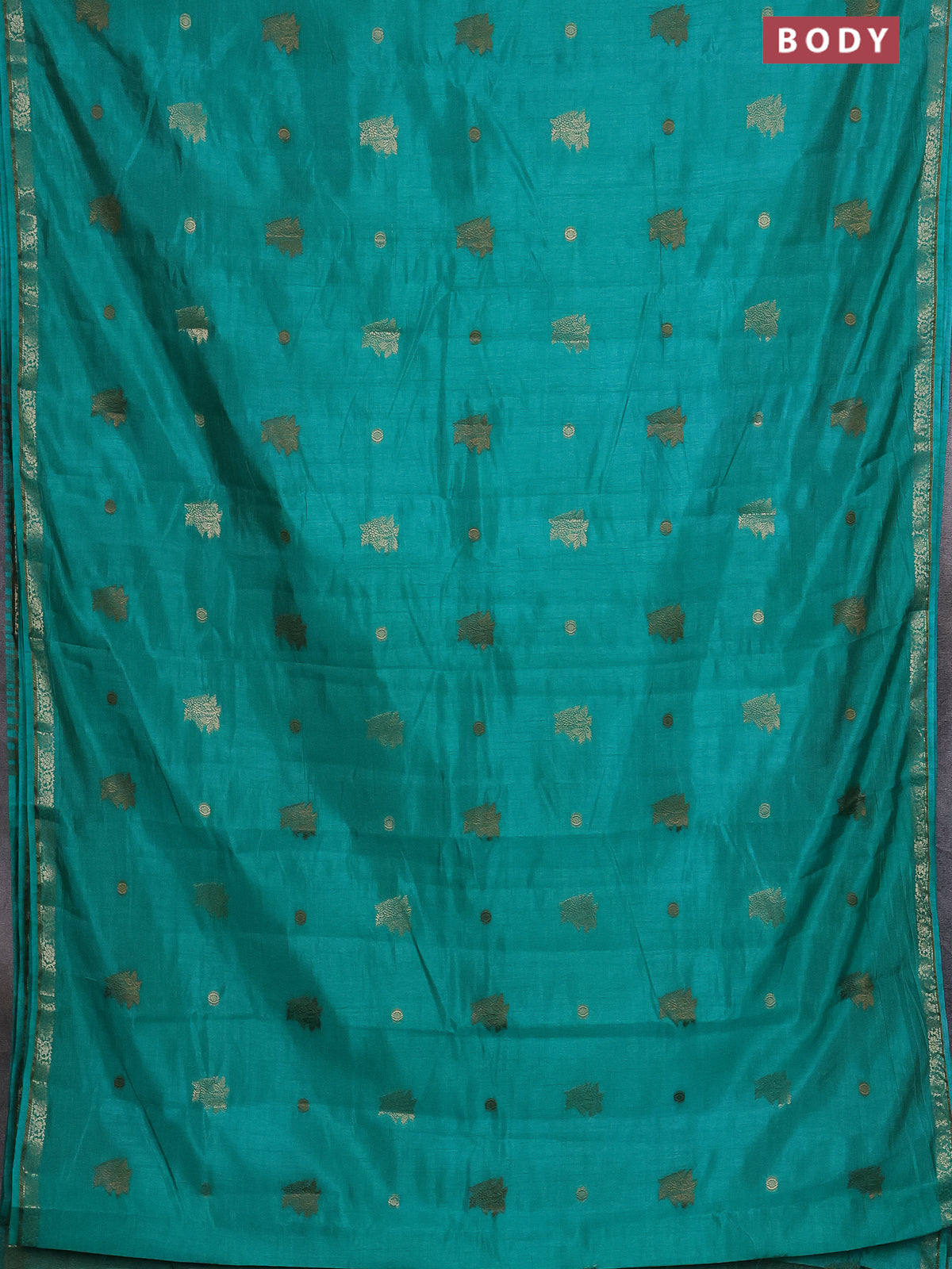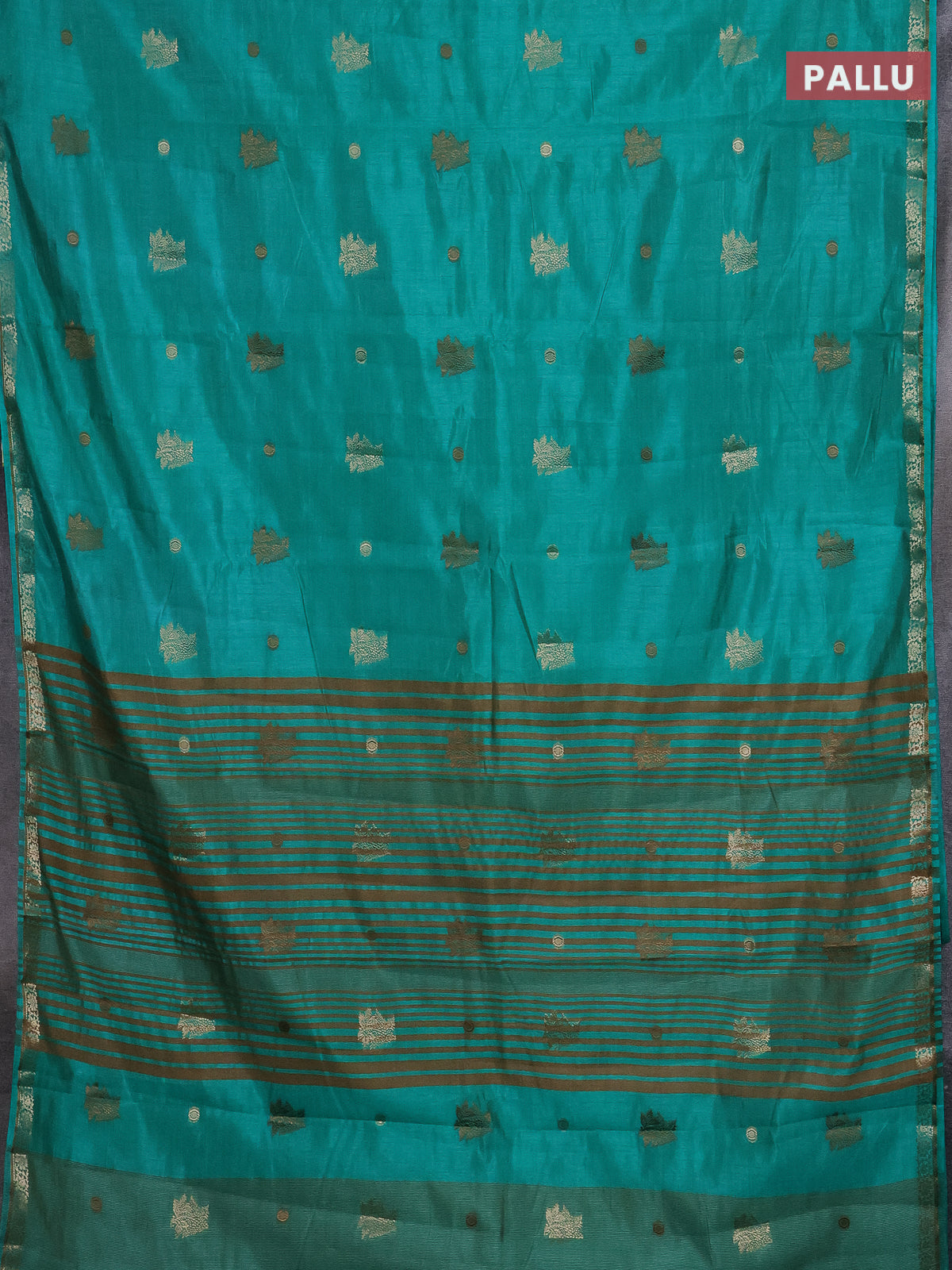 Semi raw silk saree teal green with woven buttas and zari woven border