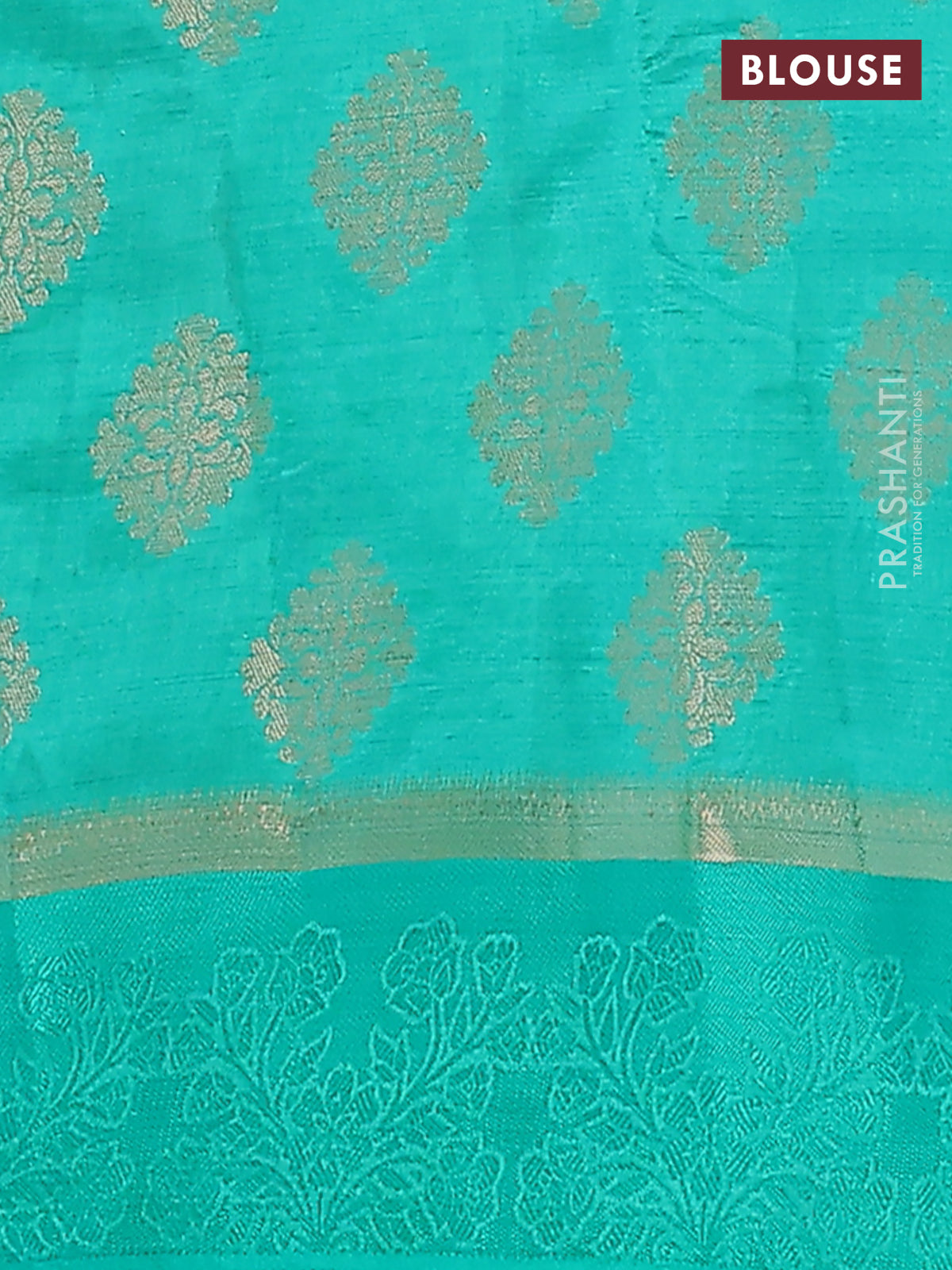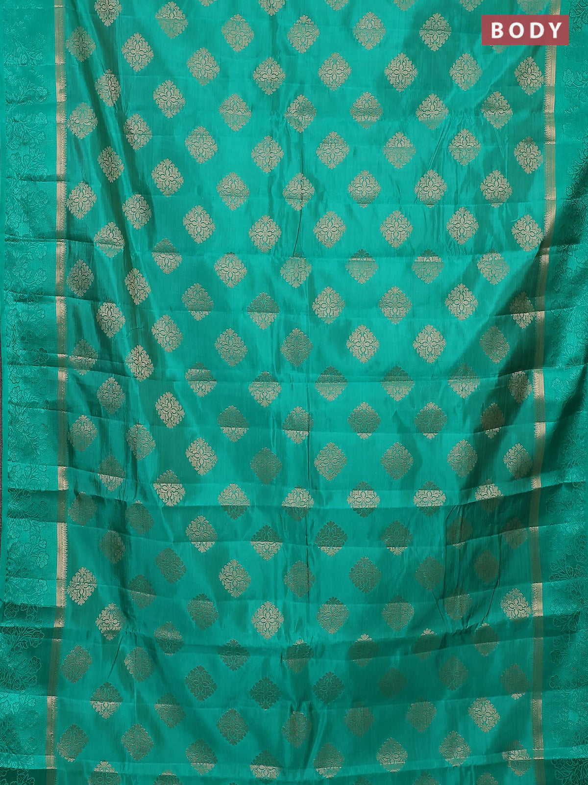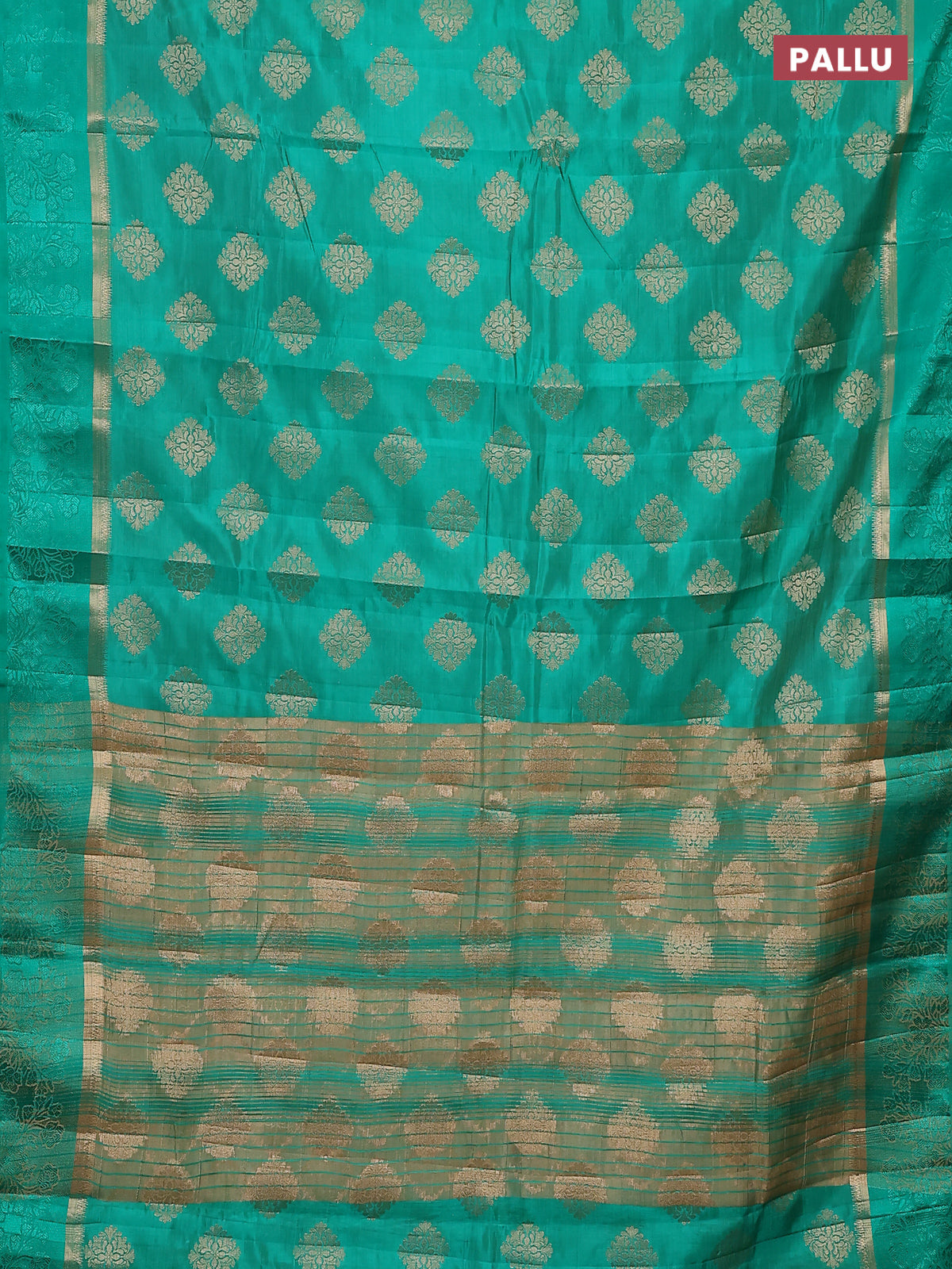 Semi raw silk saree teal green with zari woven buttas and zari woven simple border