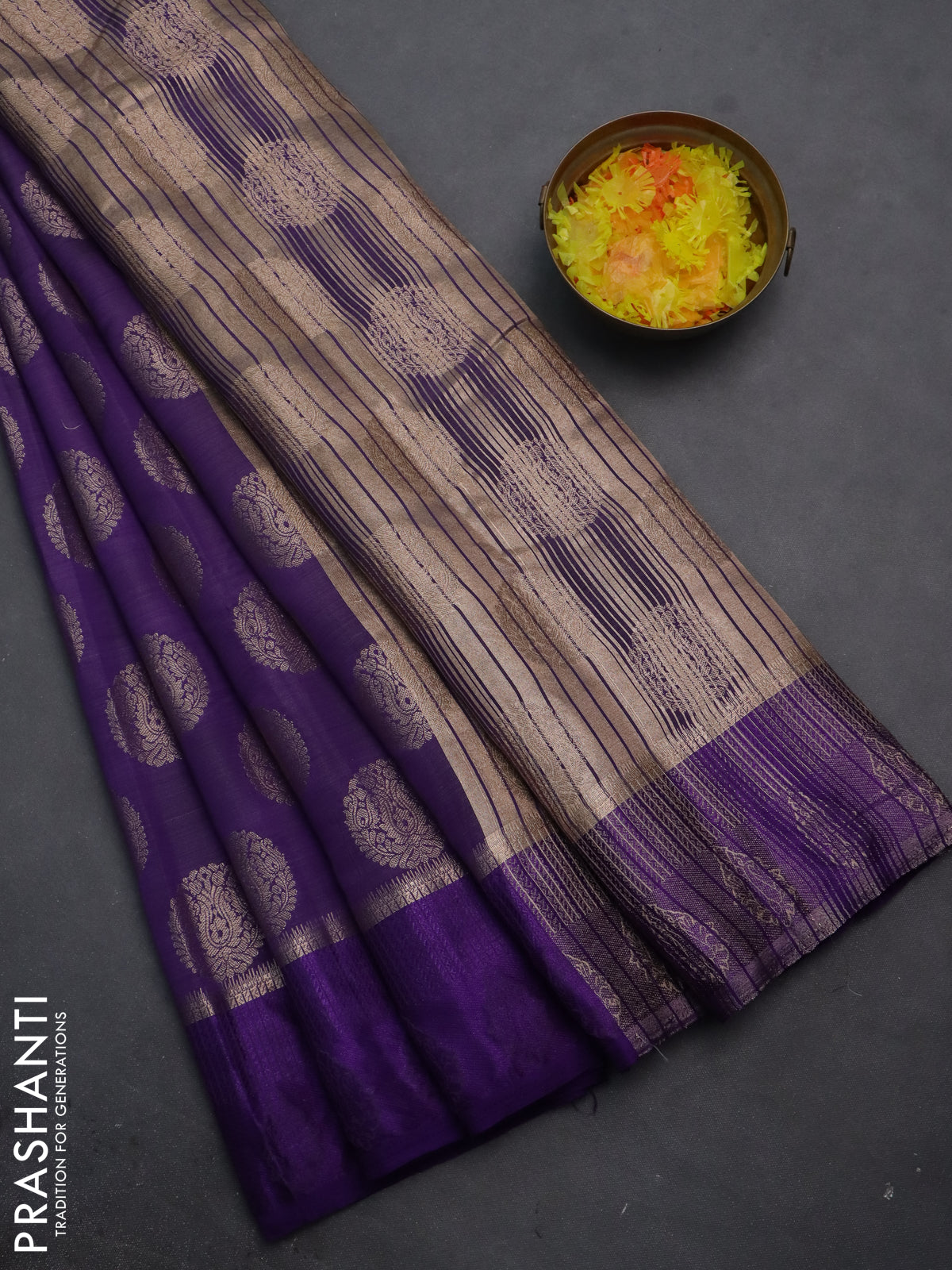 Semi raw silk saree violet with zari woven buttas and zari woven simple border