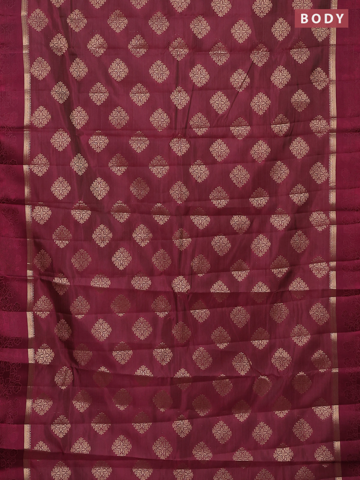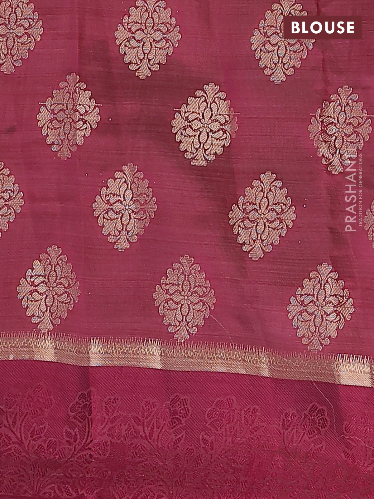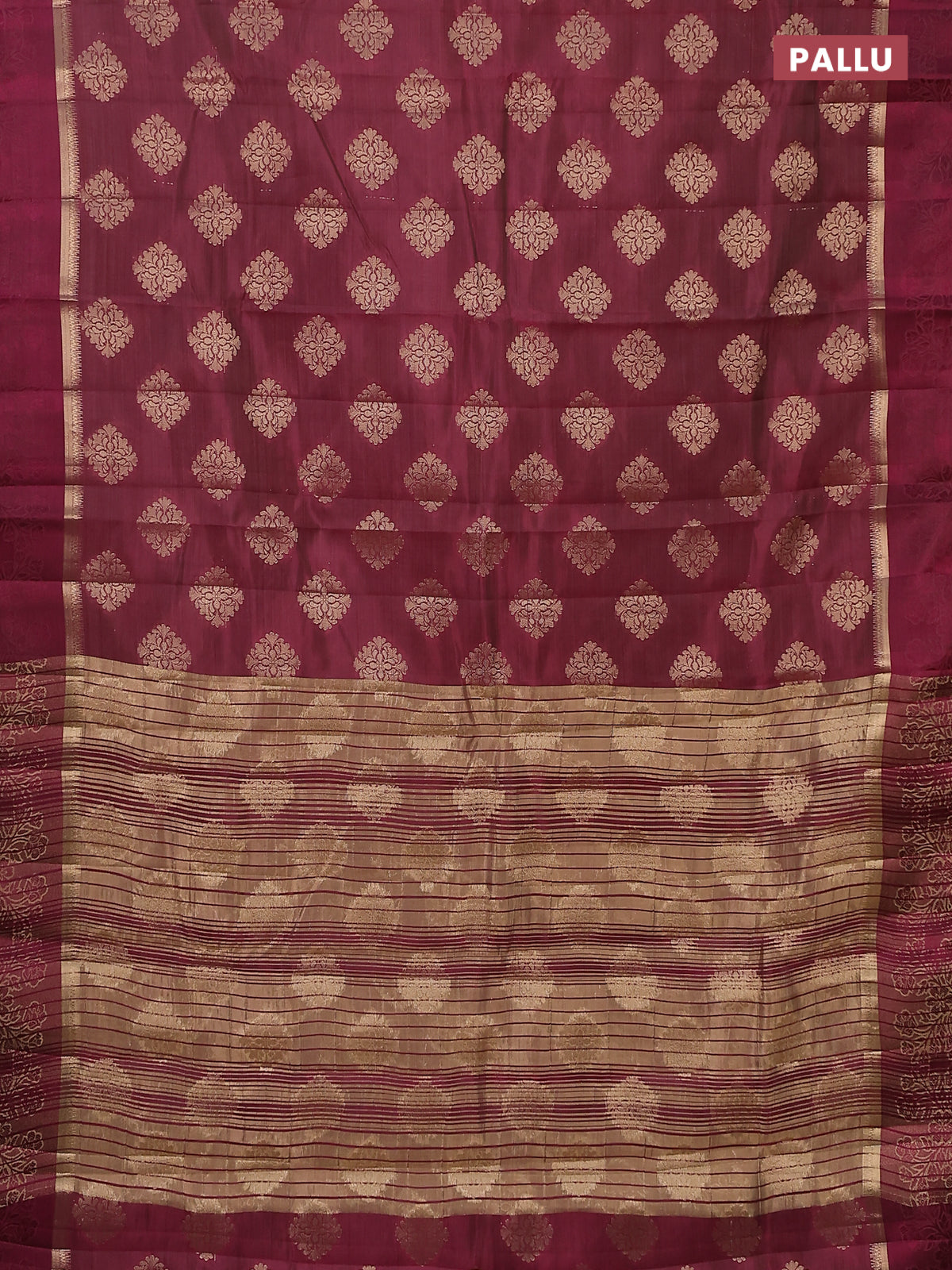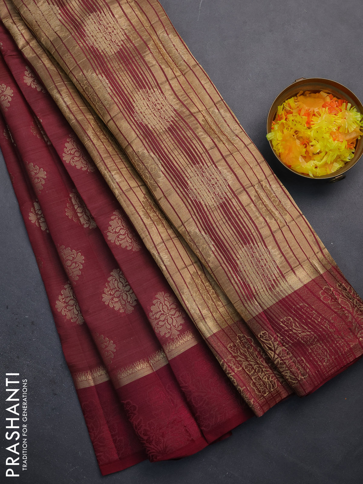 Semi raw silk saree wine shade with zari woven buttas and zari woven simple border
