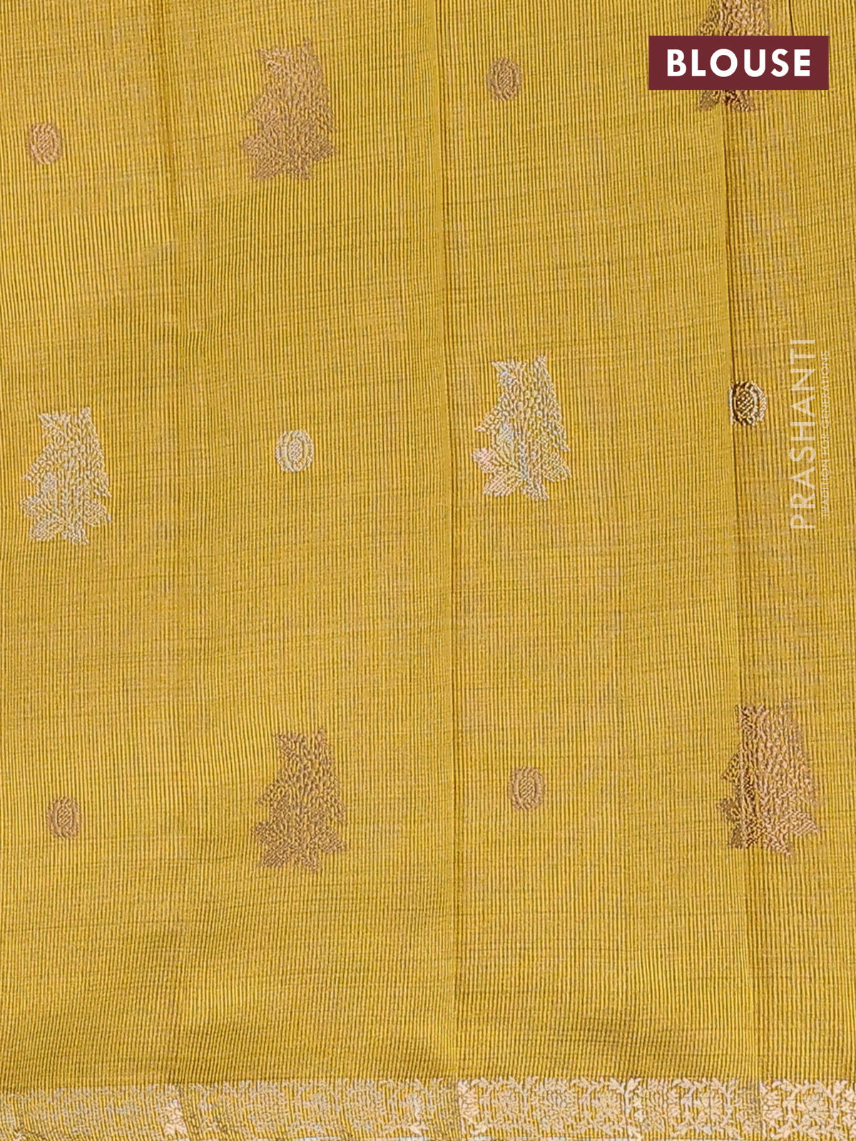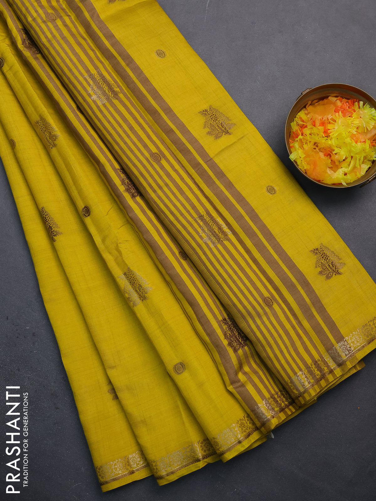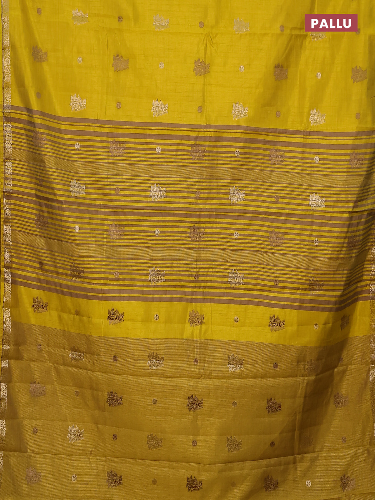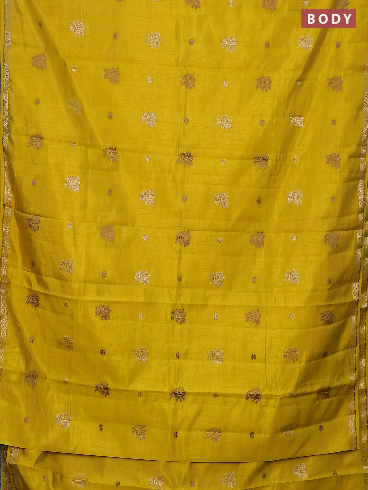 Semi raw silk saree yellow with woven buttas and zari woven border