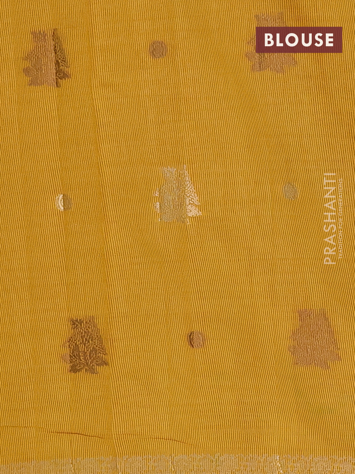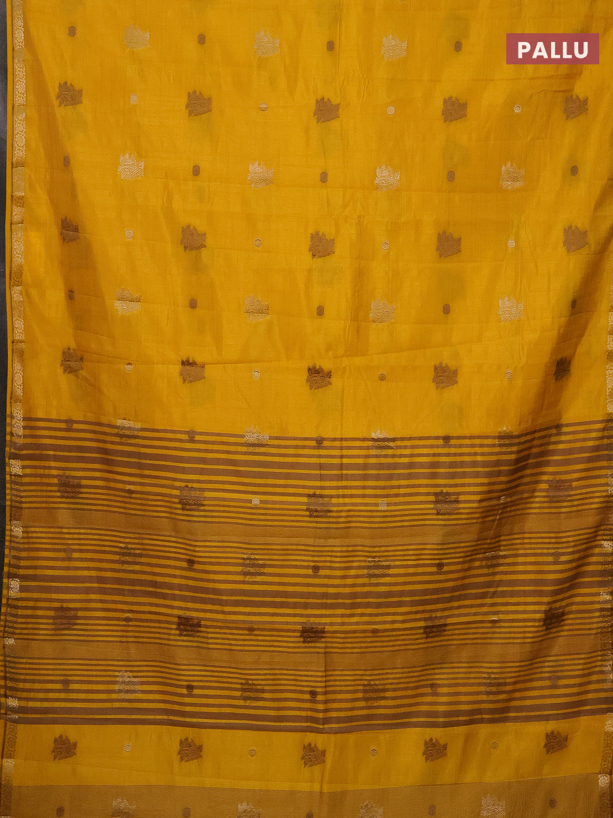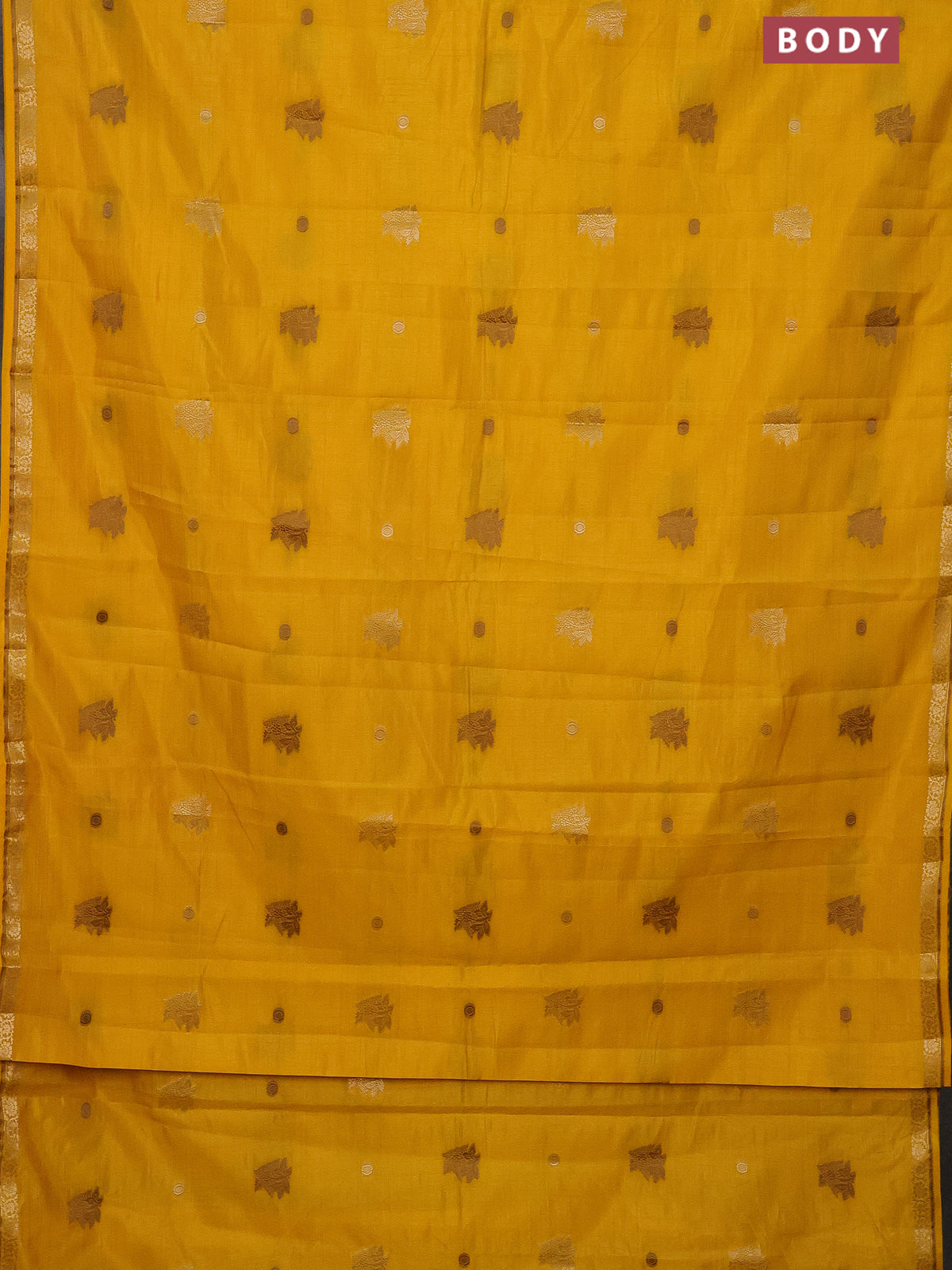 Semi raw silk saree yellow with woven buttas and zari woven border