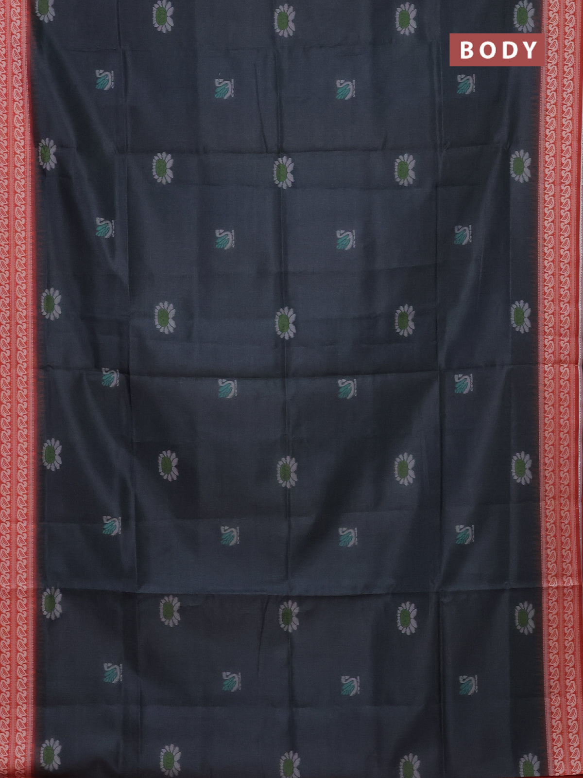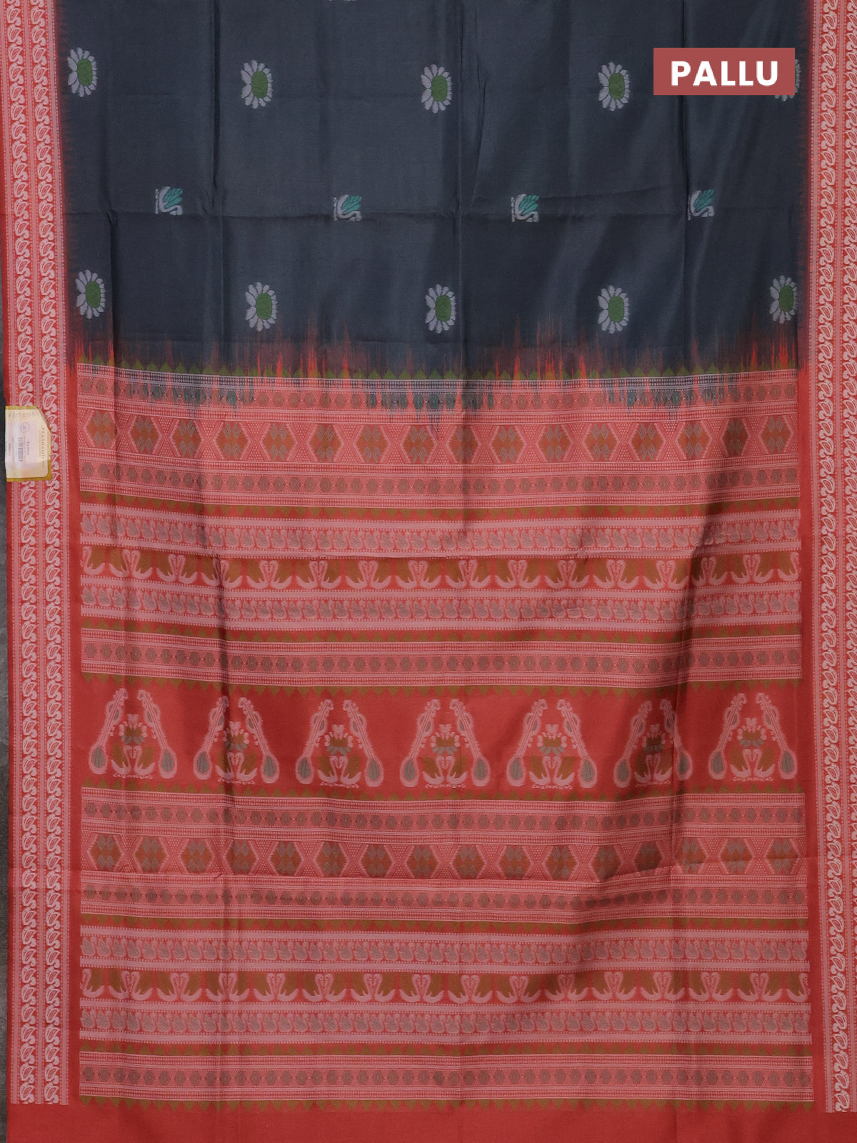 Semi sambalpuri silk saree dark grey and rust shade with allover ikat buttas and thread woven border