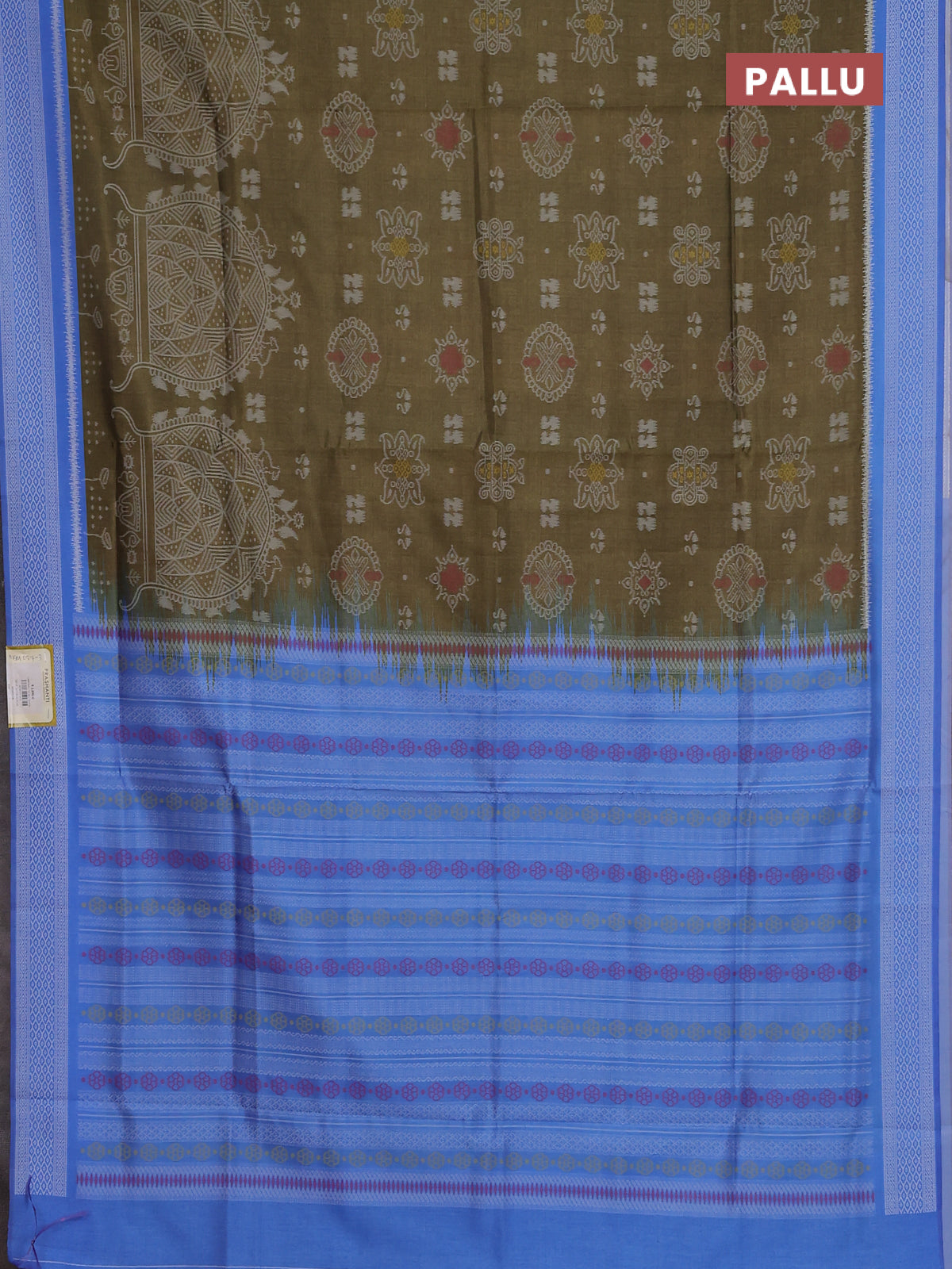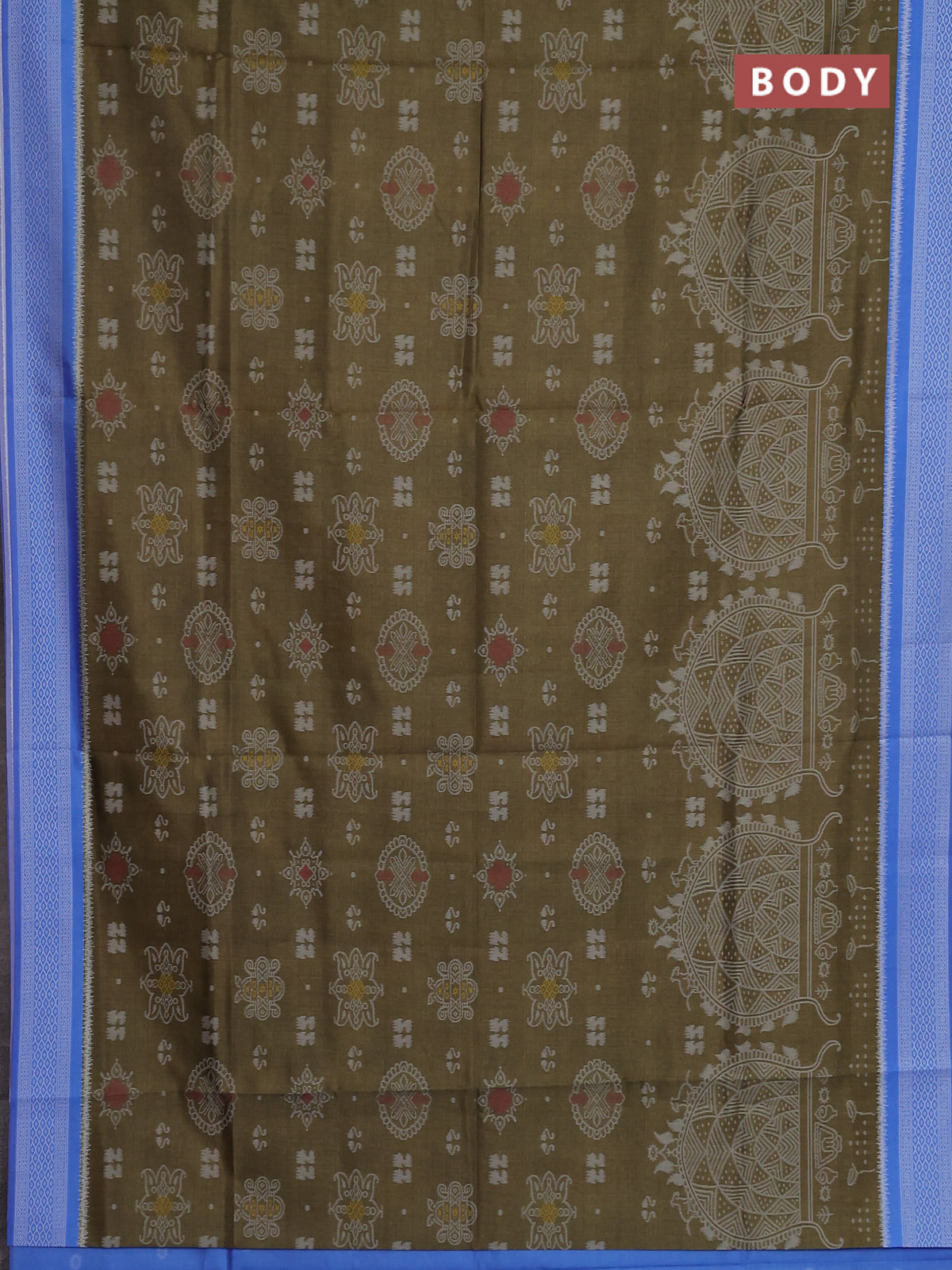 Semi sambalpuri silk saree mehendi green and blue with allover ikat weaves and thread woven border