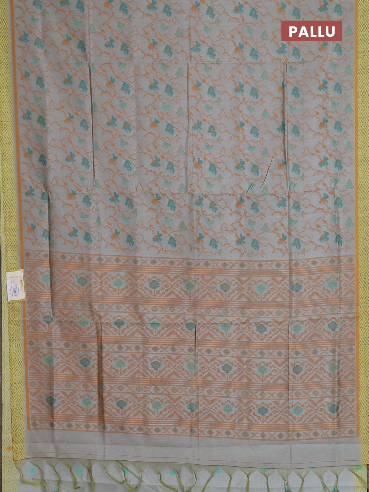 Semi sambalpuri silk saree pastel grey and dark mustard with allover ikat weaves and simple border