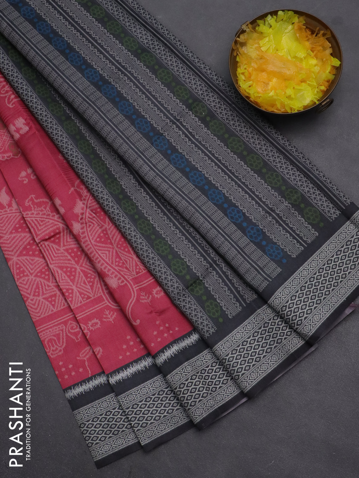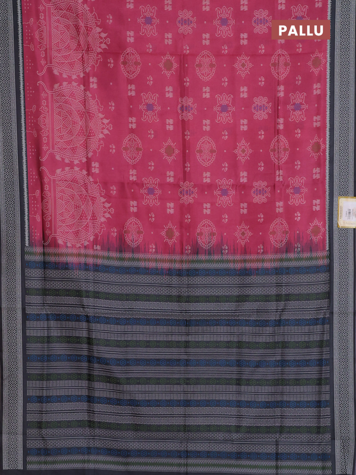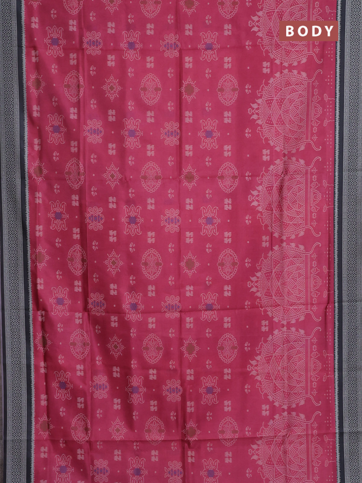 Semi sambalpuri silk saree pink shade and black with allover ikat weaves and thread woven border