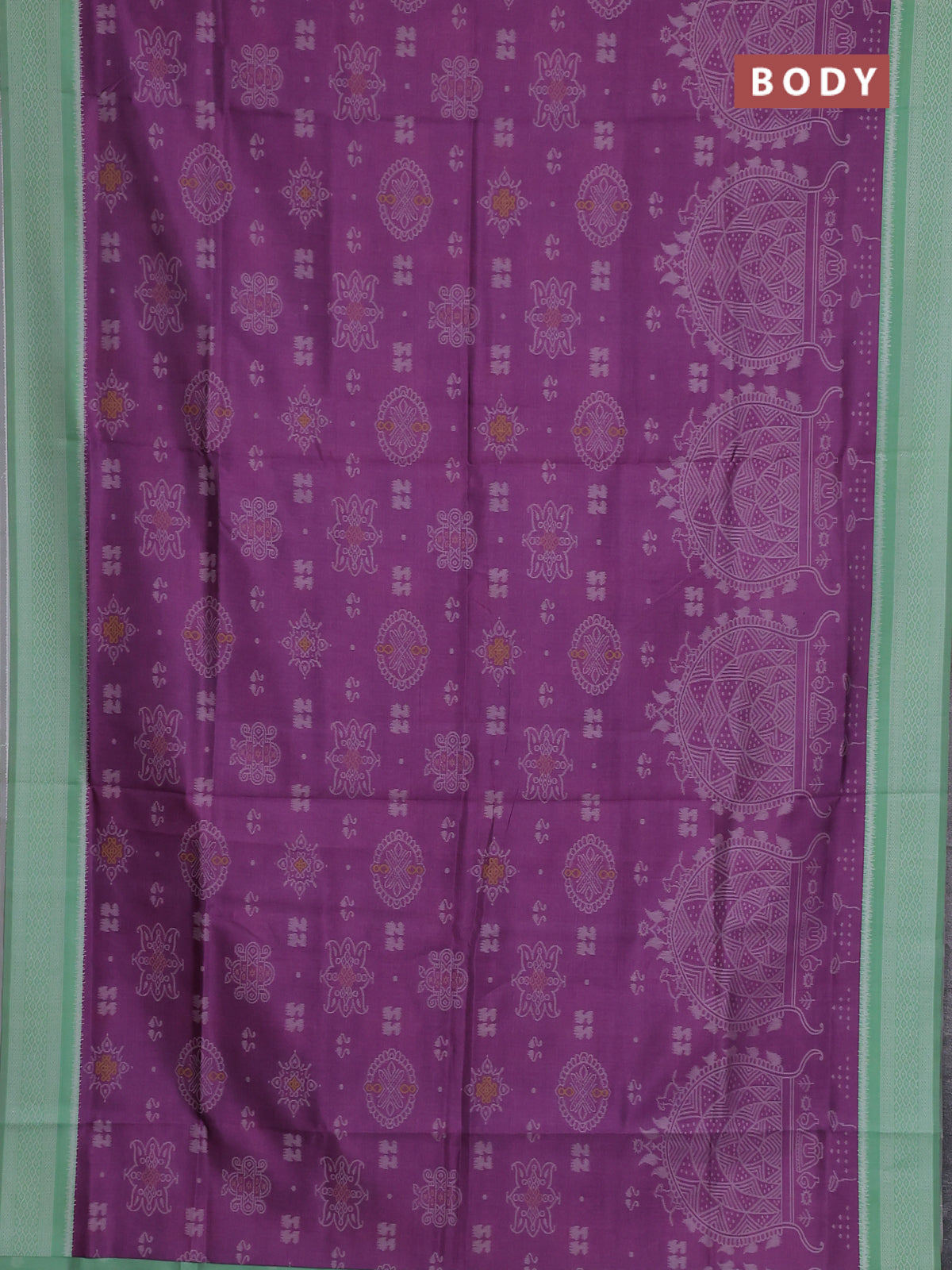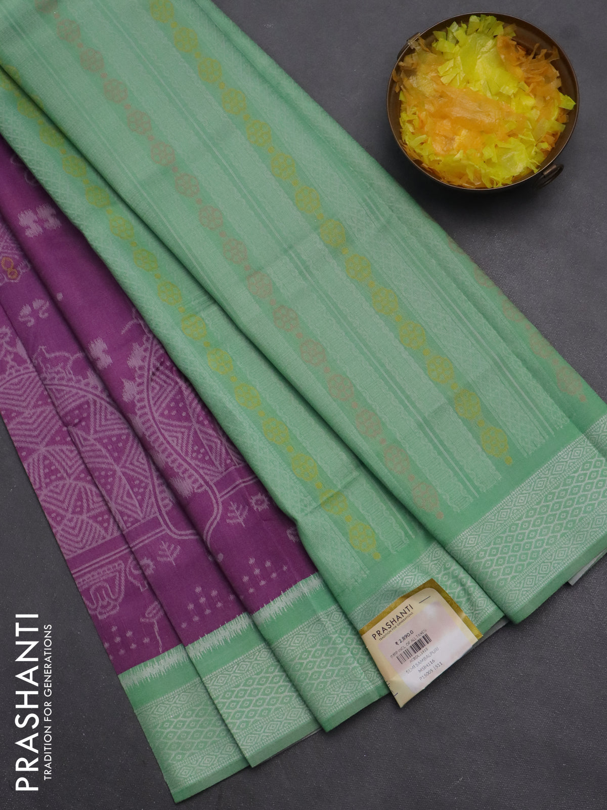 Semi sambalpuri silk saree purple and teal green shade with allover ikat weaves and thread woven border