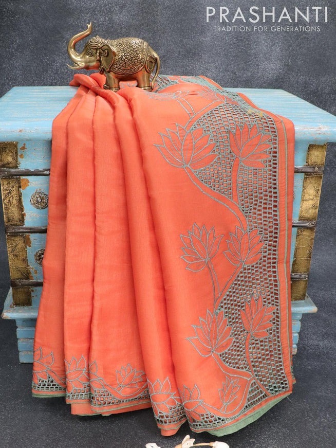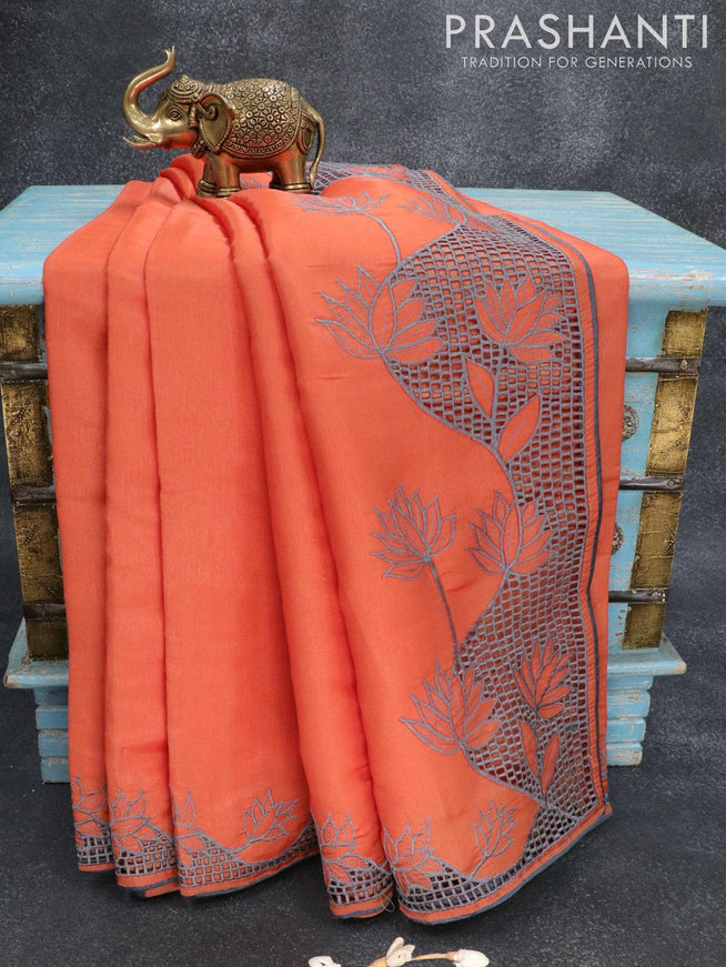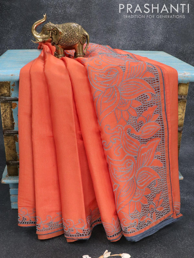 Semi satin silk saree orange and with mirror embroidery work