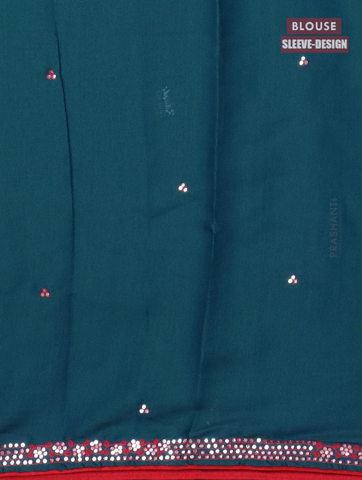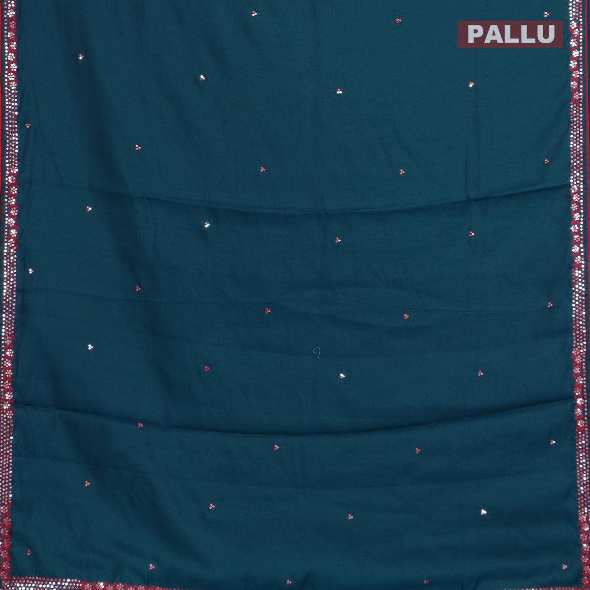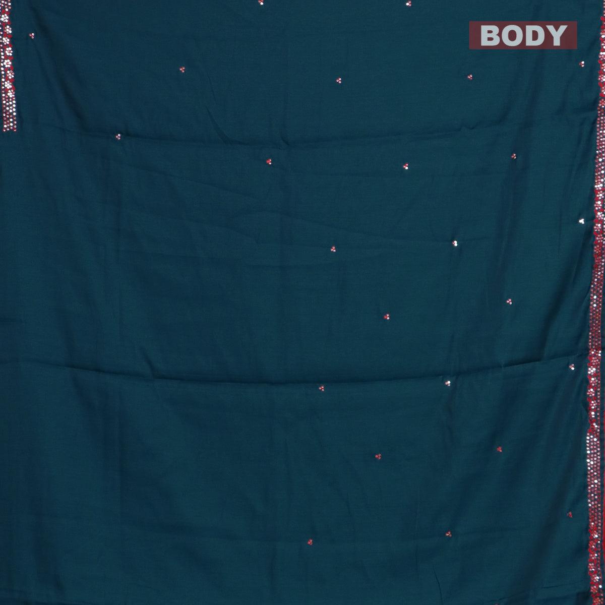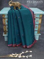 Semi satin silk saree peacock blue and with mirror embroidery work
