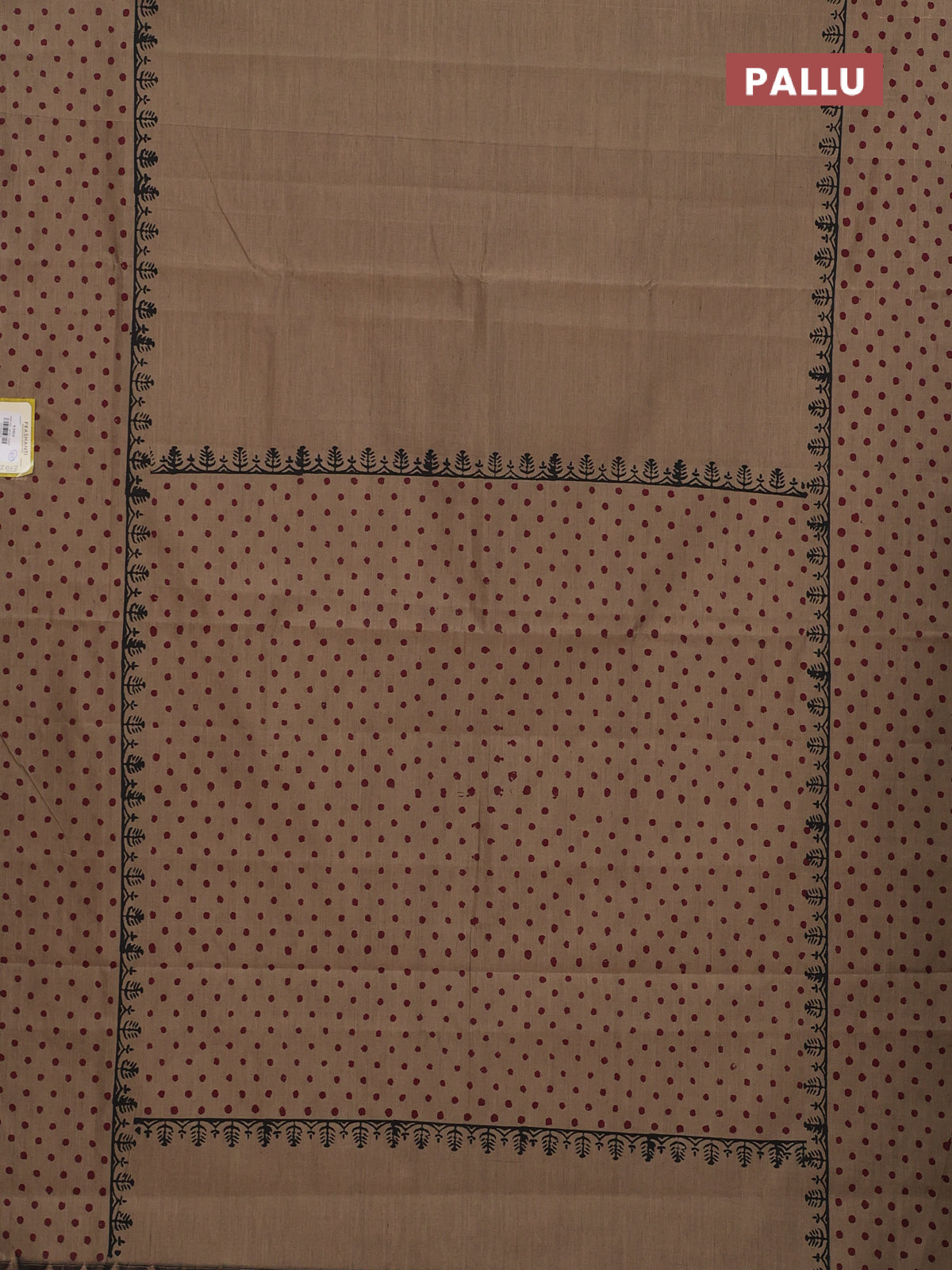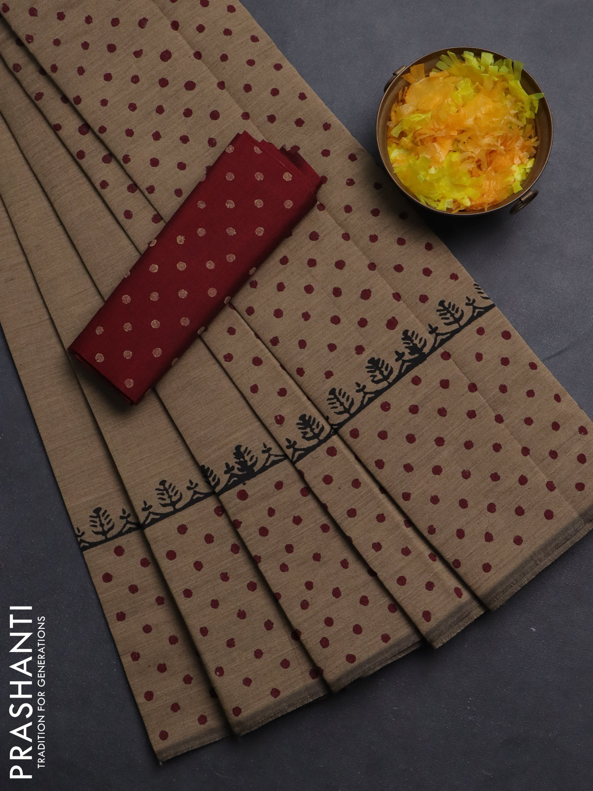 Semi silk cotton saree beige and maroon with plain body and printed border