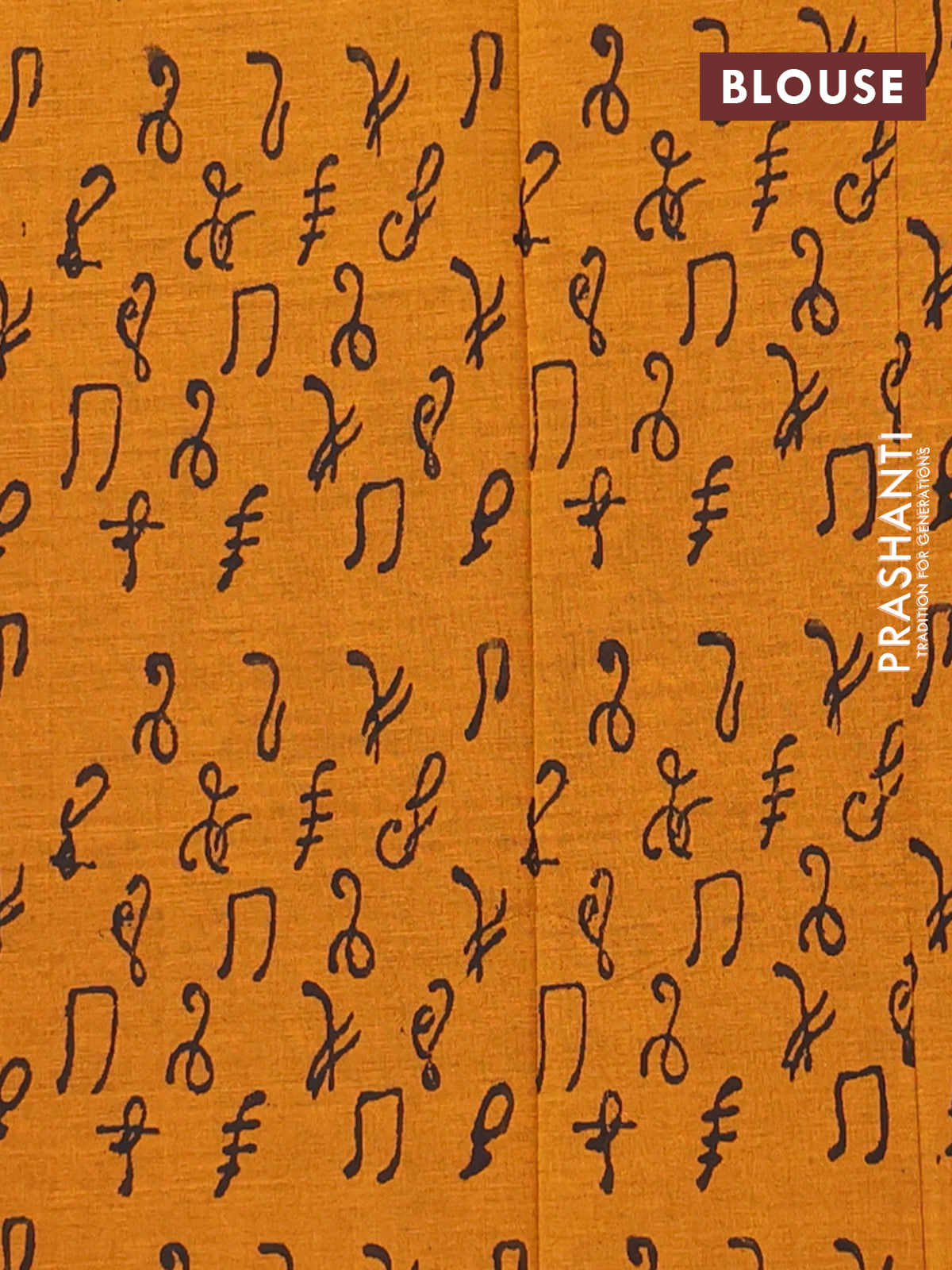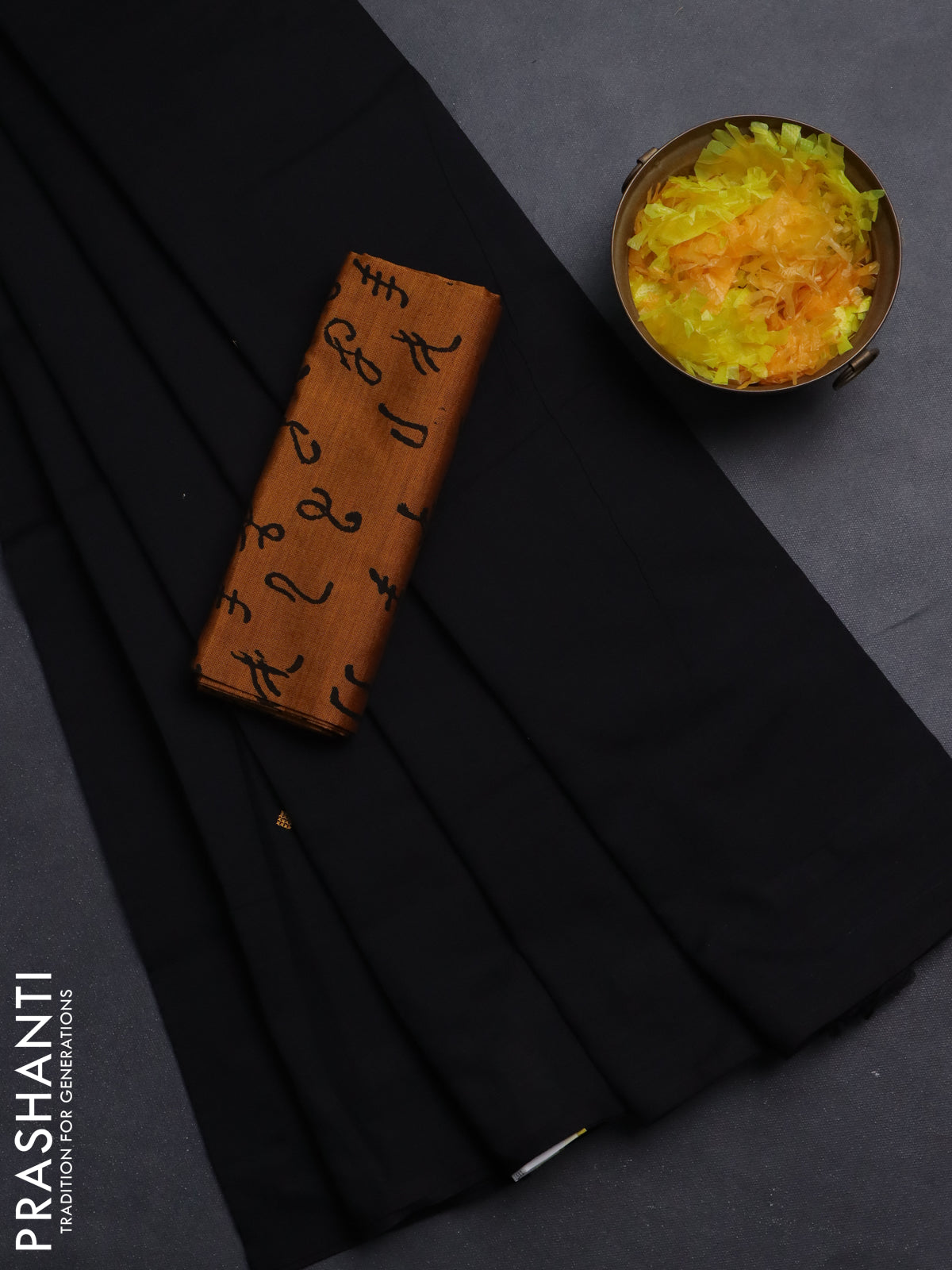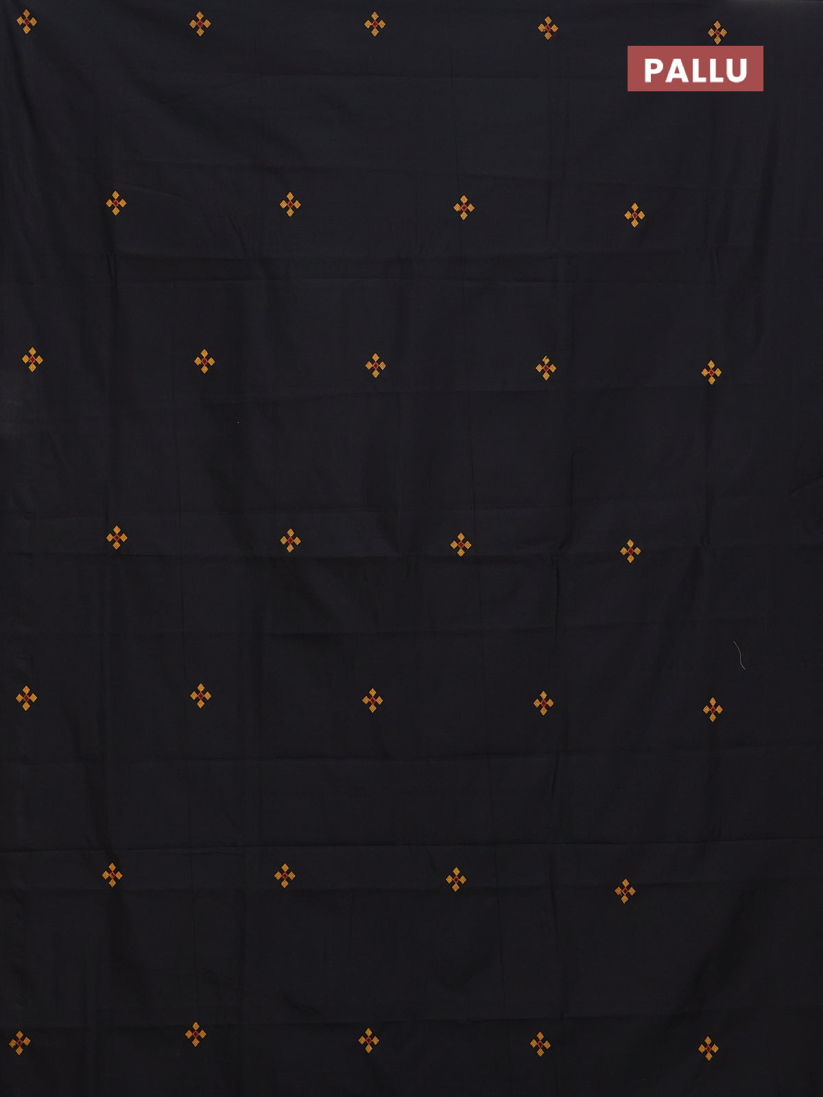Semi silk cotton saree black and mustard shade with embroided buttas in borderless style