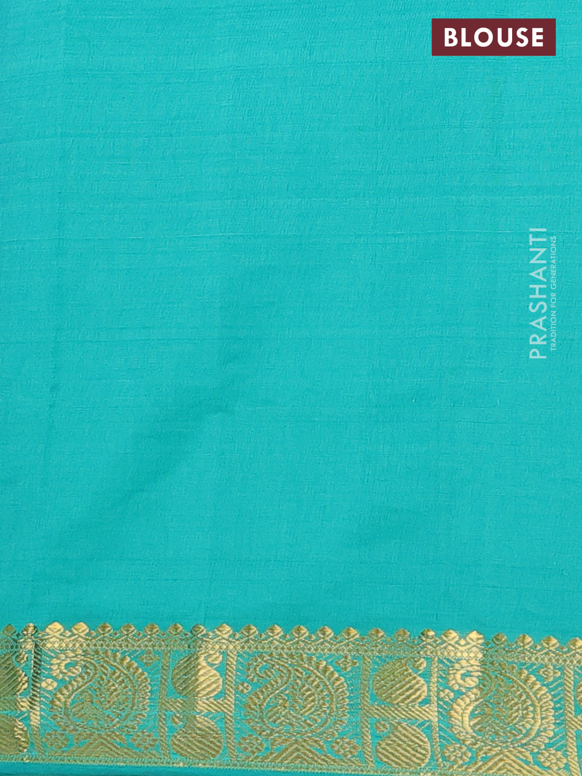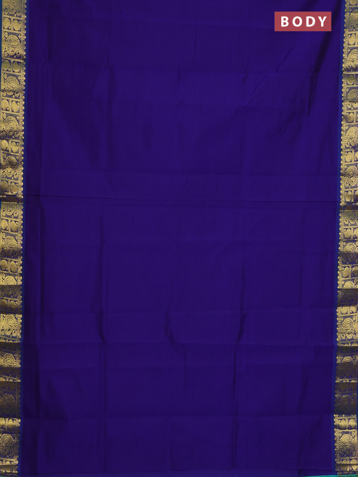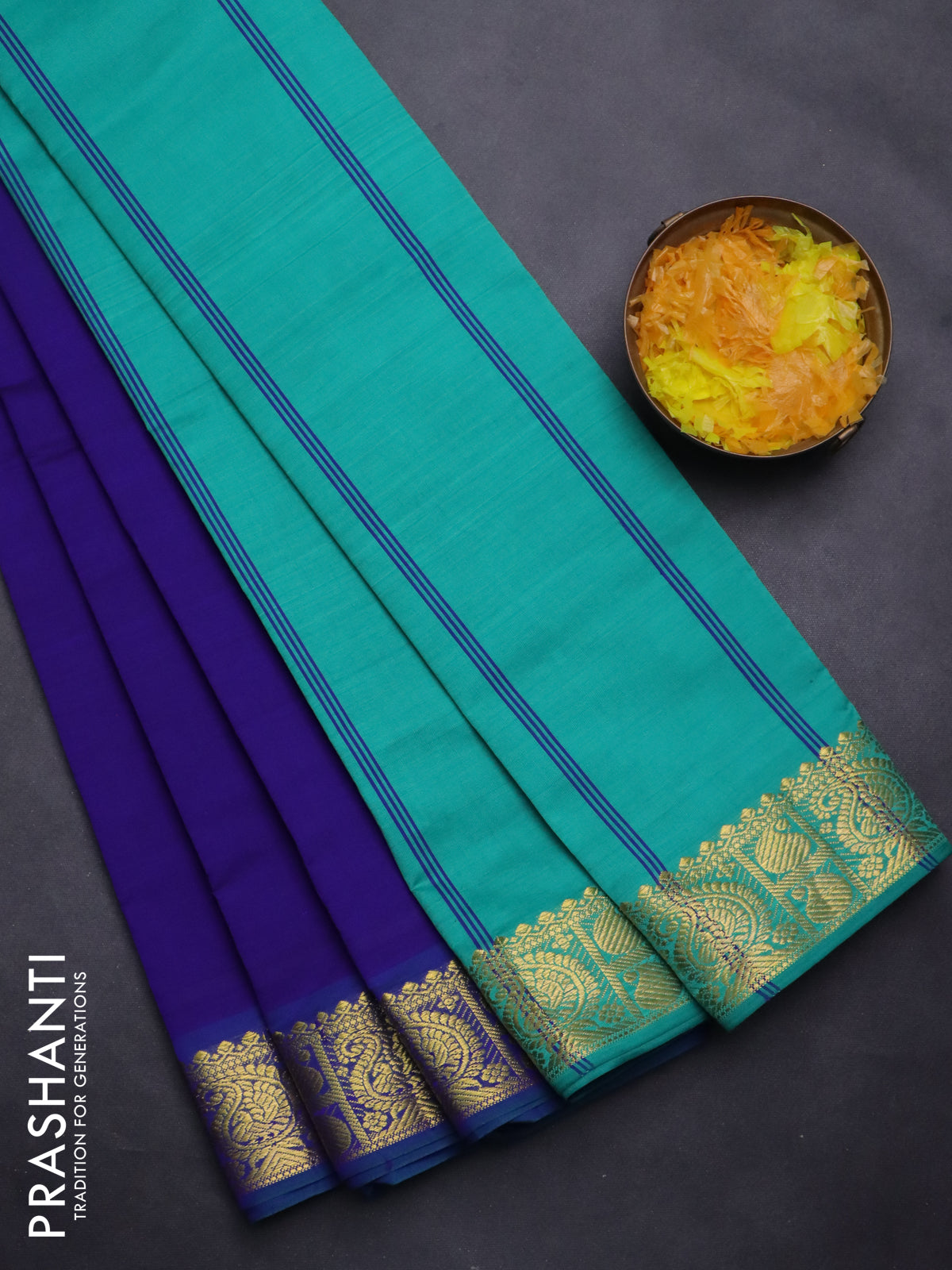 Semi silk cotton saree blue and teal green shade with plain body and paisley zari woven border