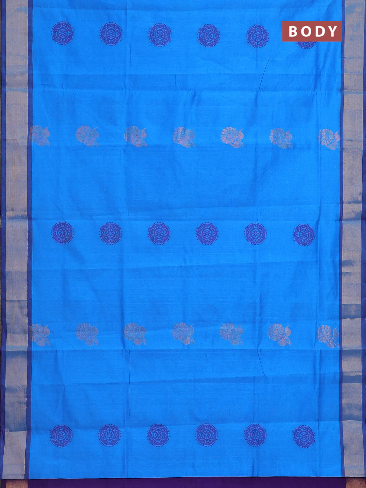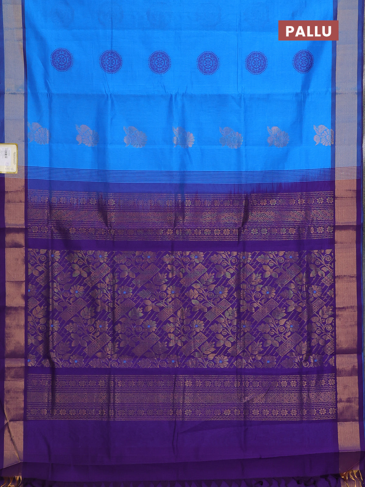 Semi silk cotton saree cs blue and violet with zari woven floral buttas and zari woven border