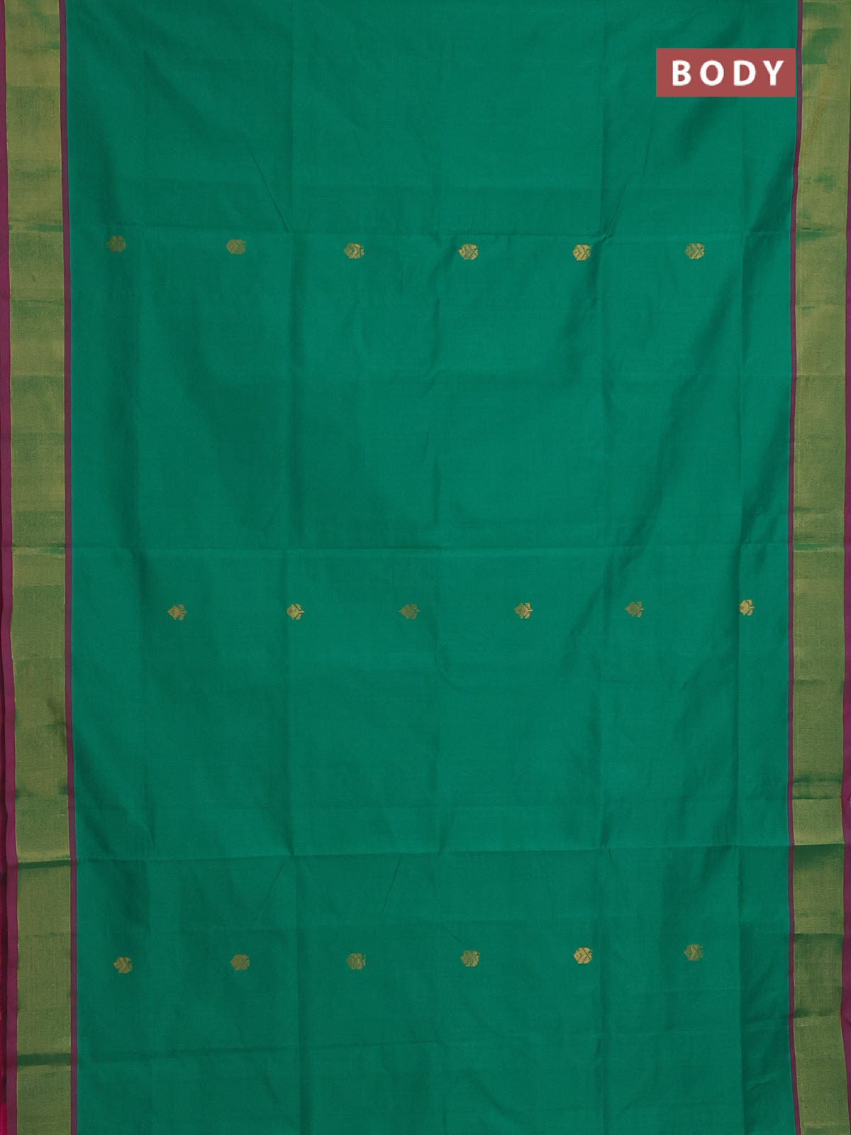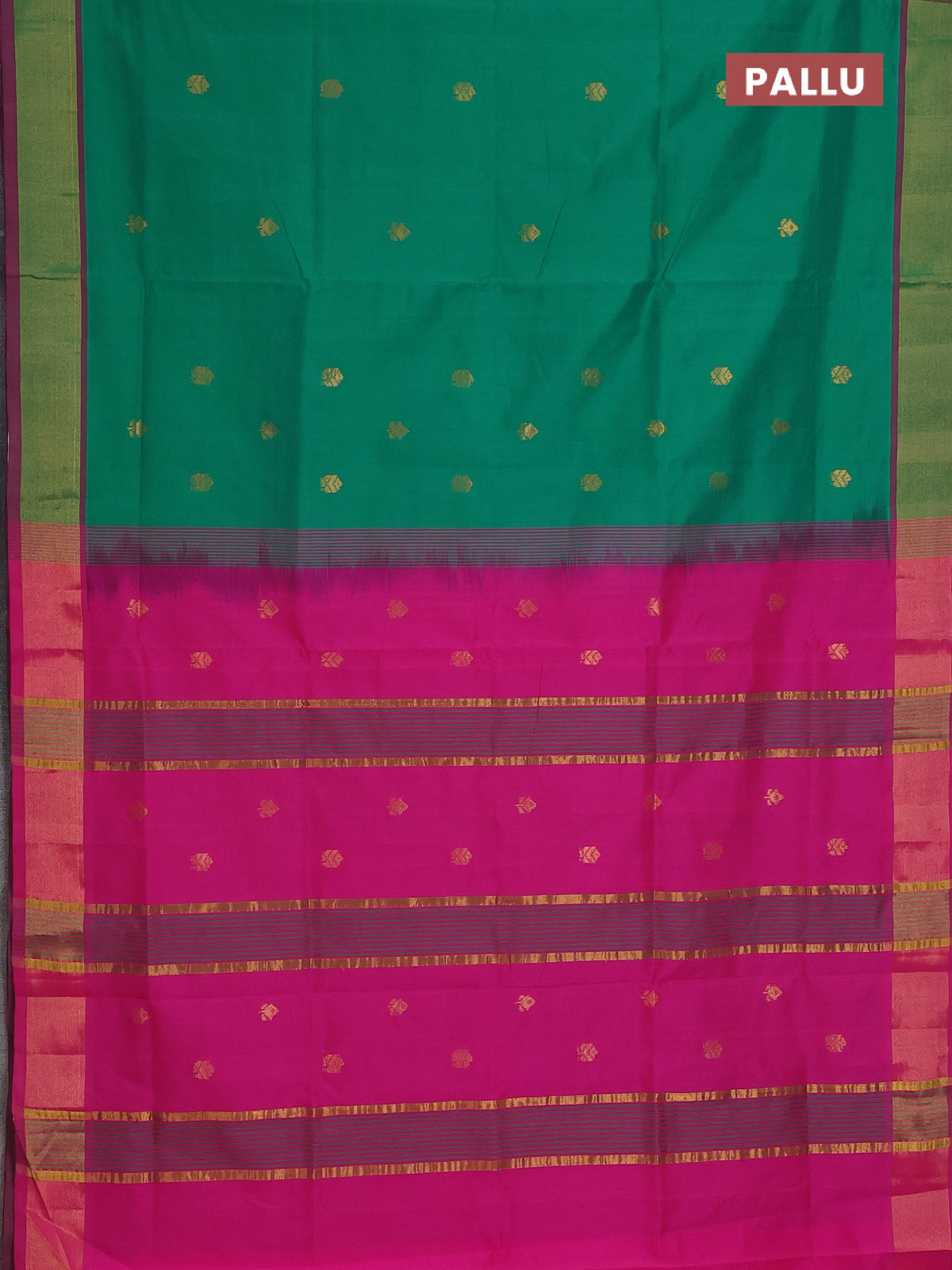 Semi silk cotton saree green and pink with zari woven buttas and zari woven border