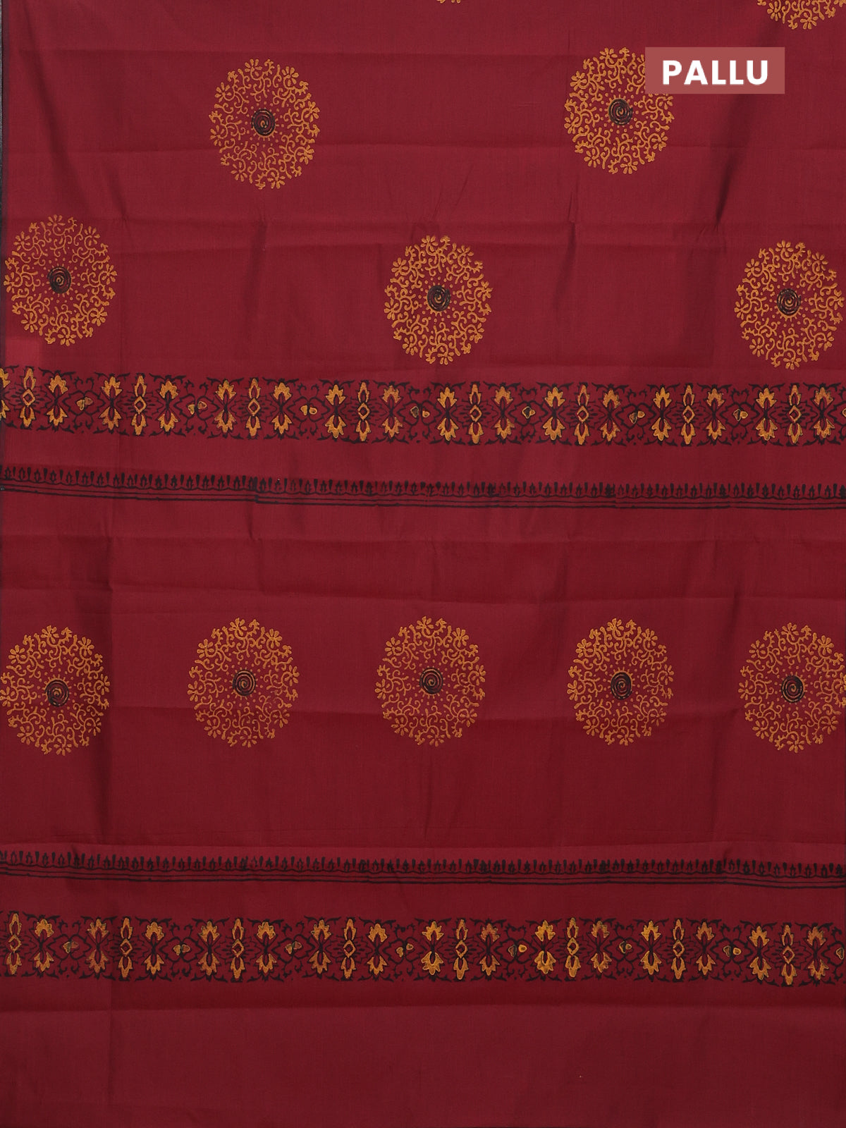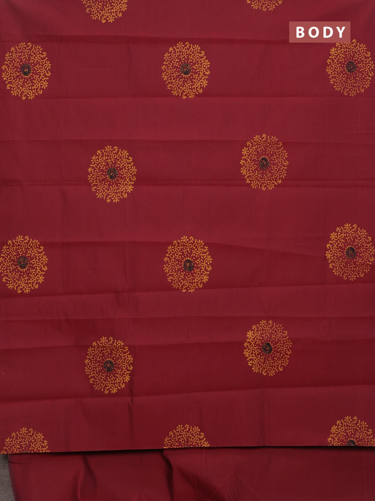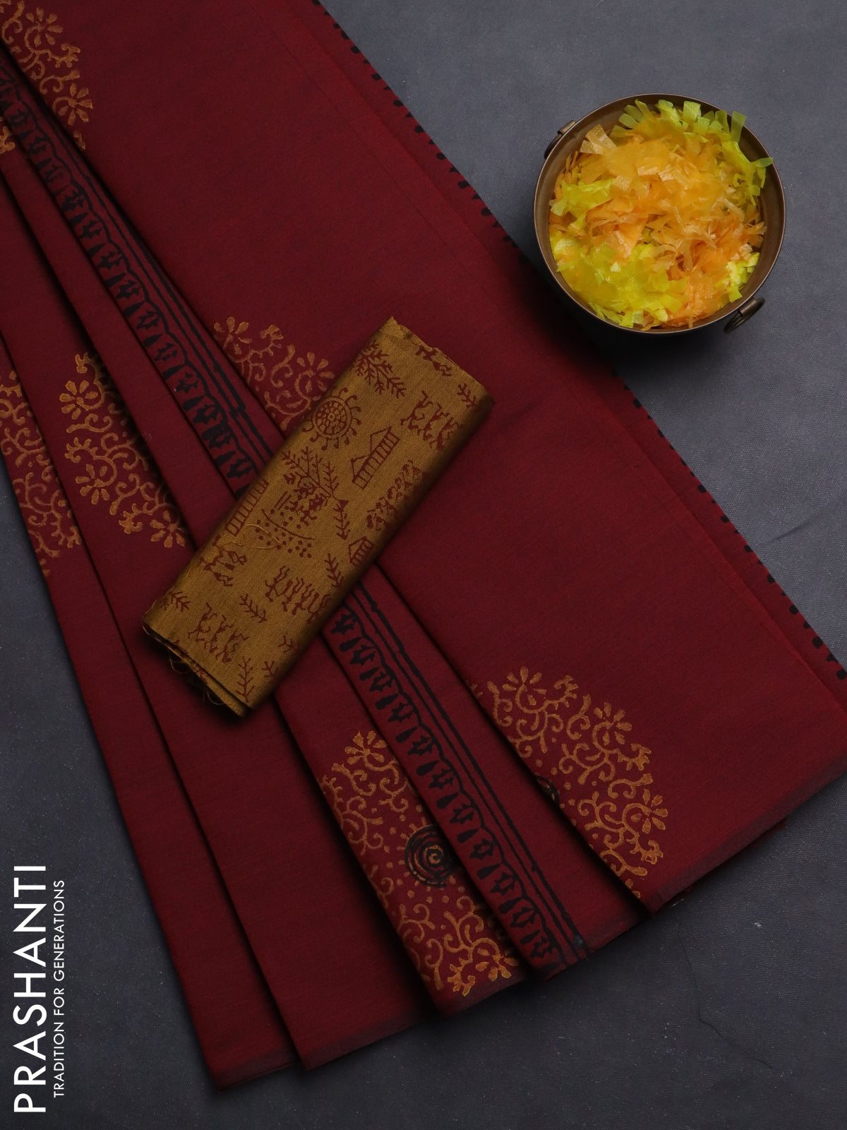 Semi silk cotton saree maroon and dark mustard with butta prints in borderless style