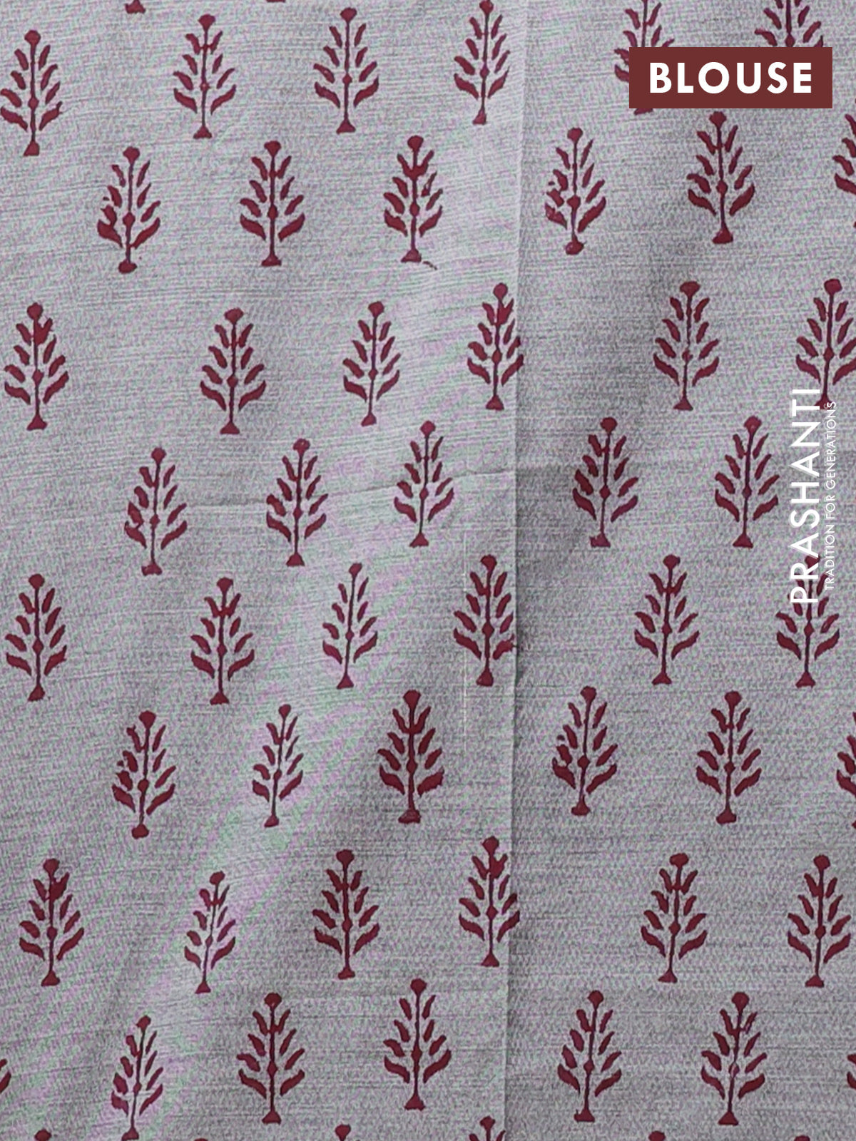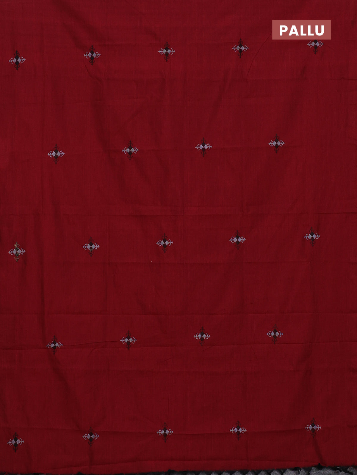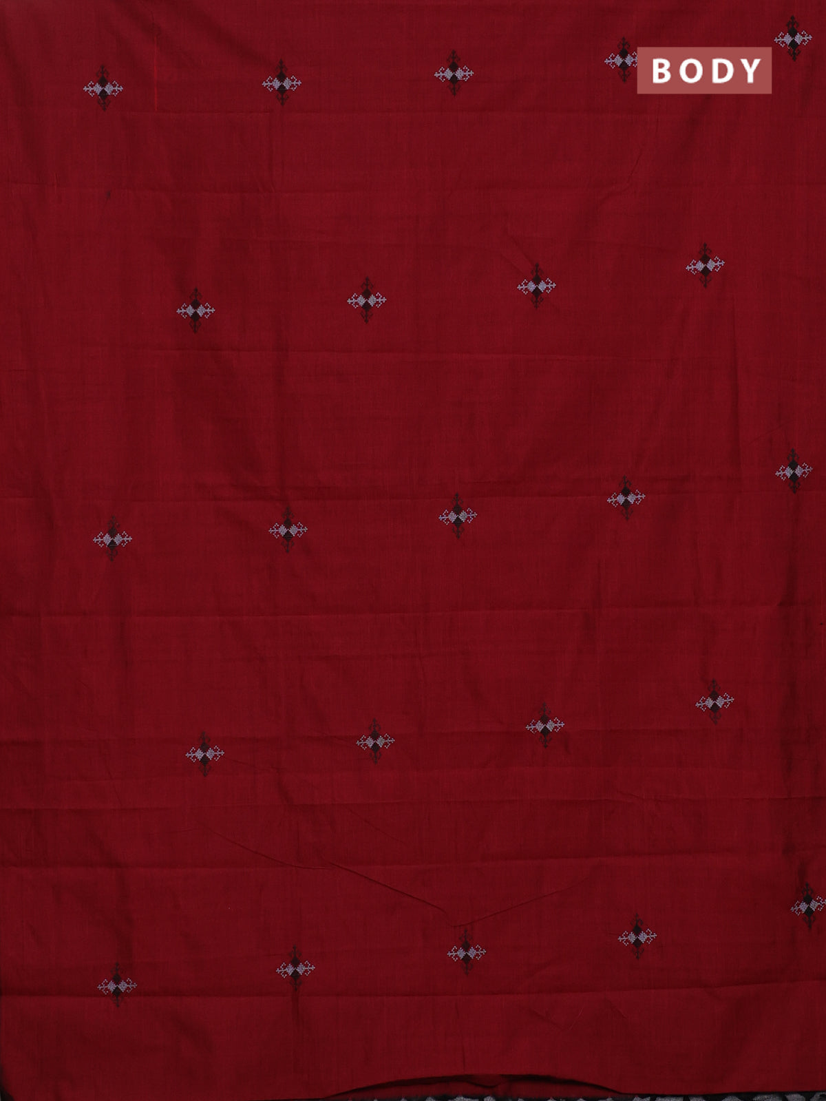 Semi silk cotton saree maroon and grey with embroided buttas in borderless style