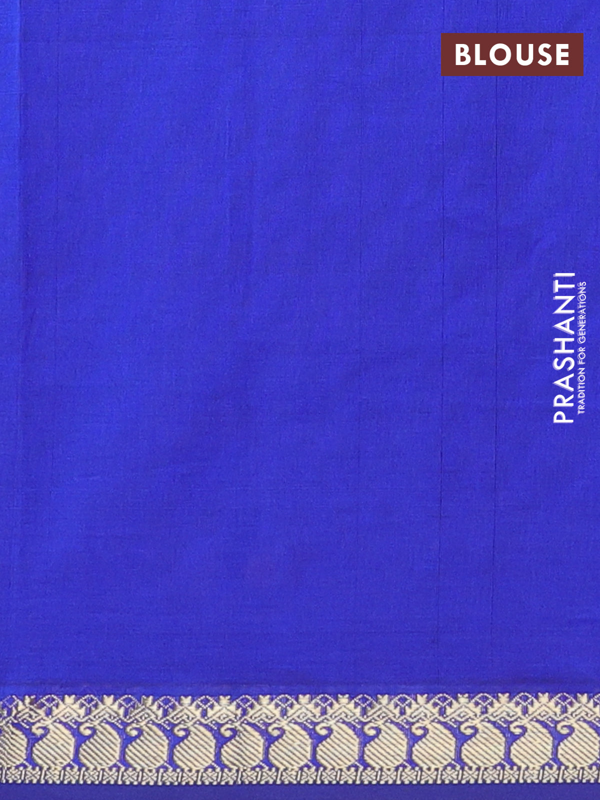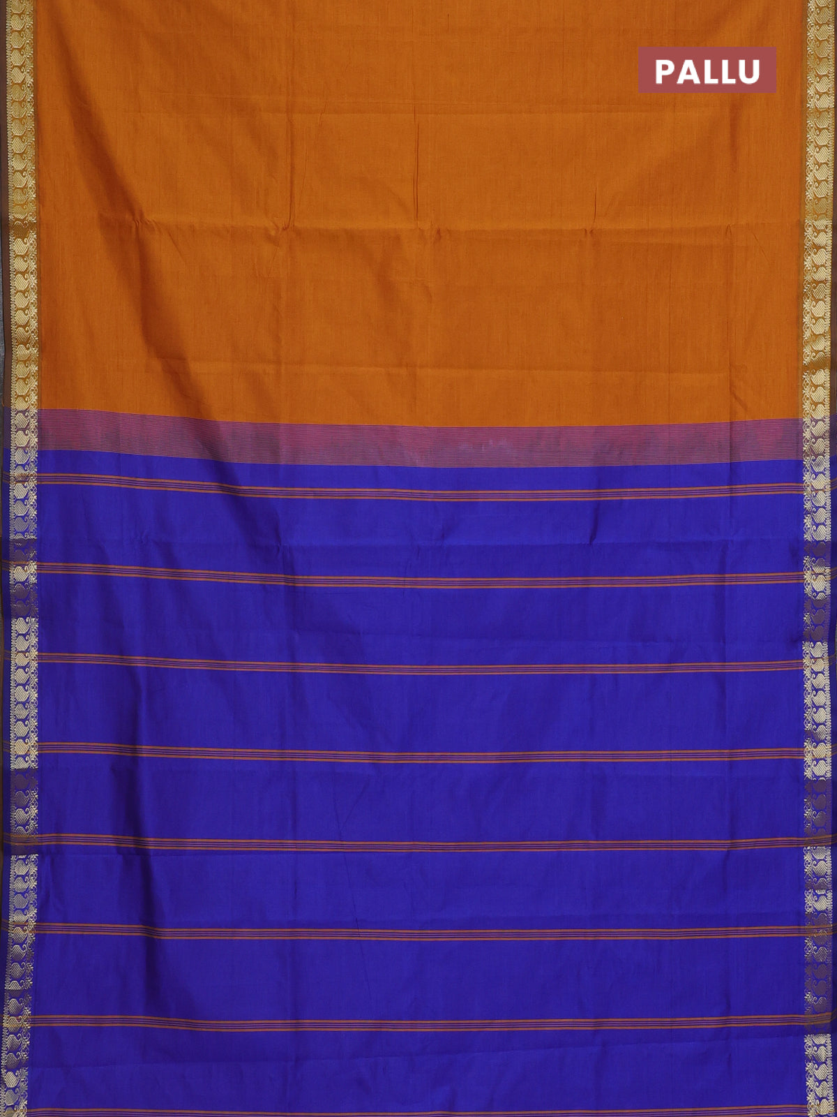 Semi silk cotton saree mustard yellow and blue with plain body and zari woven border