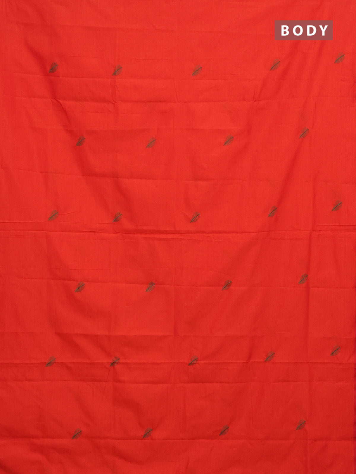 Semi silk cotton saree orange and green with embroided buttas in borderless style