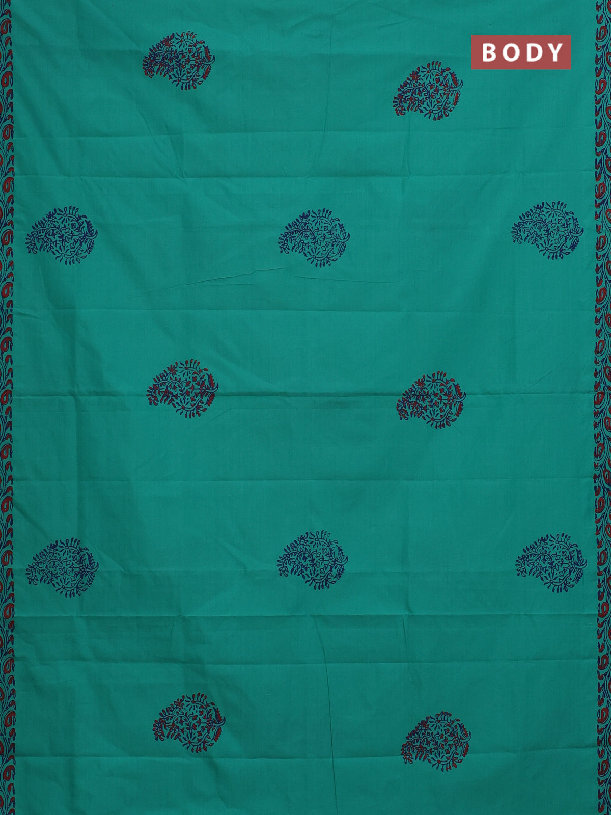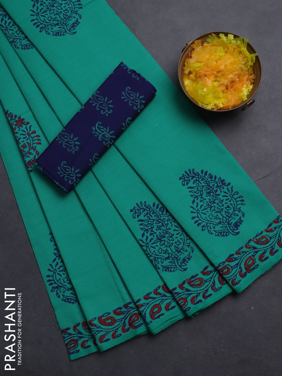 Semi silk cotton saree teal green and blue with butta prints and printed border