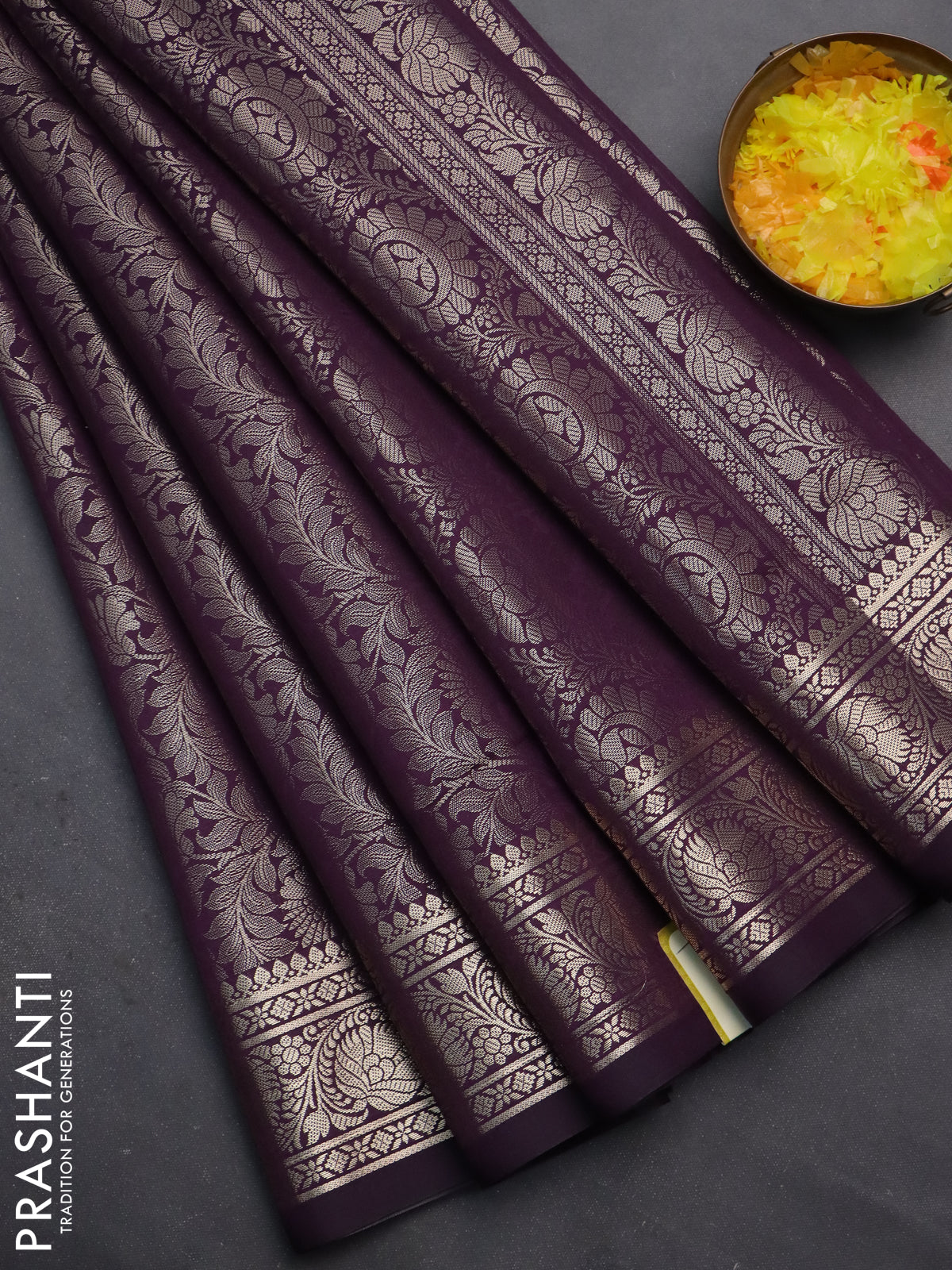 Semi soft silk saree deep purple with allover zari woven brocade weaves -Without blouse
