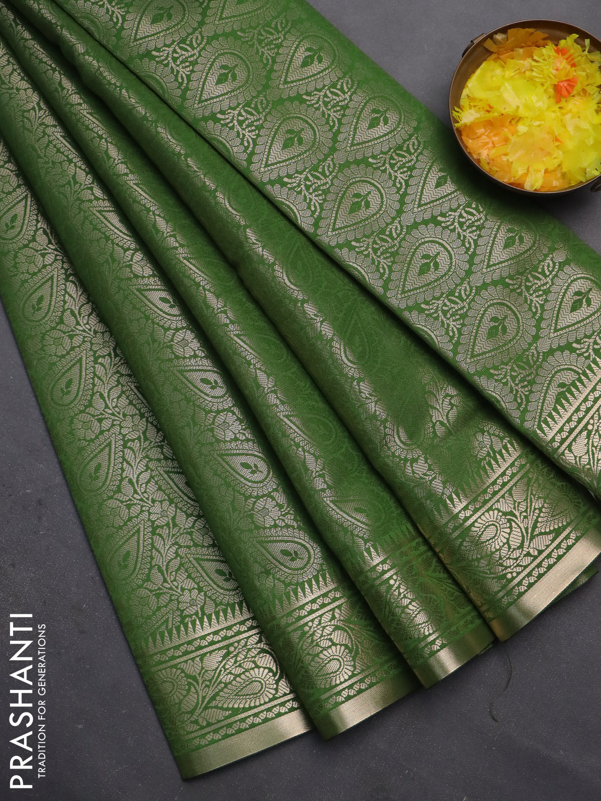 Semi soft silk saree green with allover zari woven brocade weaves -Without blouse