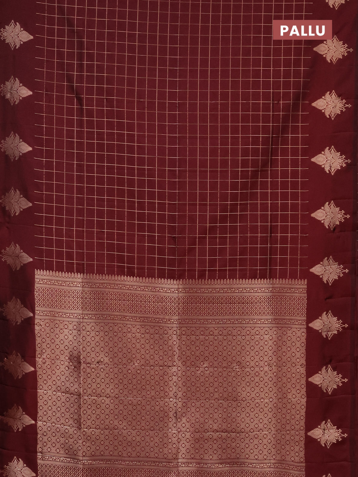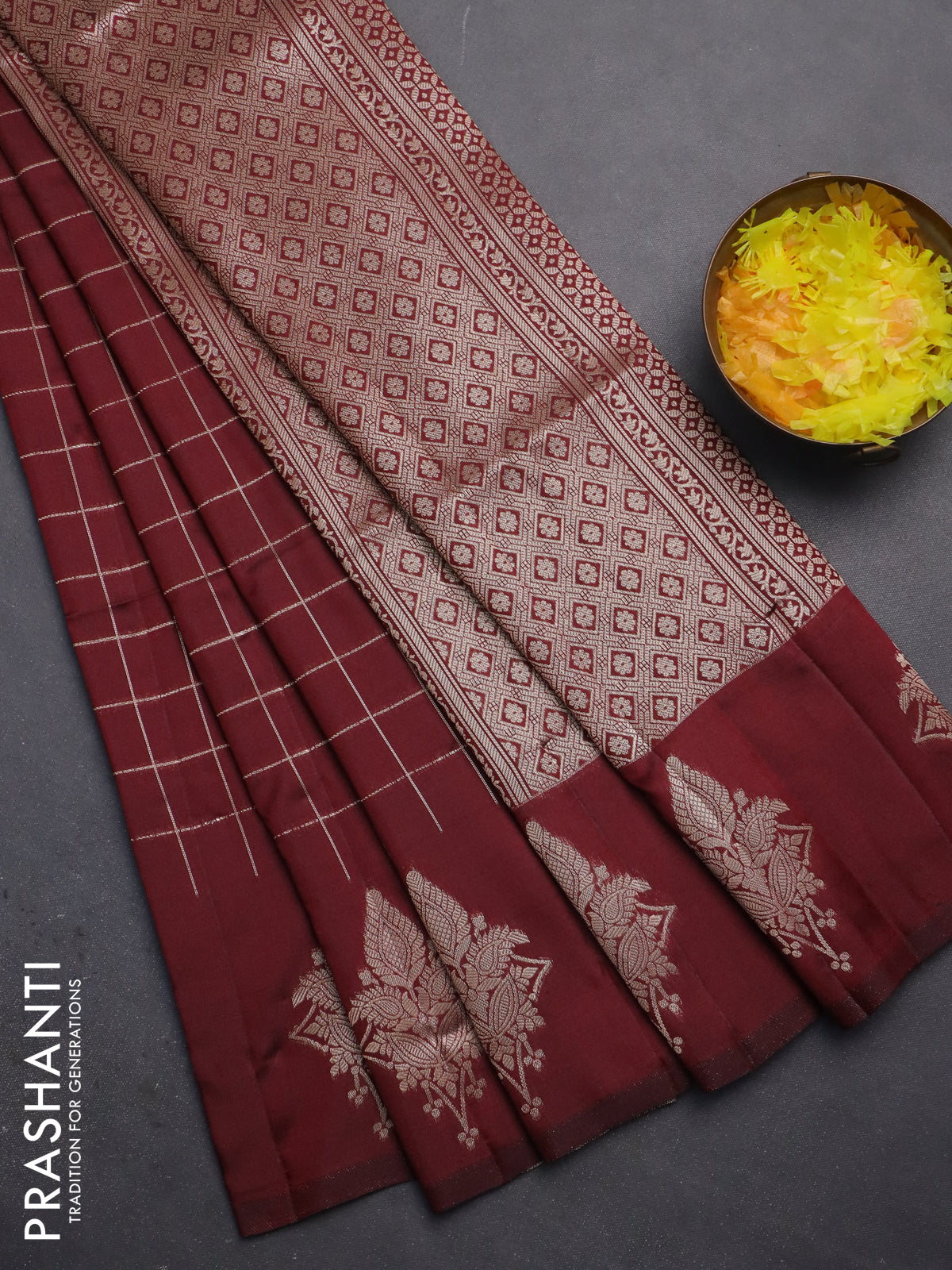 Semi soft silk saree maroon with allover zari woven checked pattern and zari woven butta border