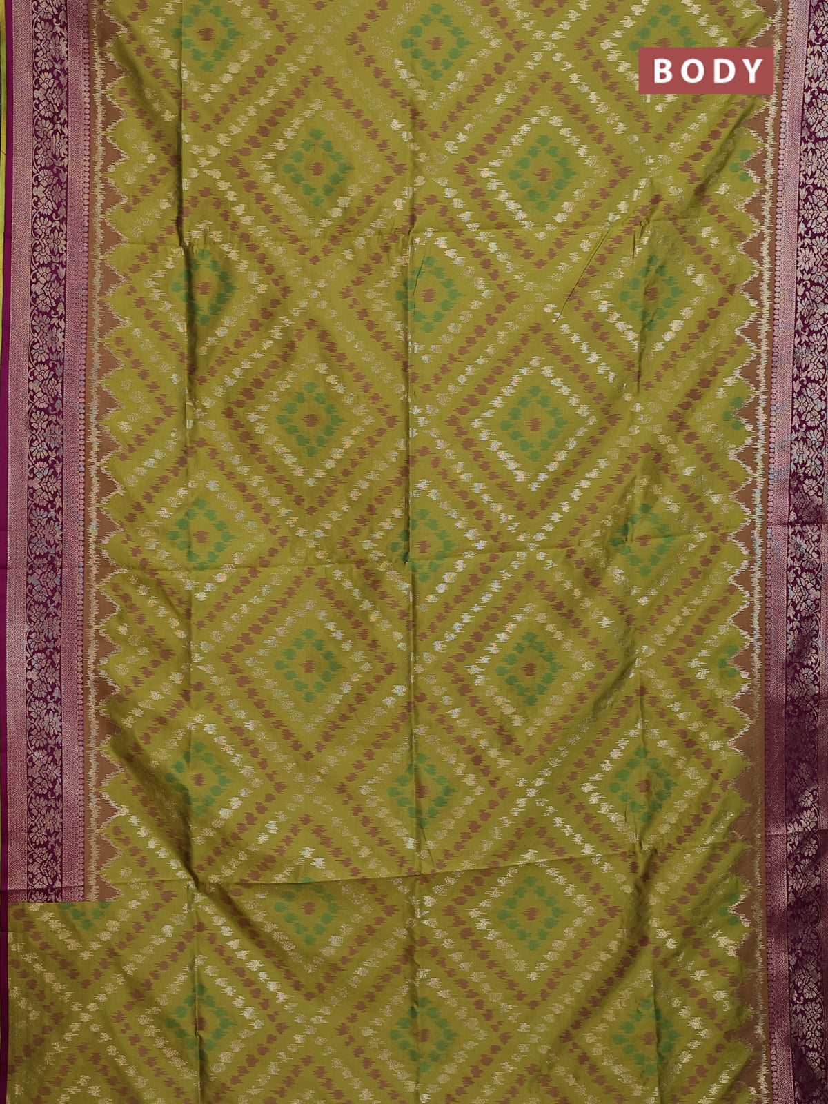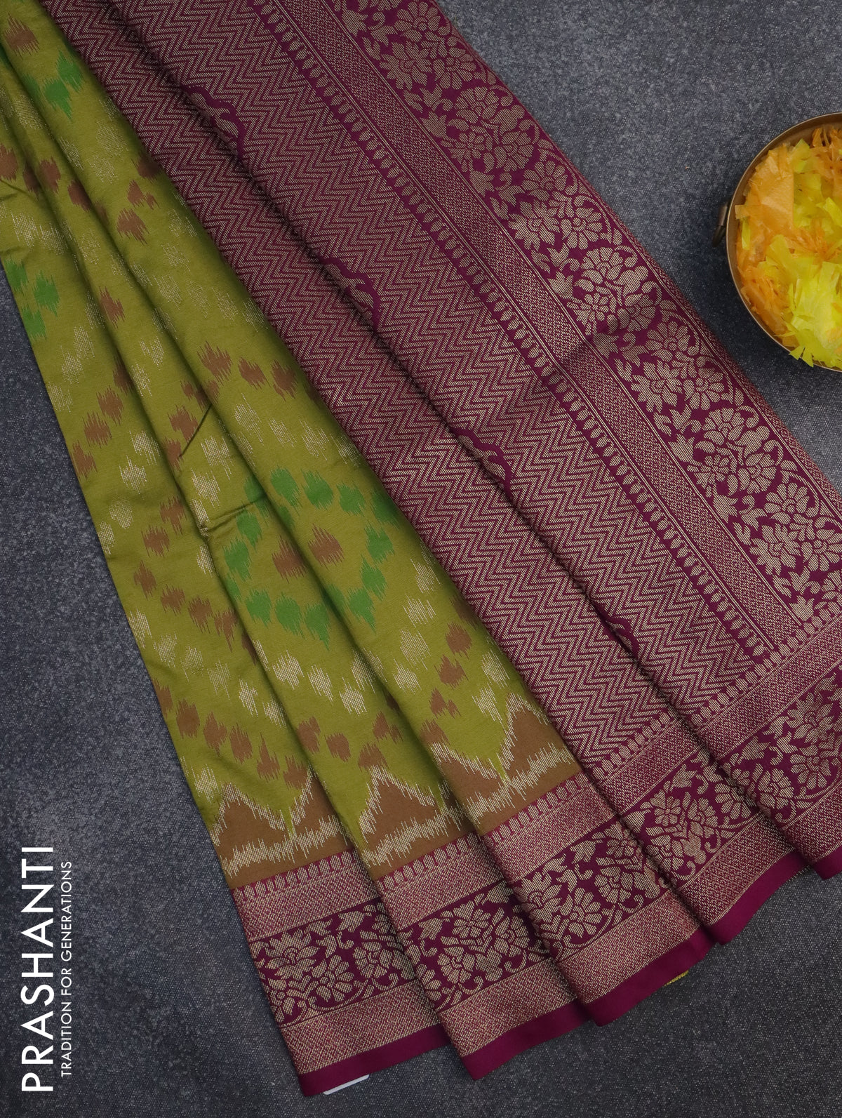 Semi soft silk saree mehendi green and purple with allover ikat & zari weaves and zari woven border