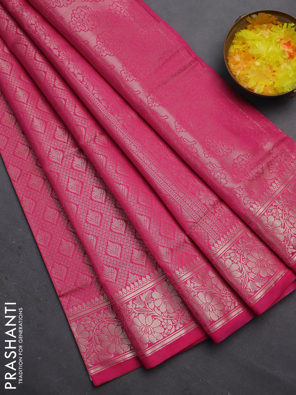 Semi soft silk saree pink with allover zari woven brocade weaves -Without blouse