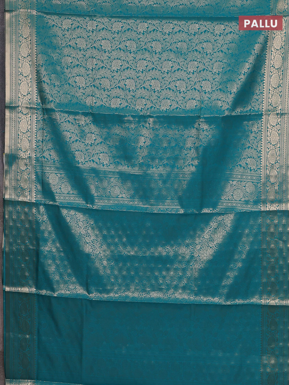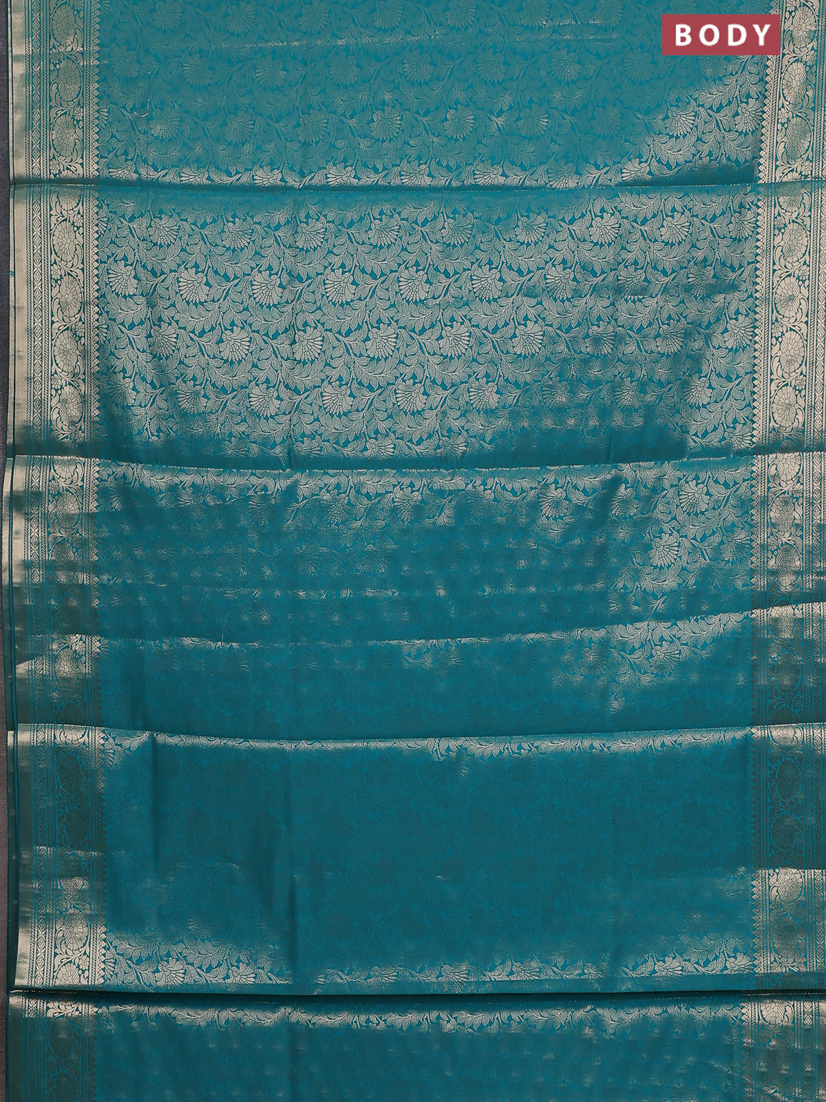 Semi soft silk saree teal blue with allover zari woven brocade weaves -Without blouse