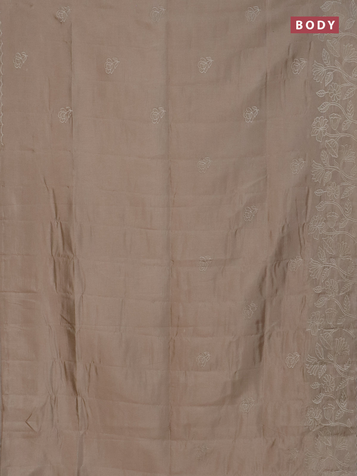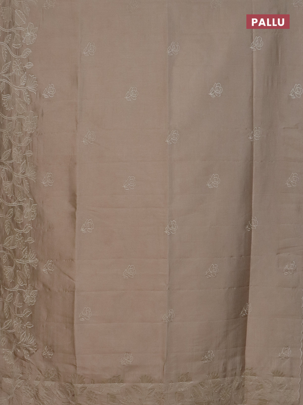 Semi tussar saree beige with floral embroidery work and applique work border