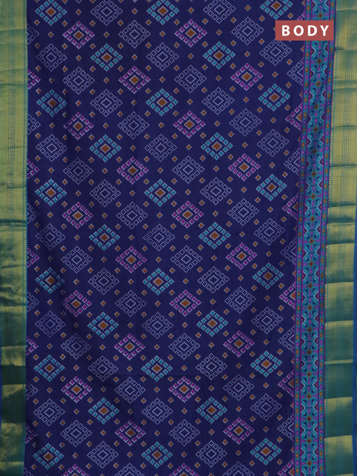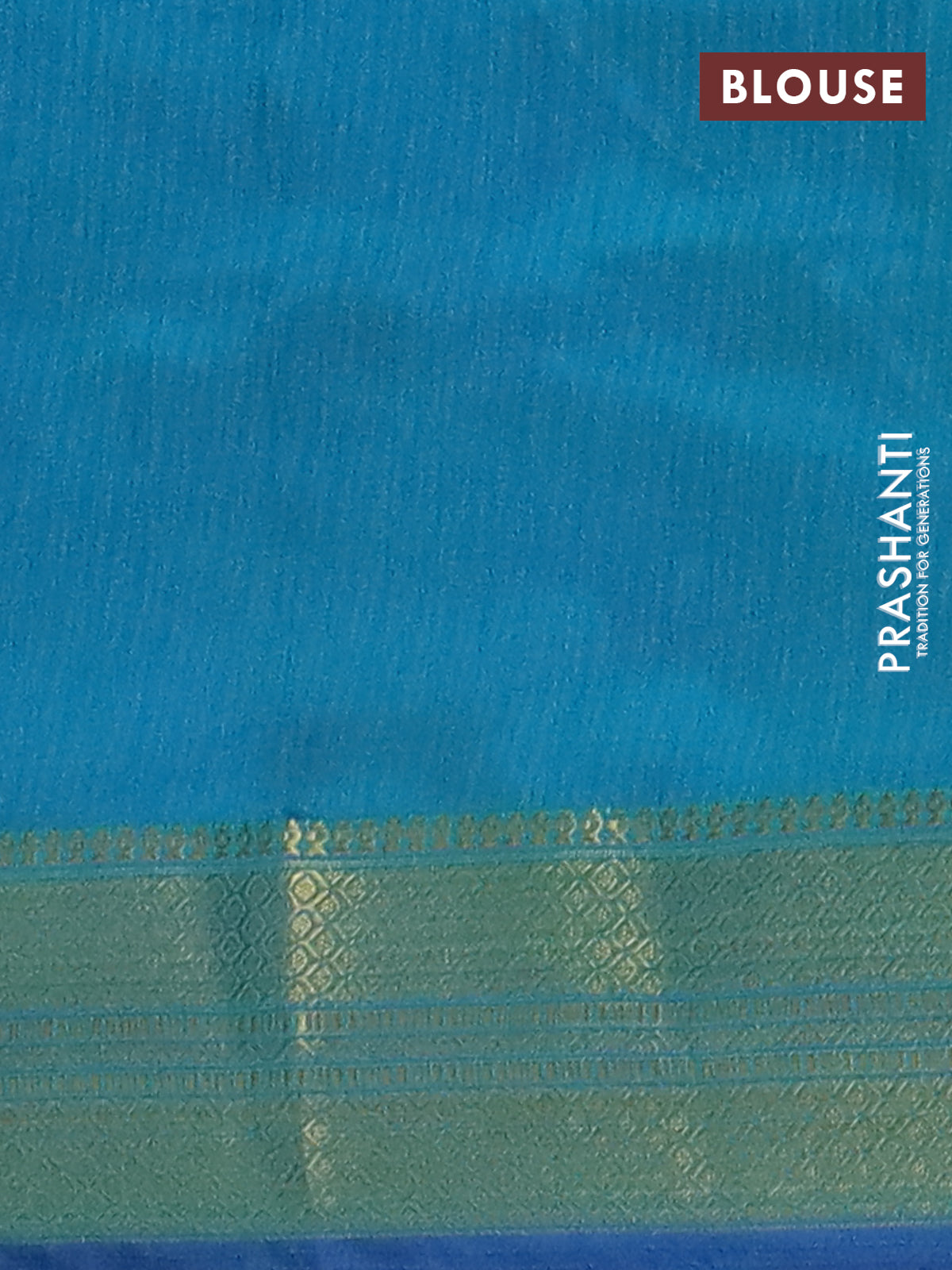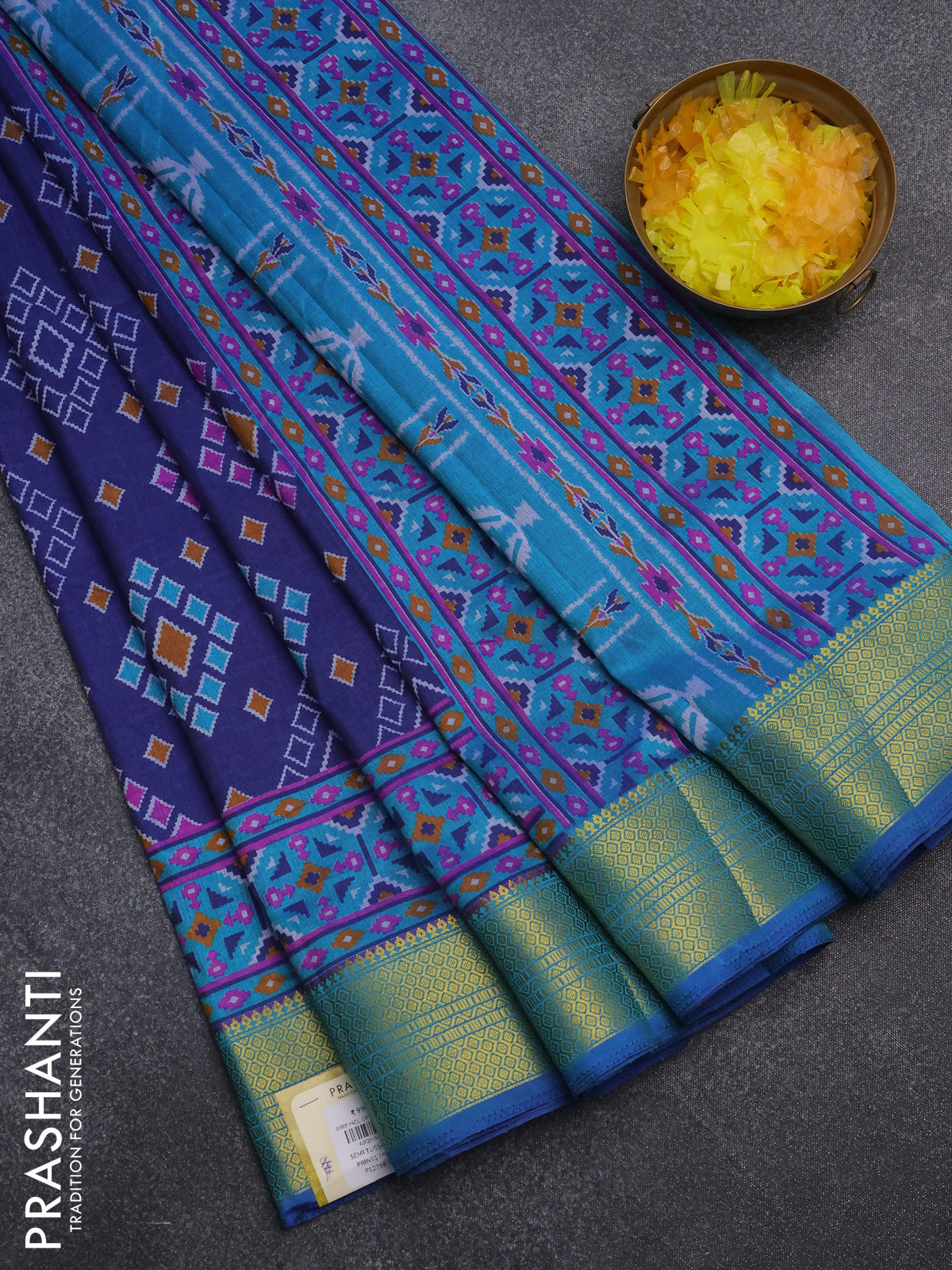 Semi tussar saree blue and cs blue with allover ikat prints and zari woven border
