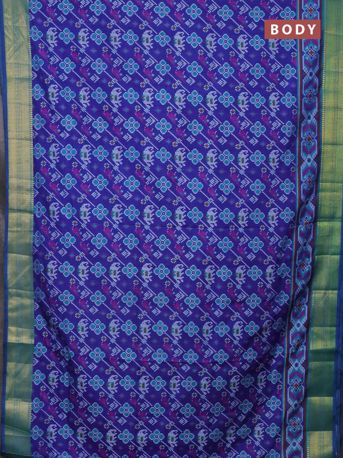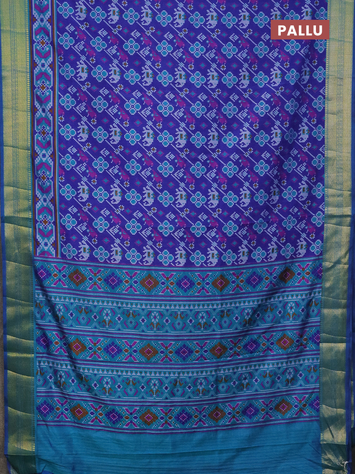 Semi tussar saree blue and teal blue with allover patola prints and zari woven border