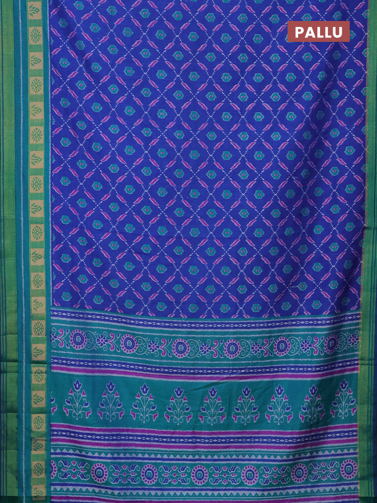 Semi tussar saree blue and teal bluish green with allover ikat prints and zari woven border