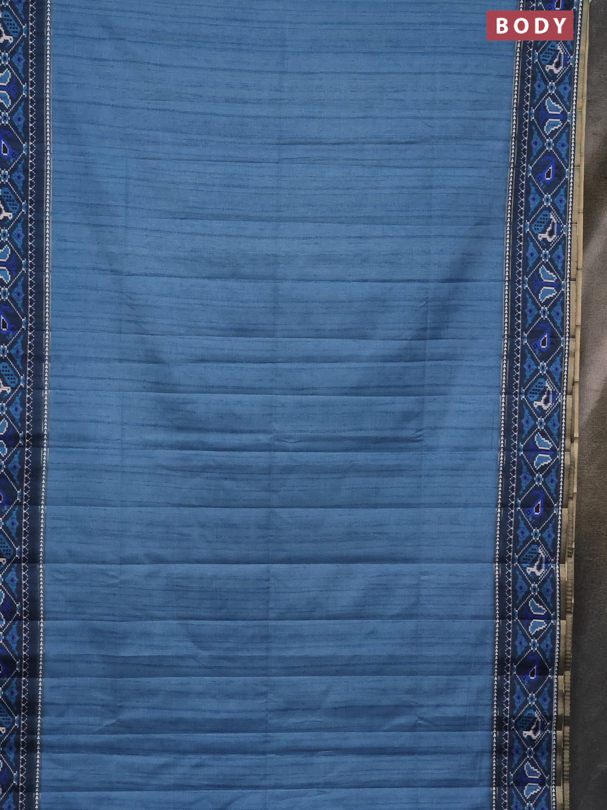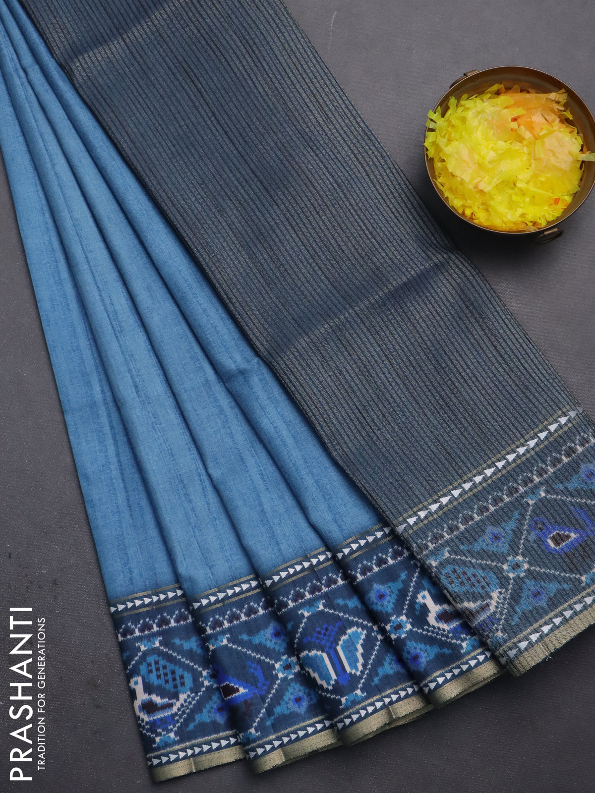 Semi tussar saree blue shade and peacock blue with plain body and patola printed border