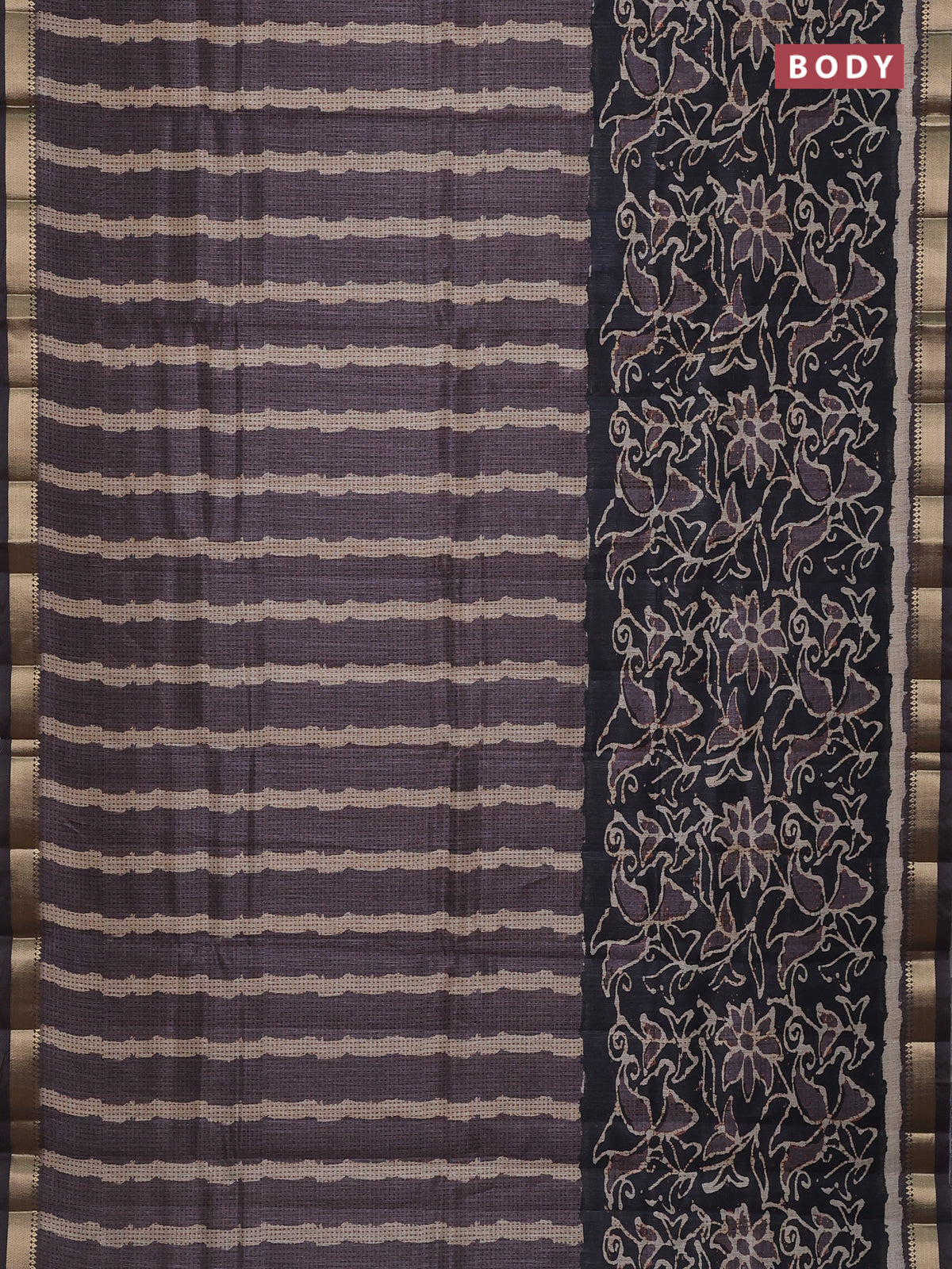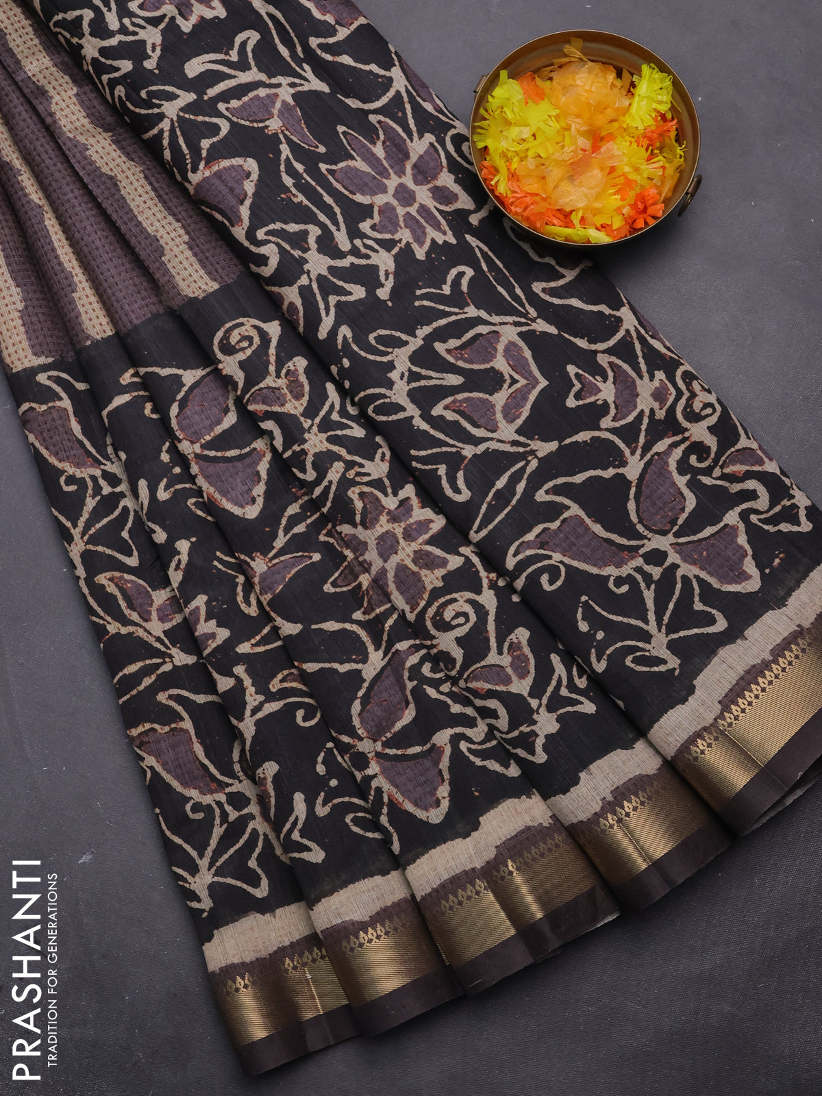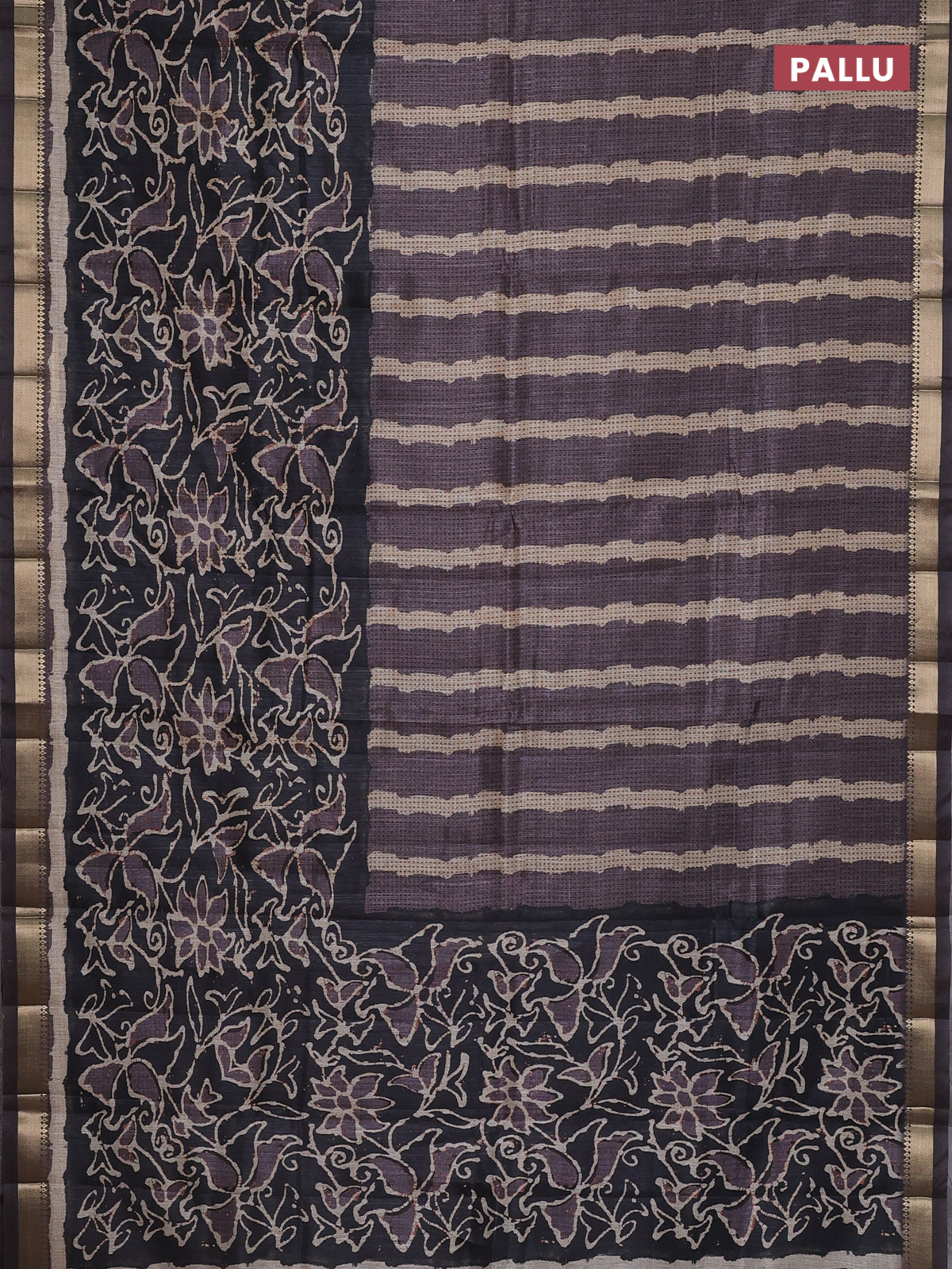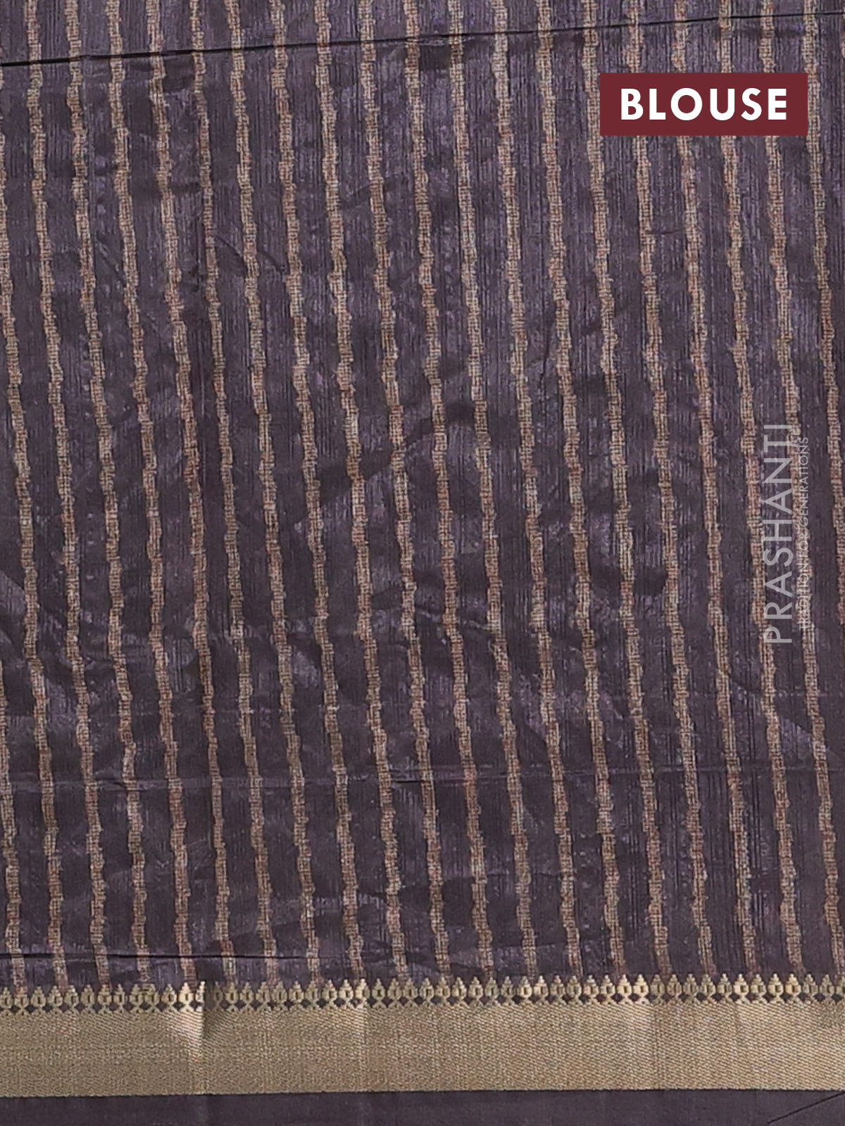 Semi tussar saree brown and elephant grey with stripes pattern and zari woven border
