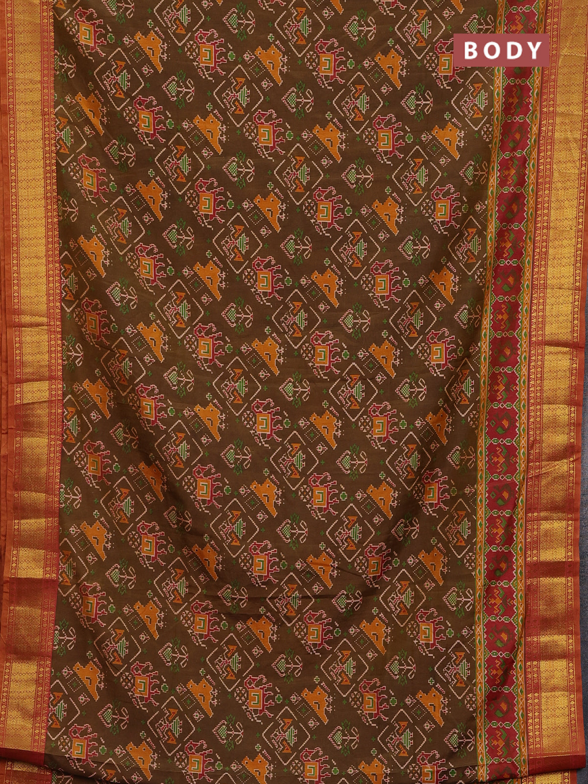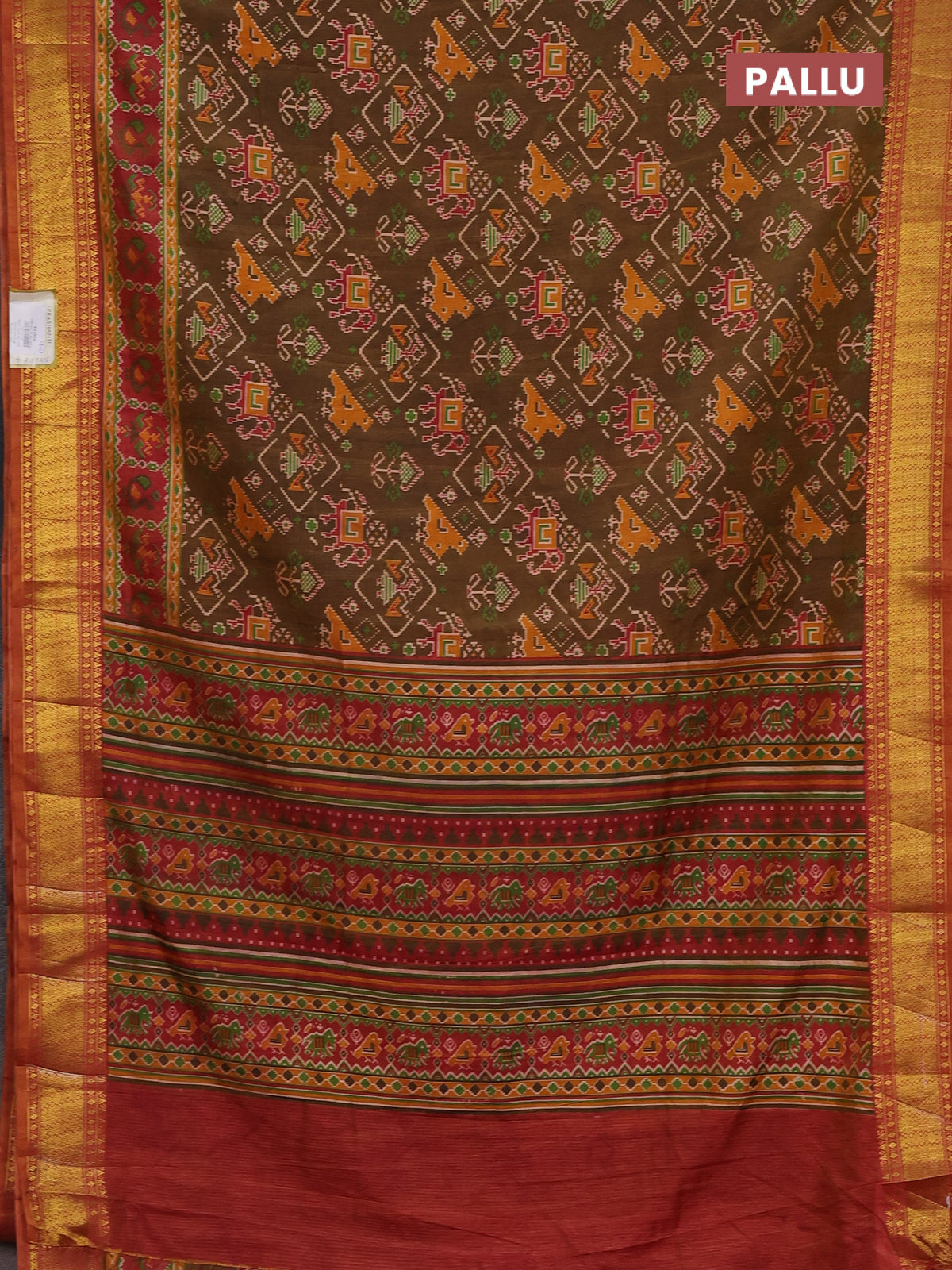 Semi tussar saree brown and rust shade with allover ikat prints and zari woven border