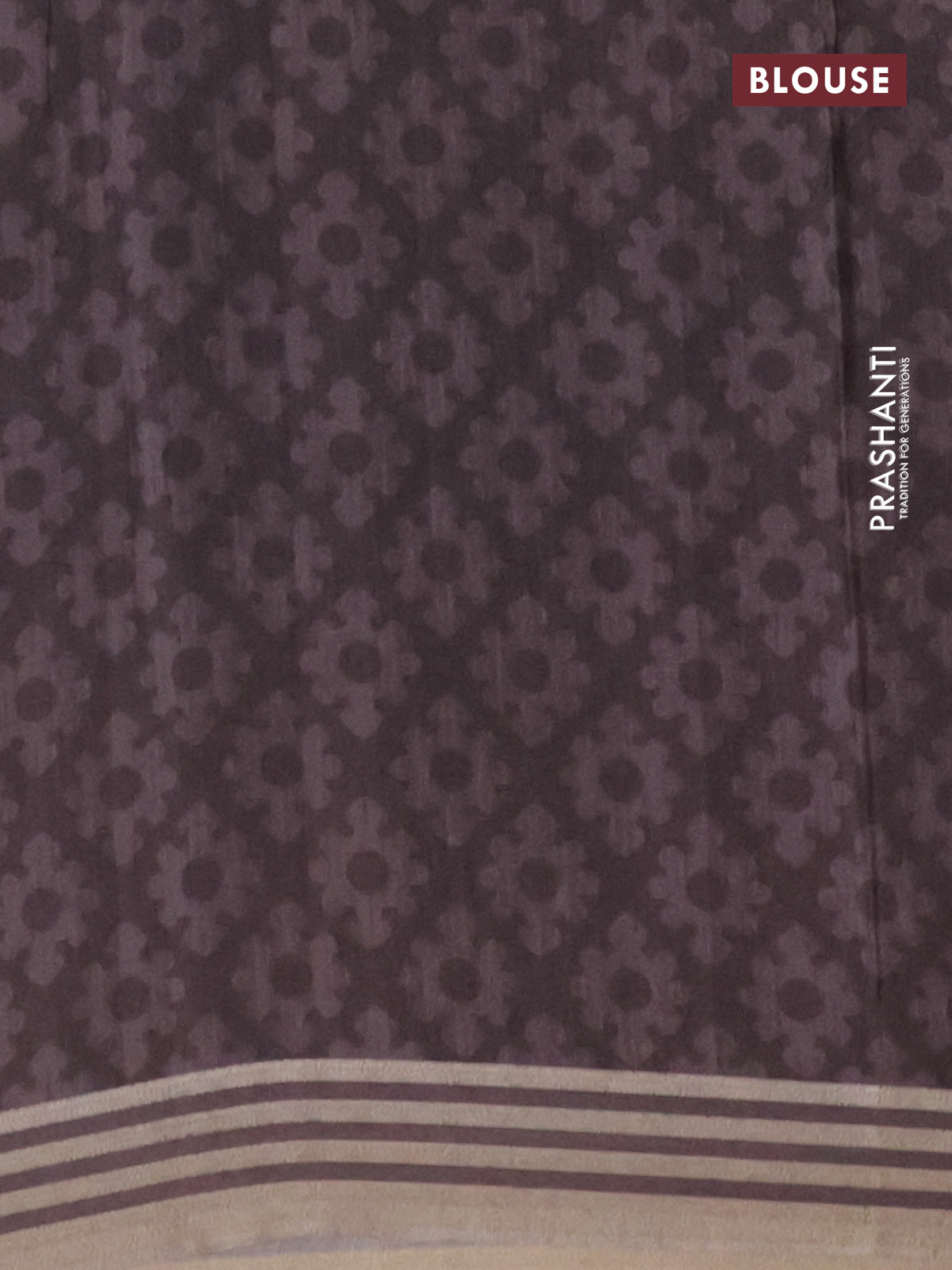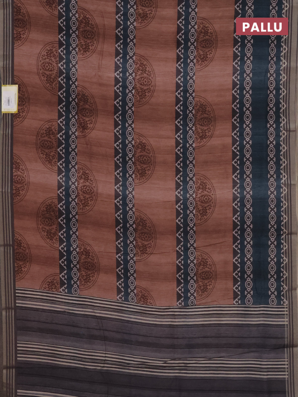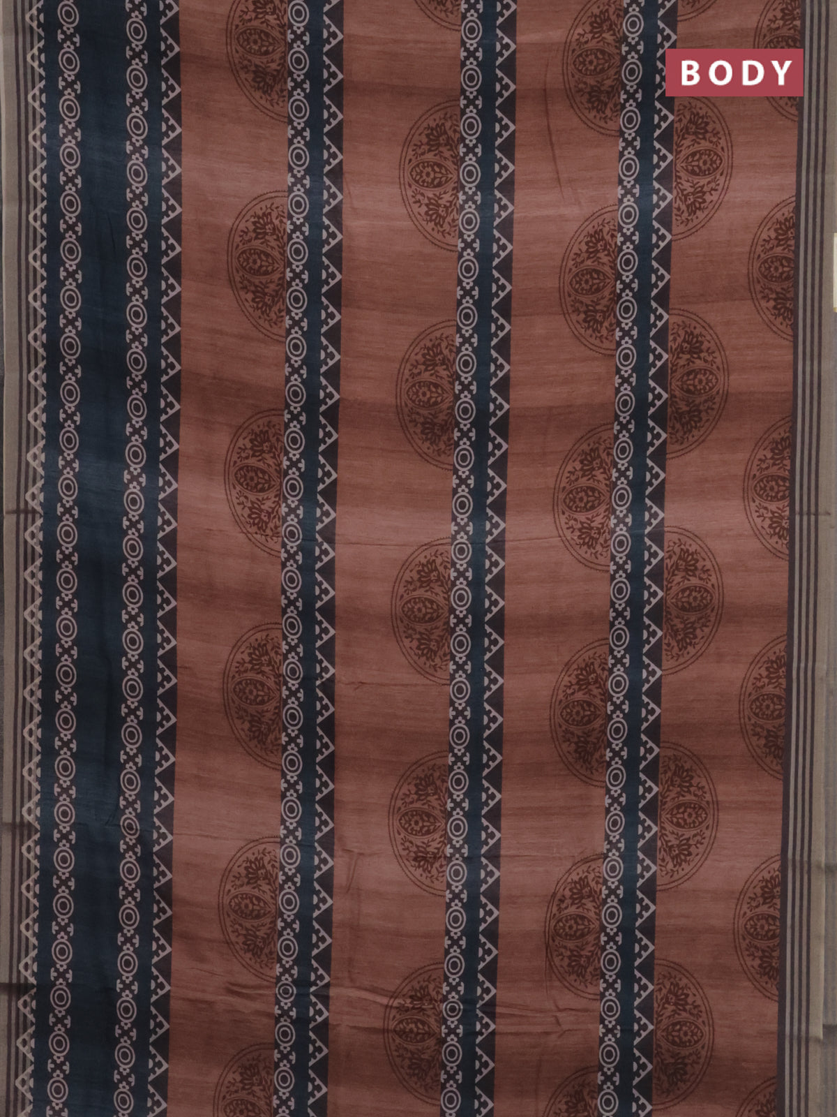 Semi tussar saree brown shade and grey with allover geometric prints and zari woven border