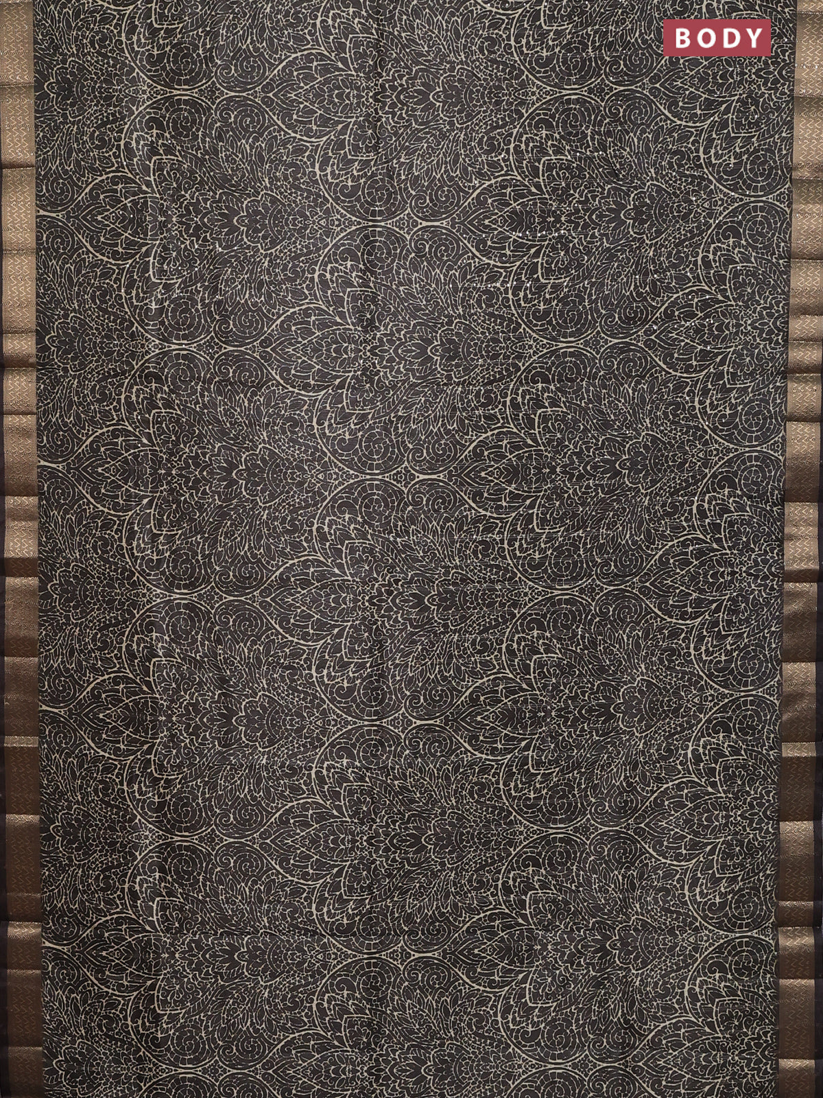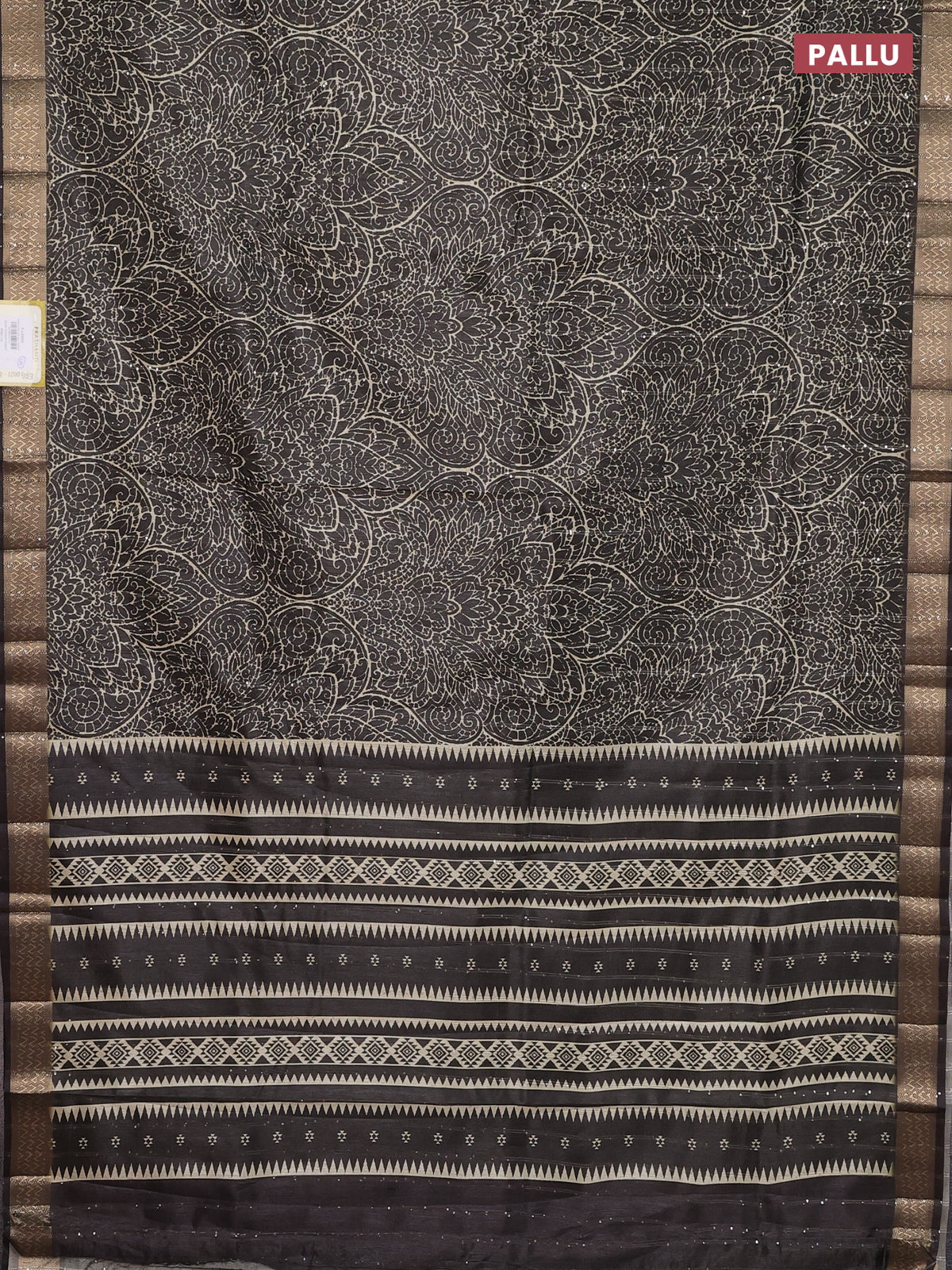 Semi tussar saree brown with allover prints & sequin work and zari woven border