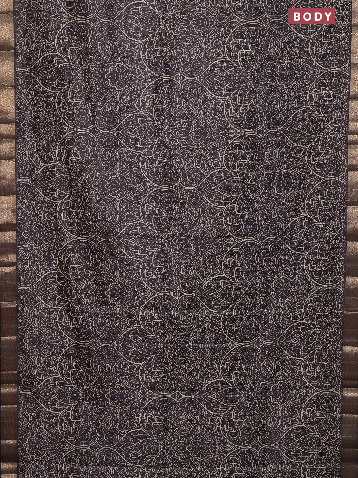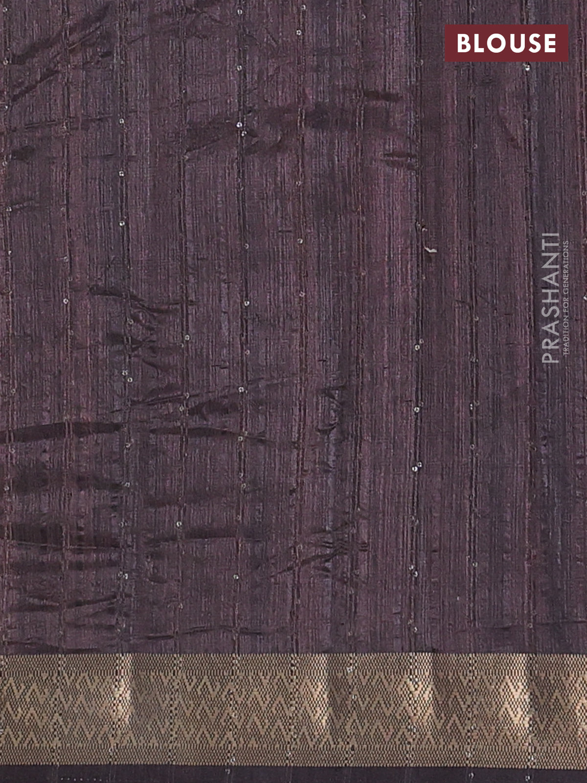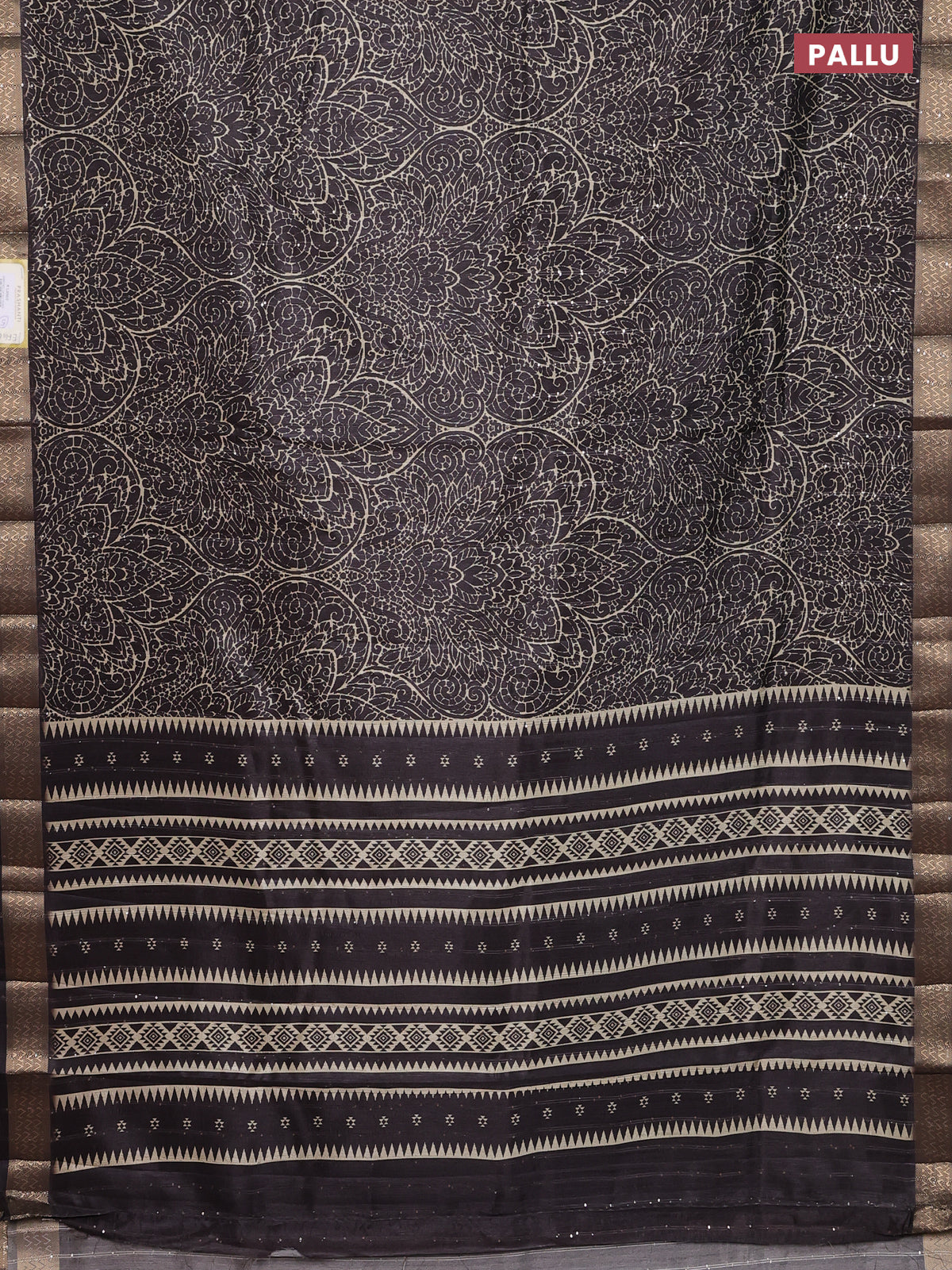 Semi tussar saree coffee brown with allover prints & sequin work and zari woven border