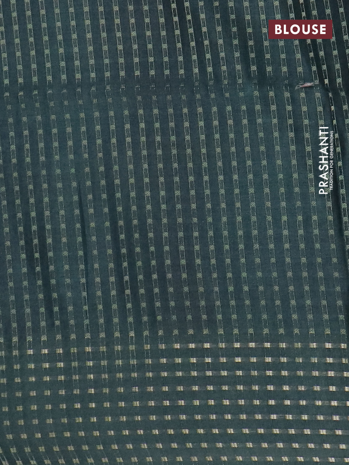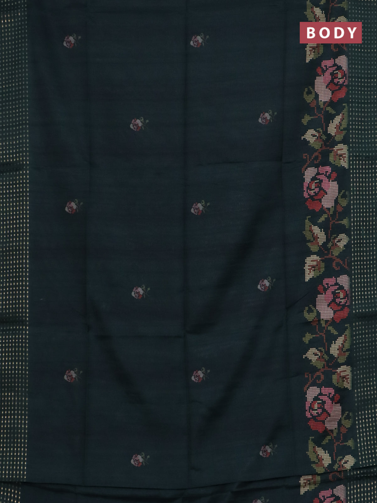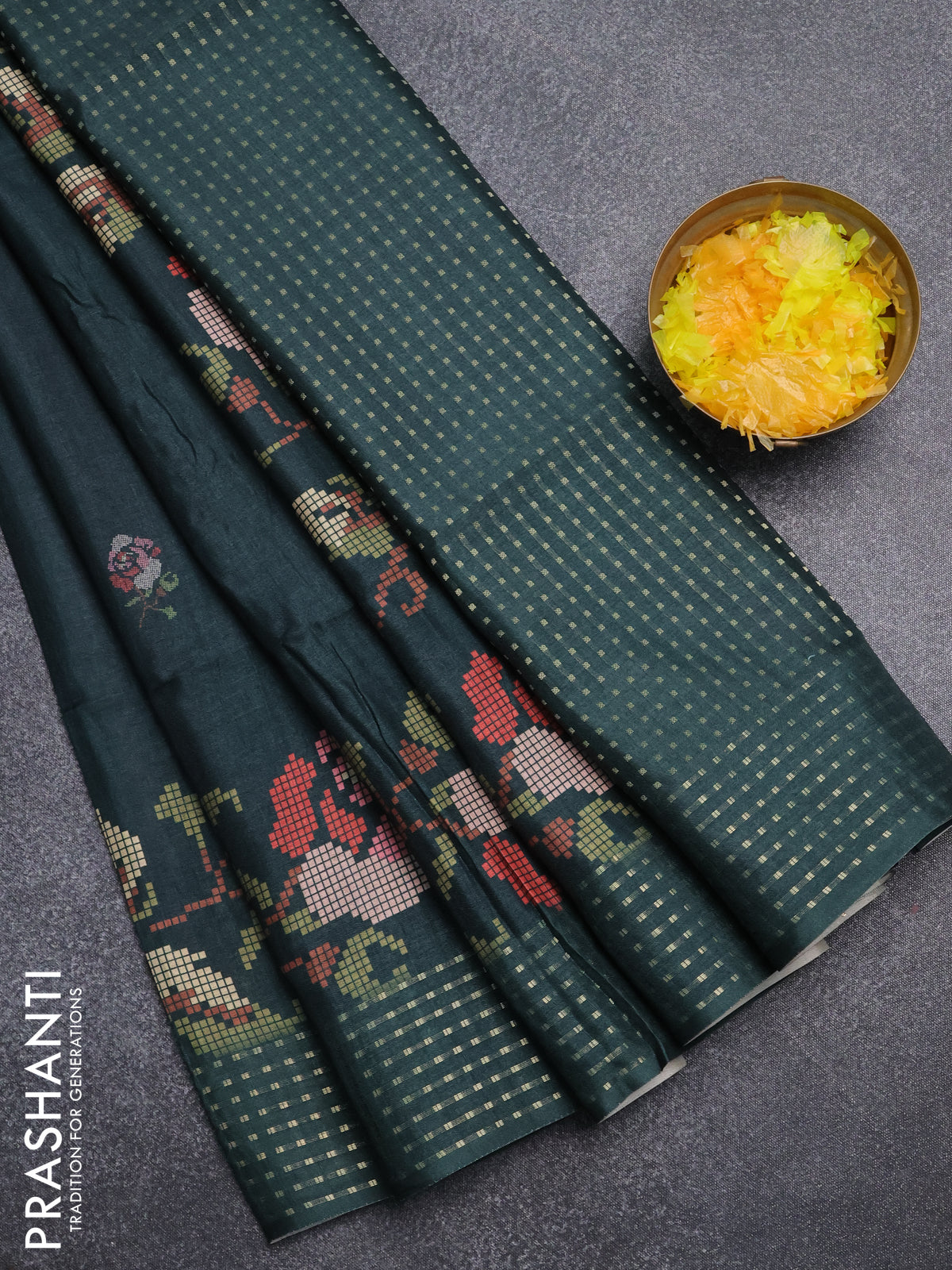 Semi tussar saree dark green with floral prints and zari woven pallu